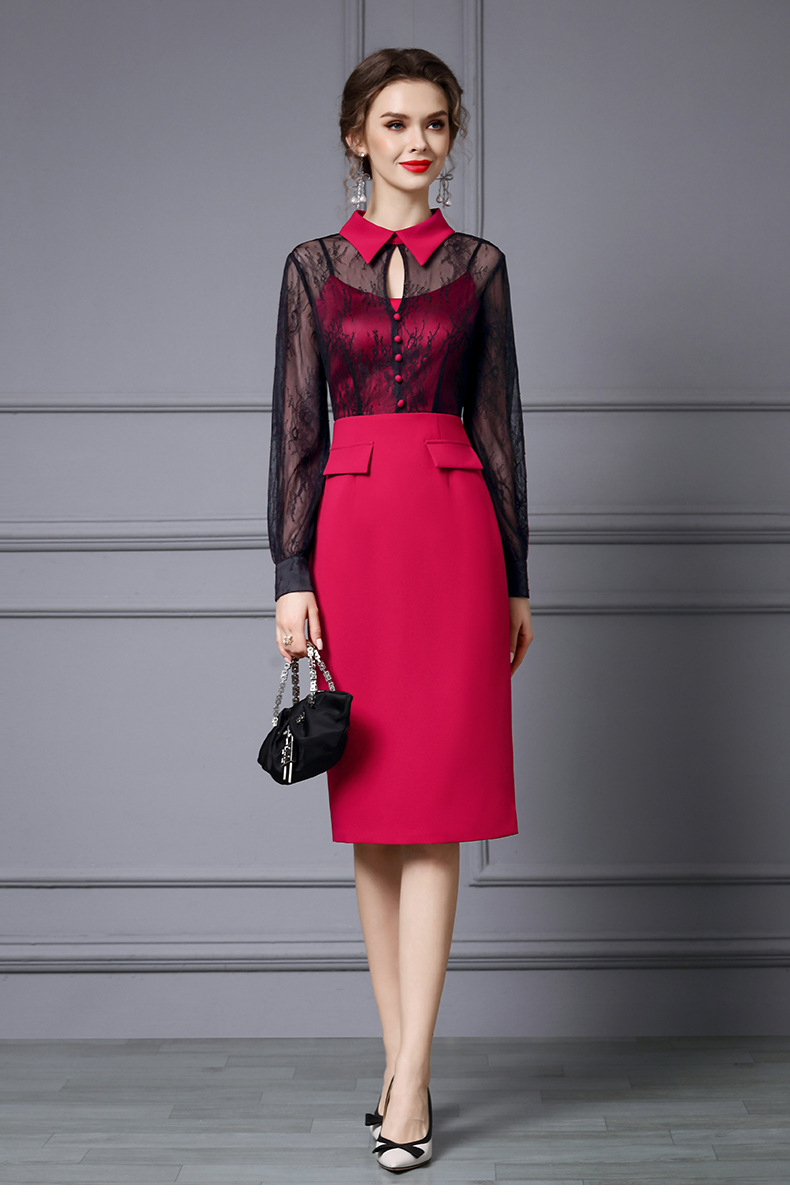 Chiếc đầm này có thiết kế hai lớp tạo vẻ đẹp thanh lịch và hiện đại. Chất vải kết hợp ren tinh tế ở phần trên, ôm nhẹ cơ thể và xòe nhẹ qua gối. Kiểu dáng phù hợp cho tiết trời thu, mặc đi làm hoặc dự tiệc đều được. Bạn chỉ cần phối cùng một đôi giày và phụ kiện đơn giản là đã có vẻ ngoài ưa nhìn. | Tên sản phẩm: Váy Đầm Liền Thân Nữ Chất Liệu Ren Dài Quá Gối Cả Bộ 2 Món Hàng Mùa Xuân Thu Đông - Thời Trang Nữ | Mã sản phẩm: A9685 - Giá: 3.130.000đ | Mã nhà sản xuất: SHDAP-G06Hình ảnh sản phẩm