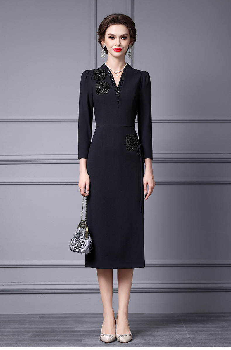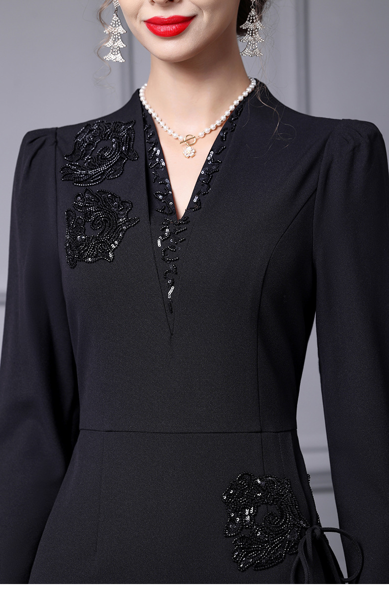 Đầm dài thiết kế cổ chữ V tôn dáng, phù hợp cho những dịp cần sự chỉn chu nhẹ nhàng. Chất vải mềm mại giúp tôn lên các đường nét cơ thể một cách duyên dáng. Điểm nhấn là những hạt ngọc tr được gắn tỉ mỉ bằng tay, tạo nên vẻ đẹp tinh tế. Sản phẩm giúp che khuyết điểm vùng bụng và đùi hiệu quả. Có thể mặc đi làm hoặc dự tiệc, dễ dàng phối cùng giày cao gót và túi xách. | Tên sản phẩm: Váy Đầm Liền Thân Nữ Cổ Chữ V Hàng Mùa Xuân Thu Đông - Thời Trang Nữ | Mã sản phẩm: A9688 - Giá: 3.560.000đ | Mã nhà sản xuất: SHDAP-G06Hình ảnh sản phẩm