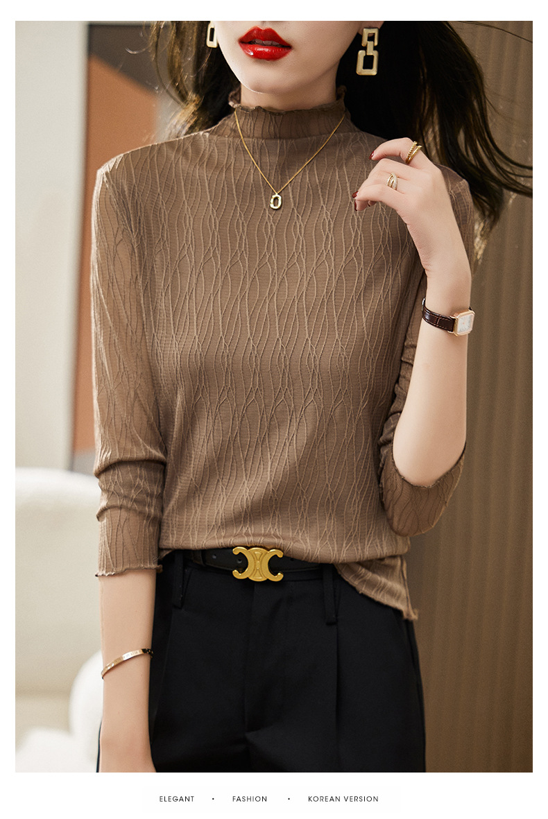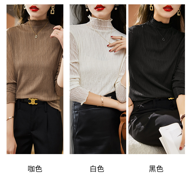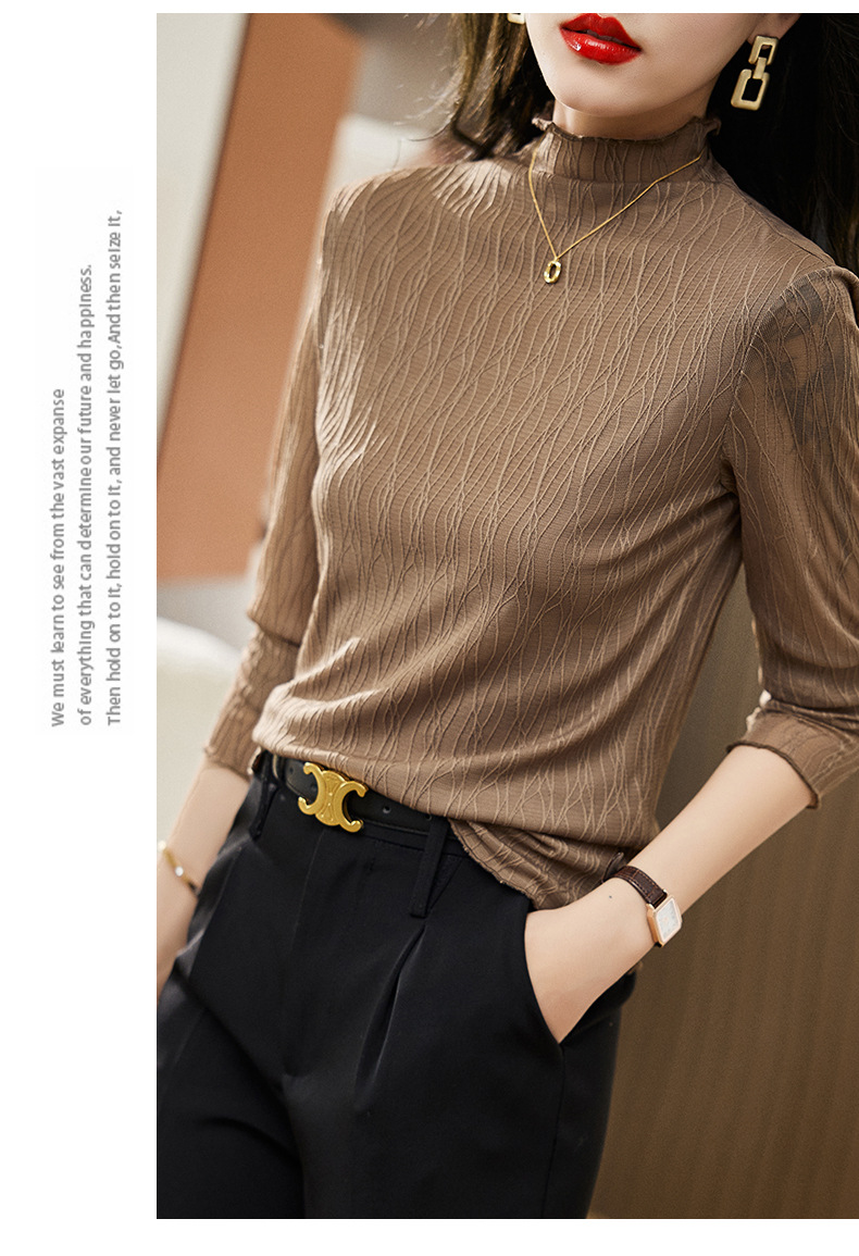 Áo nữ dáng ôm mặc bên trong, thiết kế cổ lửng tay dài thích hợp dùng quanh năm. Chất vải dệt mỏng nhẹ tạo cảm giác thoải mái, mềm mại khi mặc. Kiểu dáng đơn giản nhưng có điểm nhấn từ phần cổ, dễ dàng phối cùng nhiều loại trang phục khác như áo khoác, vest hay mặc một mình. Sản phẩm phù hợp cho những ngày cần sự gọn gàng, lịch sự trong sinh hoạt hay làm việc. | Tên sản phẩm: Áo Thun Nữ Dáng Ôm Hàng Mùa Xuân Thu Đông - Thời Trang Nữ | Mã sản phẩm: a9689 - Giá: 1.020.000đ | Mã nhà sản xuất: WODIG-G03Hình ảnh sản phẩm