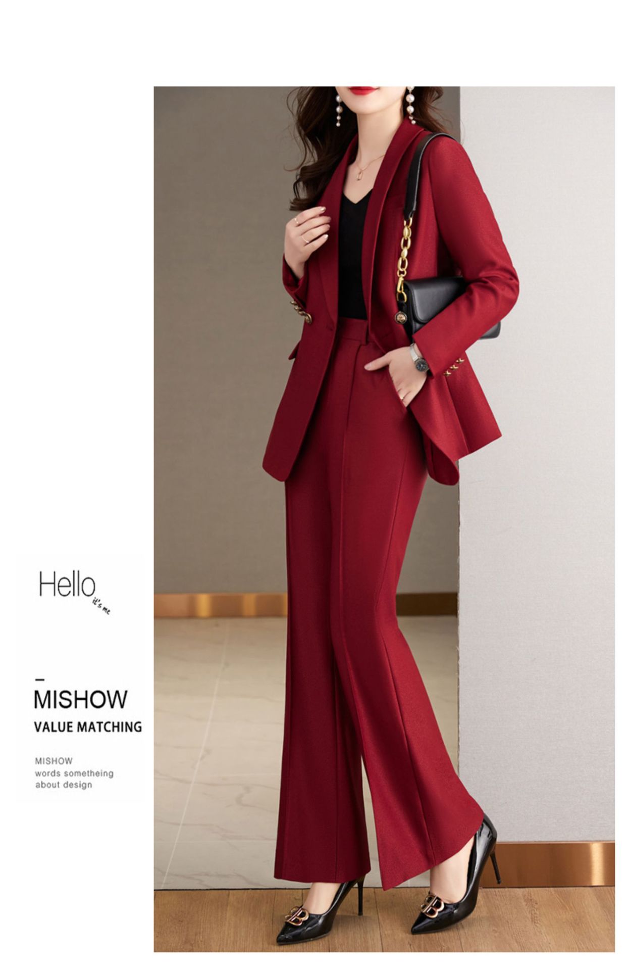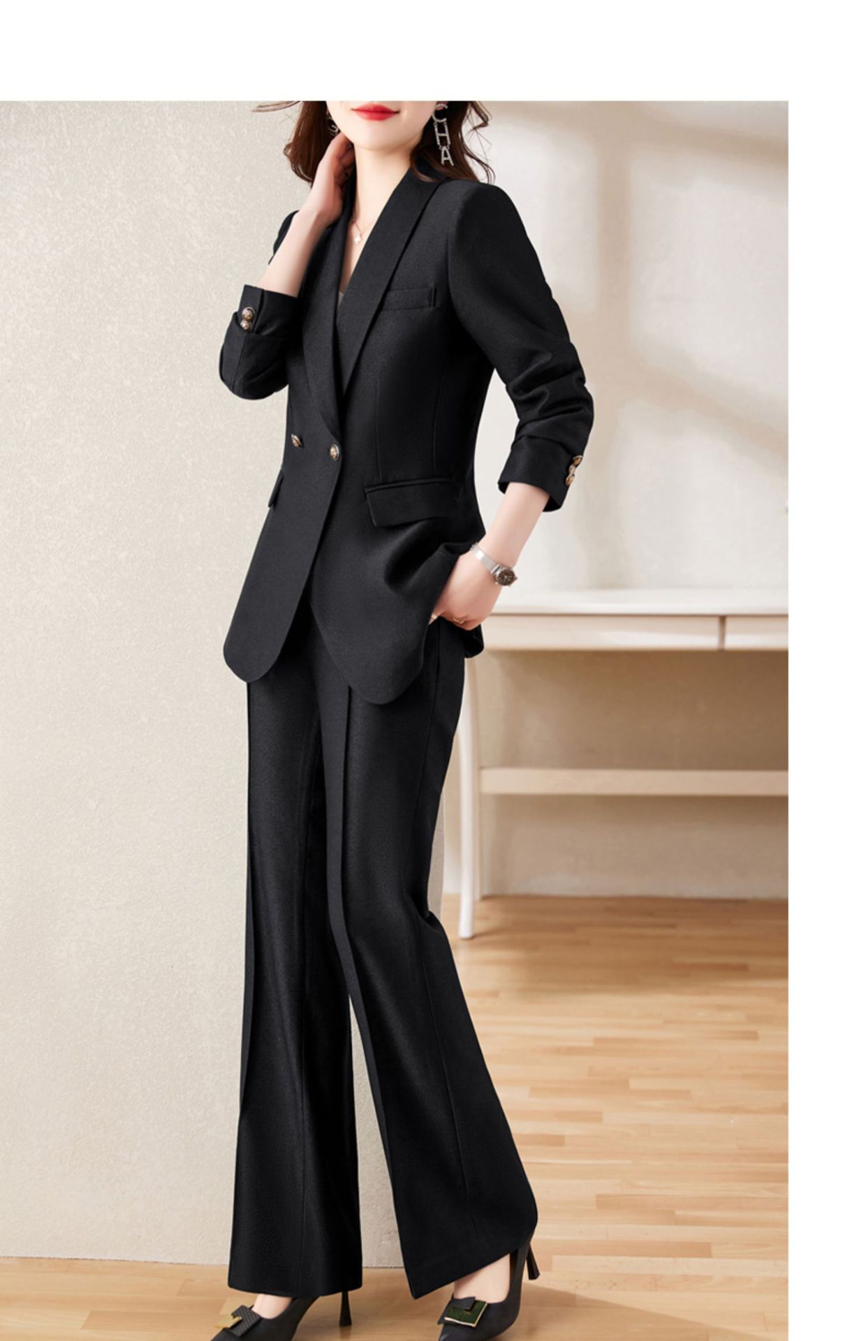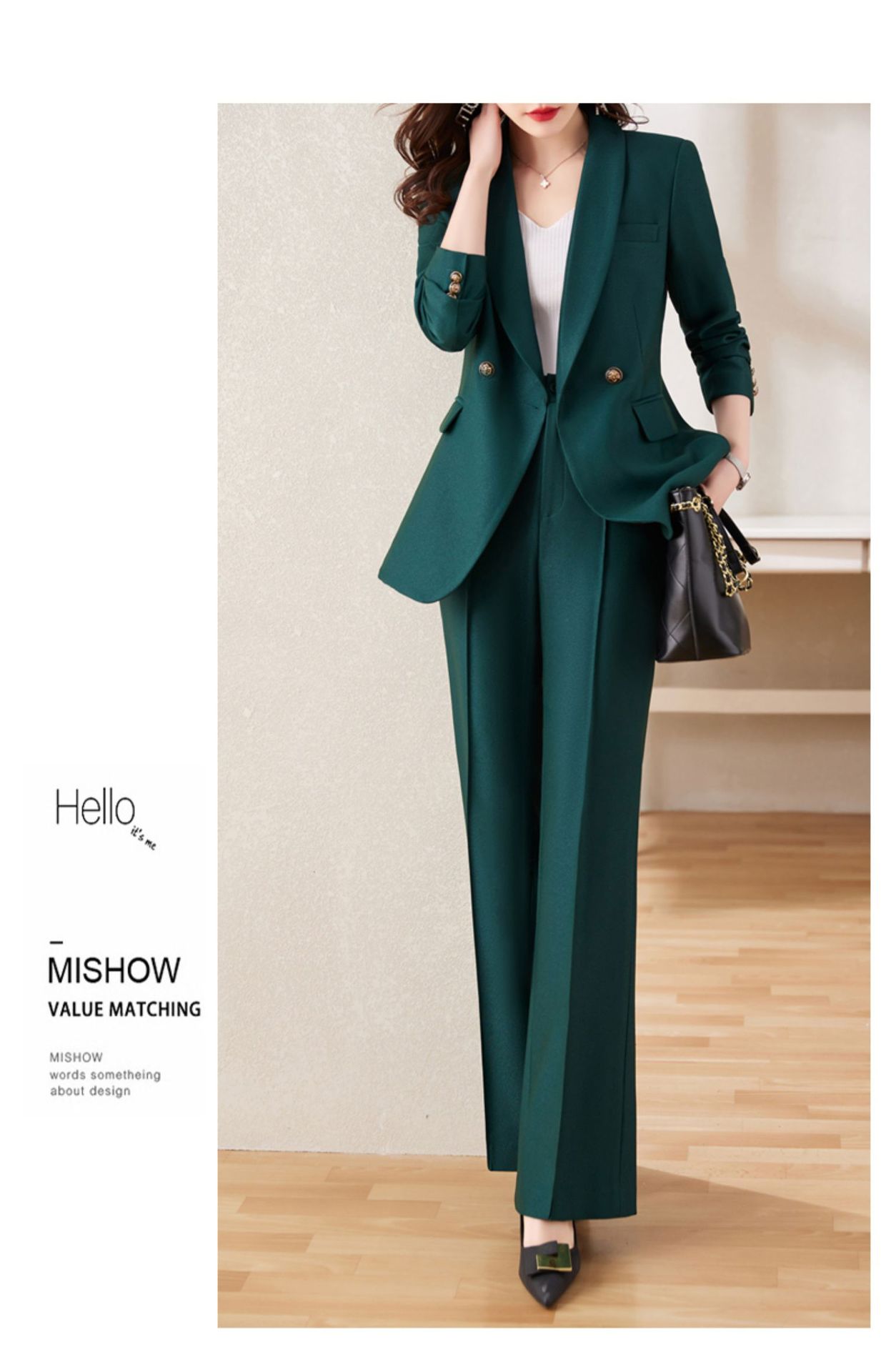 Bộ trang phục hai mảnh dành cho nữ, thiết kế dáng ôm tôn dáng, mang đến vẻ ngoài trẻ trung và năng động. Set đồ gồm áo khoác kiểu dáng nhỏ gọn và quần ống rộng, tạo sự thoải mái, phù hợp cho môi trường công sở hoặc dạo phố vào mùa xuân. Cách phối đồ đơn giản, bạn có thể mặc nguyên bộ hoặc kết hợp với các áo phông, áo sơ mi cơ bản khác để có nhiều phong cách đa dạng. | Tên sản phẩm: Đồ Bộ Nữ Dáng Ôm Cả Bộ 2 Món Trông Trẻ Hơn Tuổi Hàng Mùa Xuân Thu Đông Đồ Công Sở - Thời Trang Nữ | Mã sản phẩm: a9725 - Giá: 2.070.000đ | Mã nhà sản xuất: WODIG-G05Hình ảnh sản phẩm