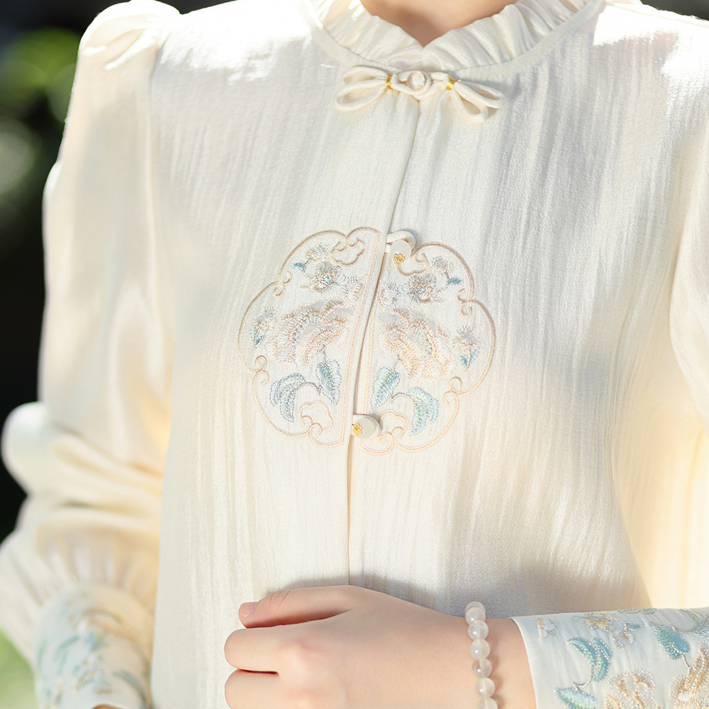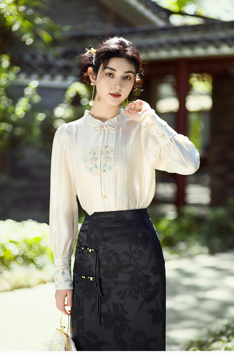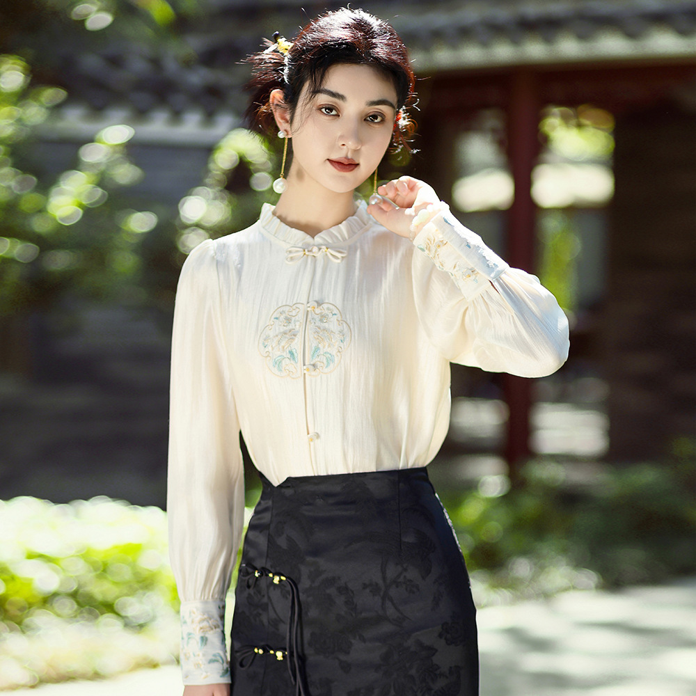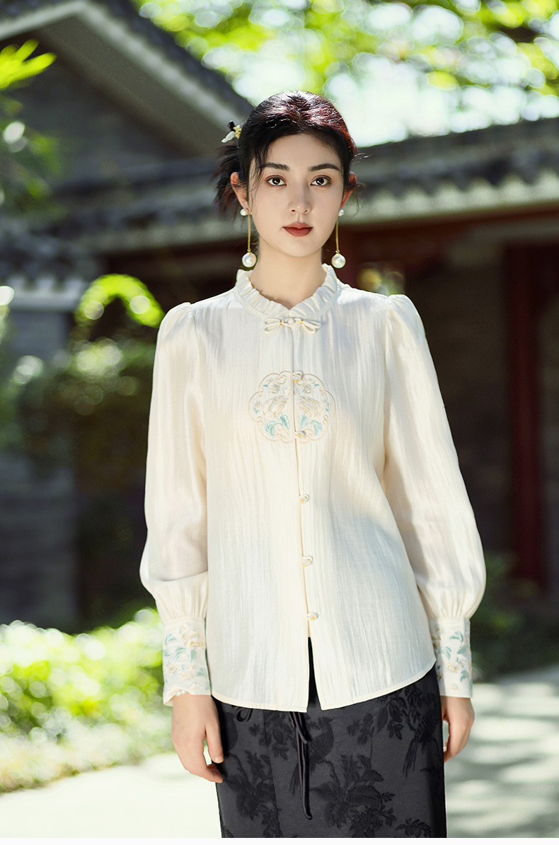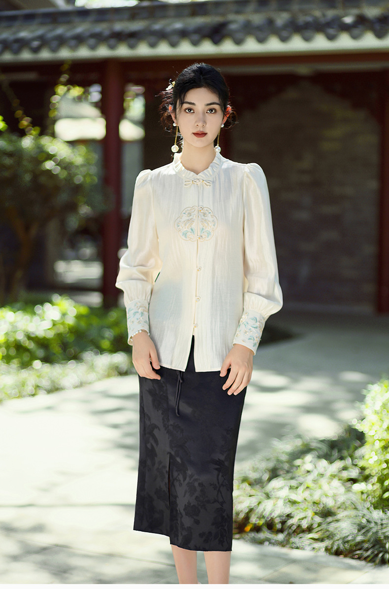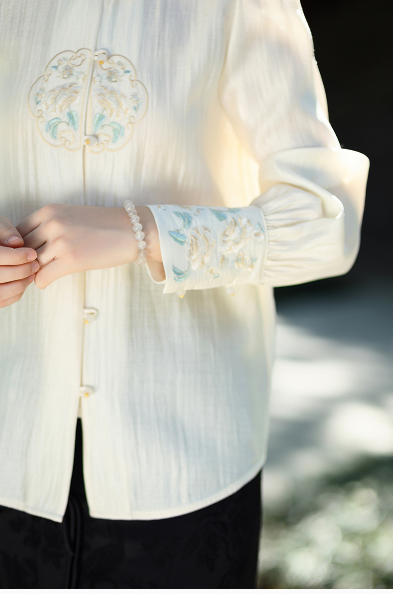 Áo kiểu dáng dài tay với họa tiết thêu tinh xảo, mang phong cách cổ điển nhẹ nhàng. Cổ áo điểm xuyến nút bấm truyền thống kết hợp viền lá sen cách điệu, tạo điểm nhấn duyên dáng. Chất vải mềm mại giúp người mặc thoải mái trong những ngày thu se lạnh. Sản phẩm phù hợp khi kết hợp cùng quần ống rộng hoặc chân váy dài. Có thể giặt tay nhẹ nhàng và phơi nơi râm mát để bảo quản độ bền màu. | Tên sản phẩm: Áo Sơ Mi Nữ Dài Tay Thêu Họa Tiết Hoa Hàng Mùa Xuân Thu Đông Phục Cổ Cổ Điển - Thời Trang Nữ | Mã sản phẩm: A9731 - Giá: 2.160.000đ | Mã nhà sản xuất: SHDAP-G05Hình ảnh sản phẩm