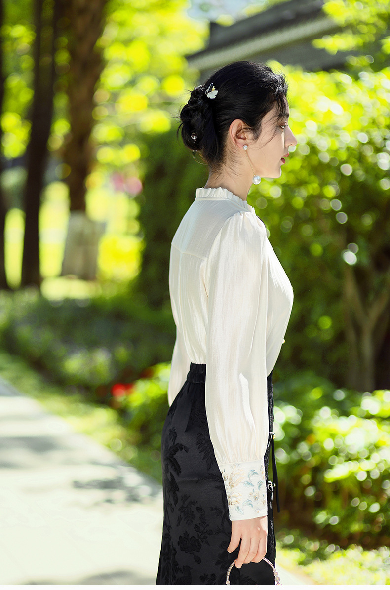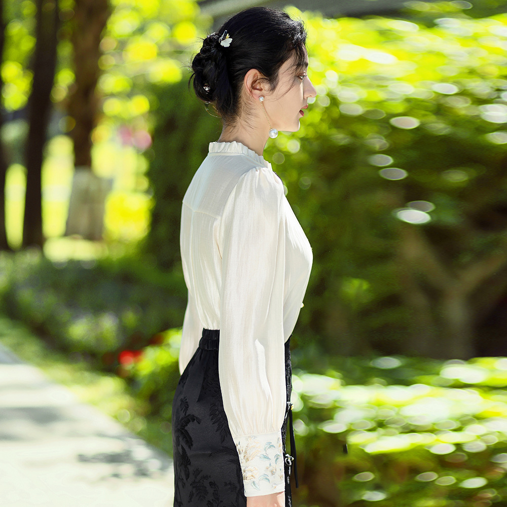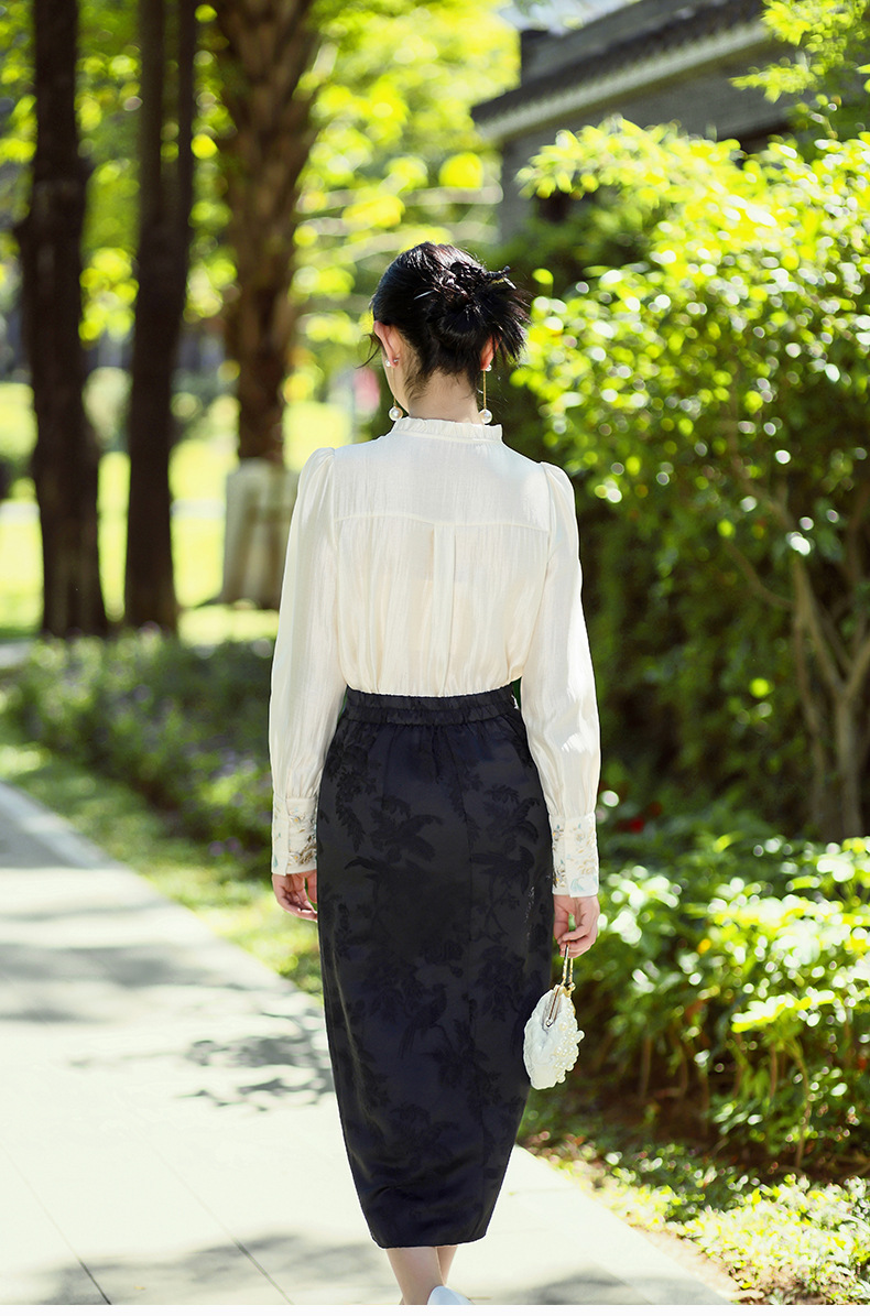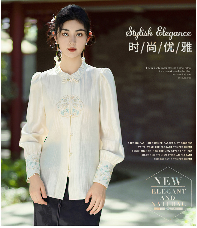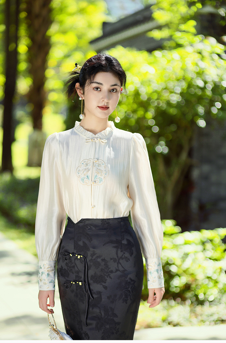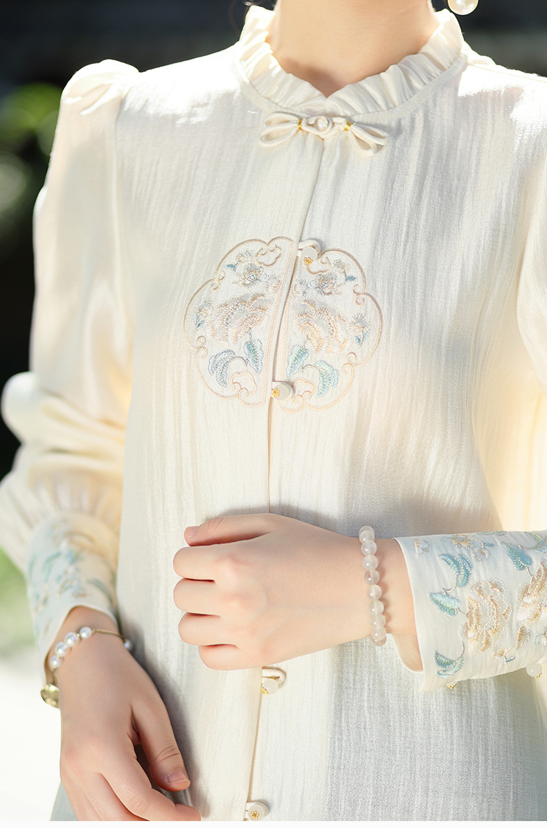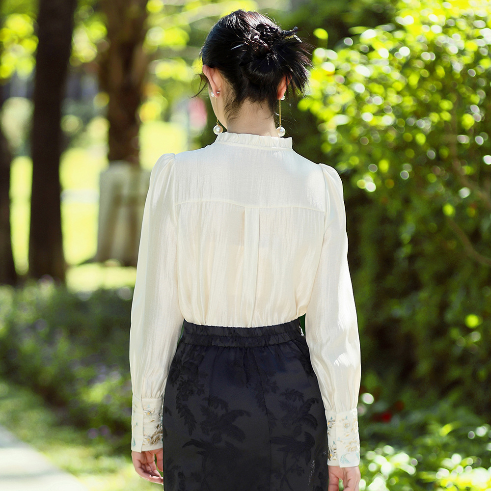 Áo kiểu dáng dài tay với họa tiết thêu tinh xảo, mang phong cách cổ điển nhẹ nhàng. Cổ áo điểm xuyến nút bấm truyền thống kết hợp viền lá sen cách điệu, tạo điểm nhấn duyên dáng. Chất vải mềm mại giúp người mặc thoải mái trong những ngày thu se lạnh. Sản phẩm phù hợp khi kết hợp cùng quần ống rộng hoặc chân váy dài. Có thể giặt tay nhẹ nhàng và phơi nơi râm mát để bảo quản độ bền màu. | Tên sản phẩm: Áo Sơ Mi Nữ Dài Tay Thêu Họa Tiết Hoa Hàng Mùa Xuân Thu Đông Phục Cổ Cổ Điển - Thời Trang Nữ | Mã sản phẩm: A9731 - Giá: 2.160.000đ | Mã nhà sản xuất: SHDAP-G05Hình ảnh sản phẩm