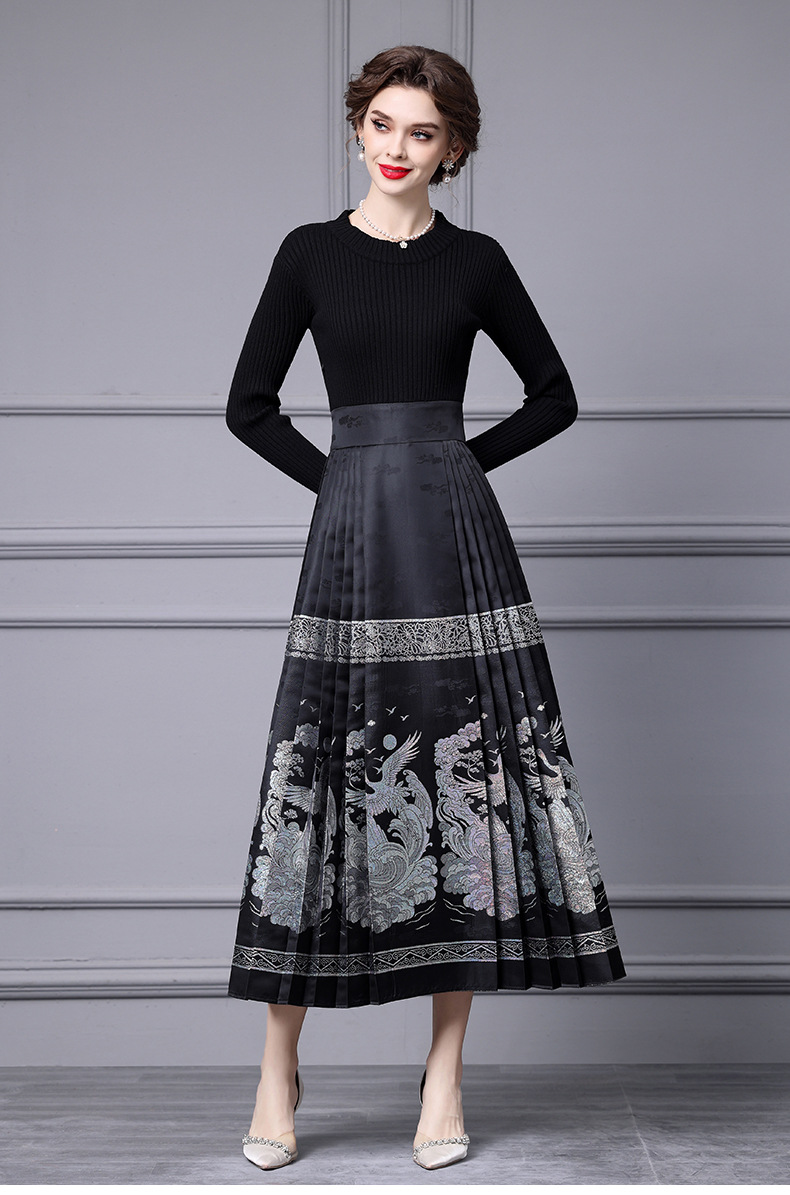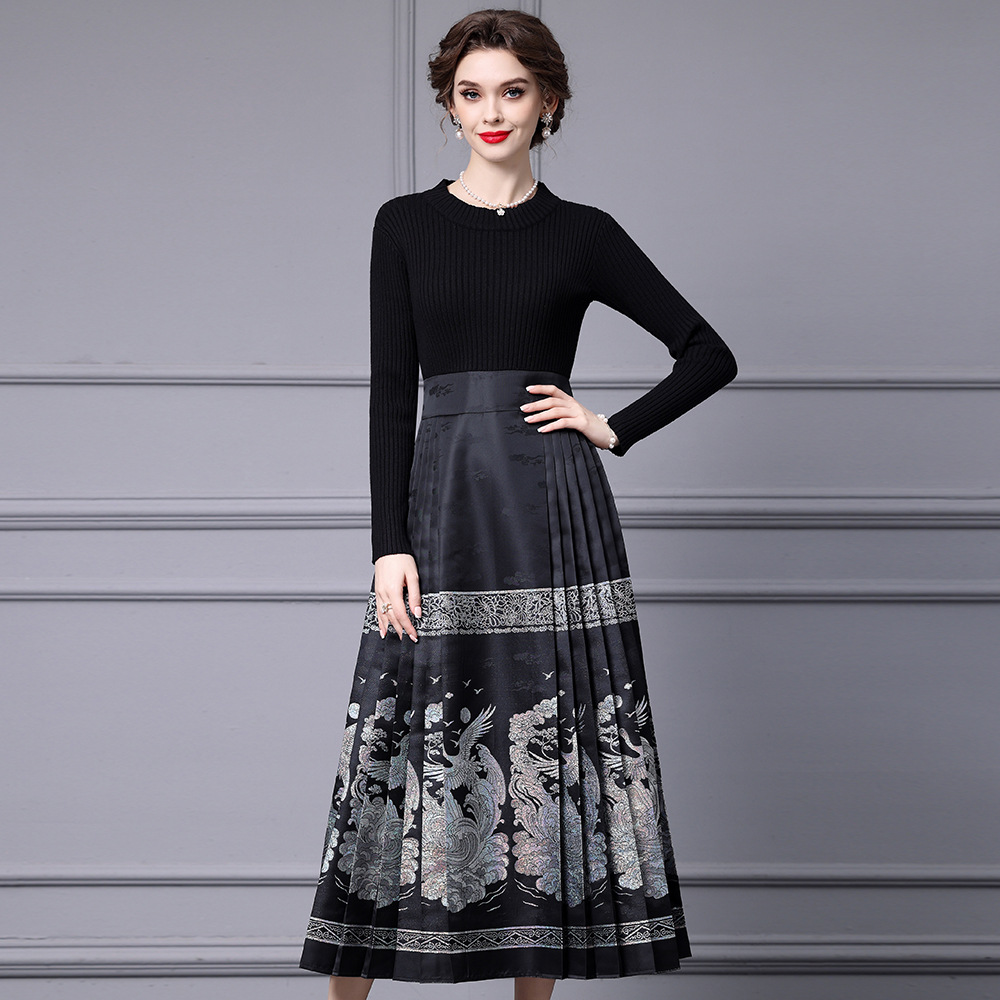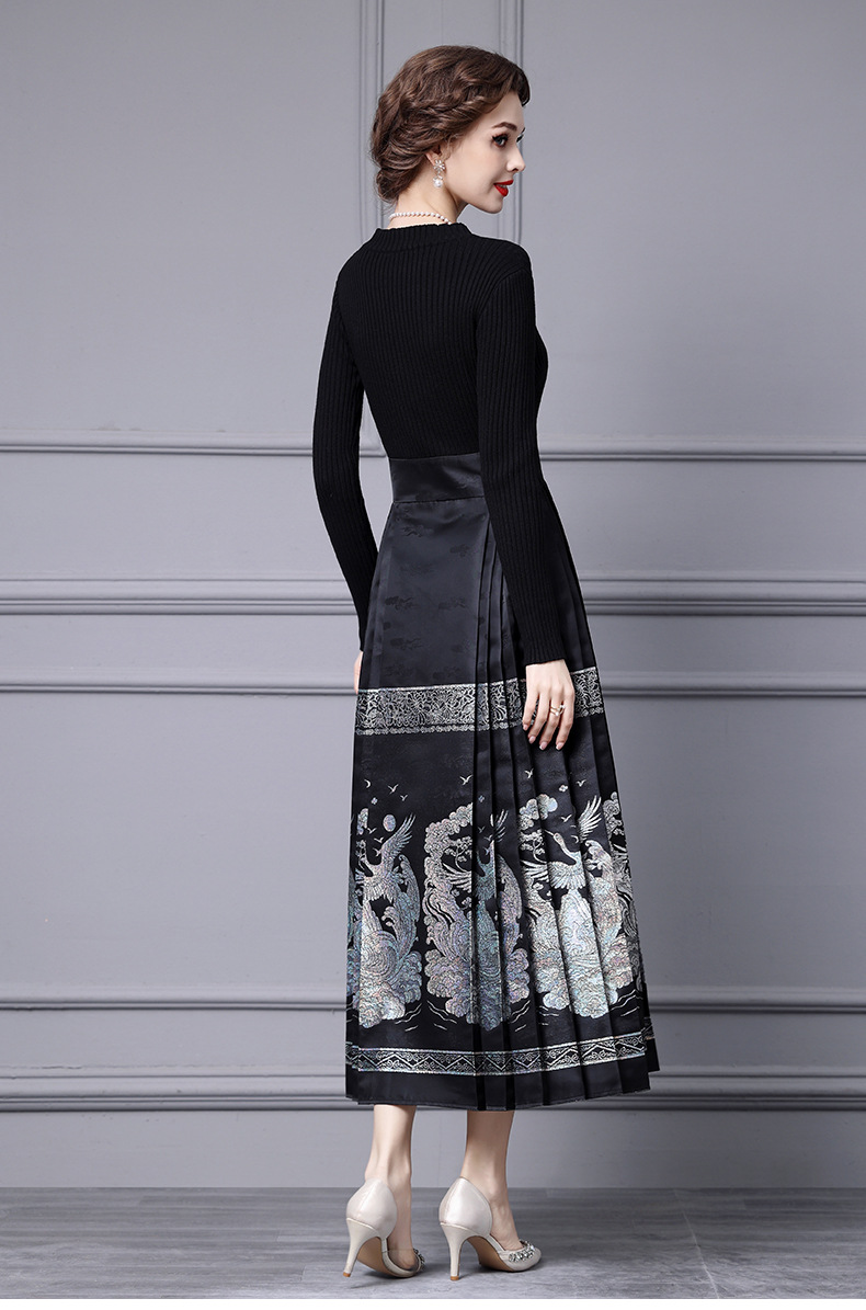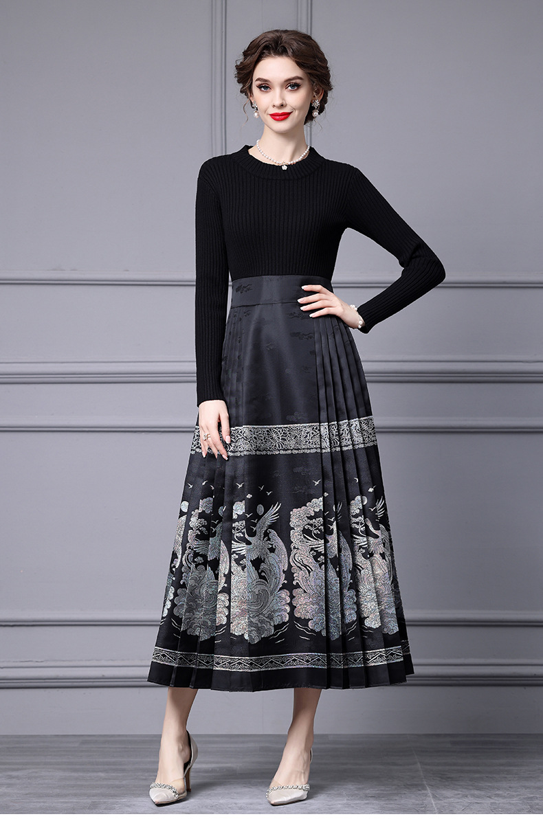 Chiếc váy dài này có phần thân trên ôm sát bằng vải dệt kim màu đen, kết hợp cùng phần chân váy xòe rộng tạo dáng thon gọn. Thiết kế lấy ý tưởng từ đường nét cổ điển, phần eo được may cao giúp tôn lên vóc dáng. Chất liệu mềm mại, thoải mái cho những ngày thu. Có thể mặc đi làm, dự tiệc hoặc các dịp gặp mặt. Phù hợp với nhiều hoàn cảnh sử dụng khác nhau. | Tên sản phẩm: Váy Đầm Liền Thân Dáng Dài Nữ Áo Len Hàng Mùa Xuân Thu Đông - Thời Trang Nữ | Mã sản phẩm: A9736 - Giá: 2.640.000đ | Mã nhà sản xuất: SHDAP-G06Hình ảnh sản phẩm
