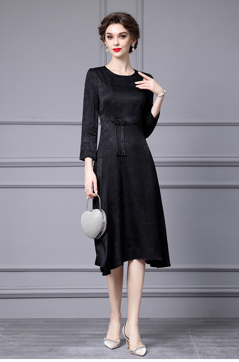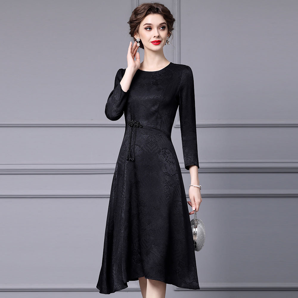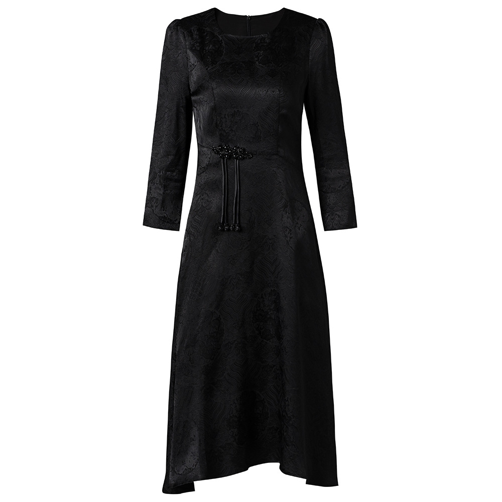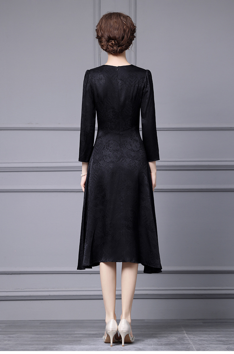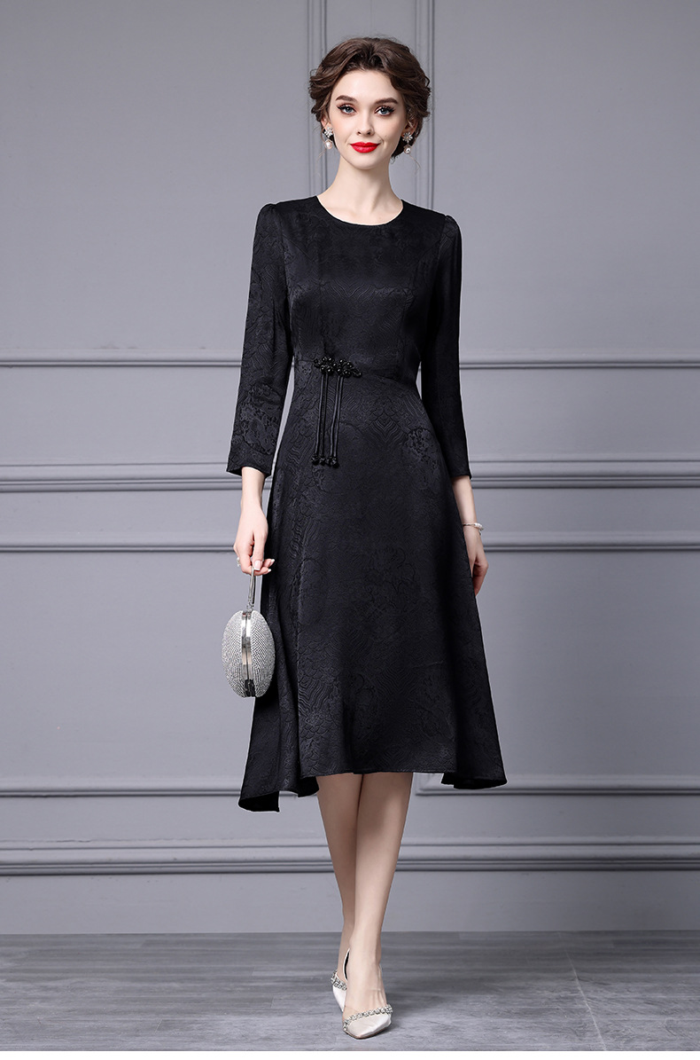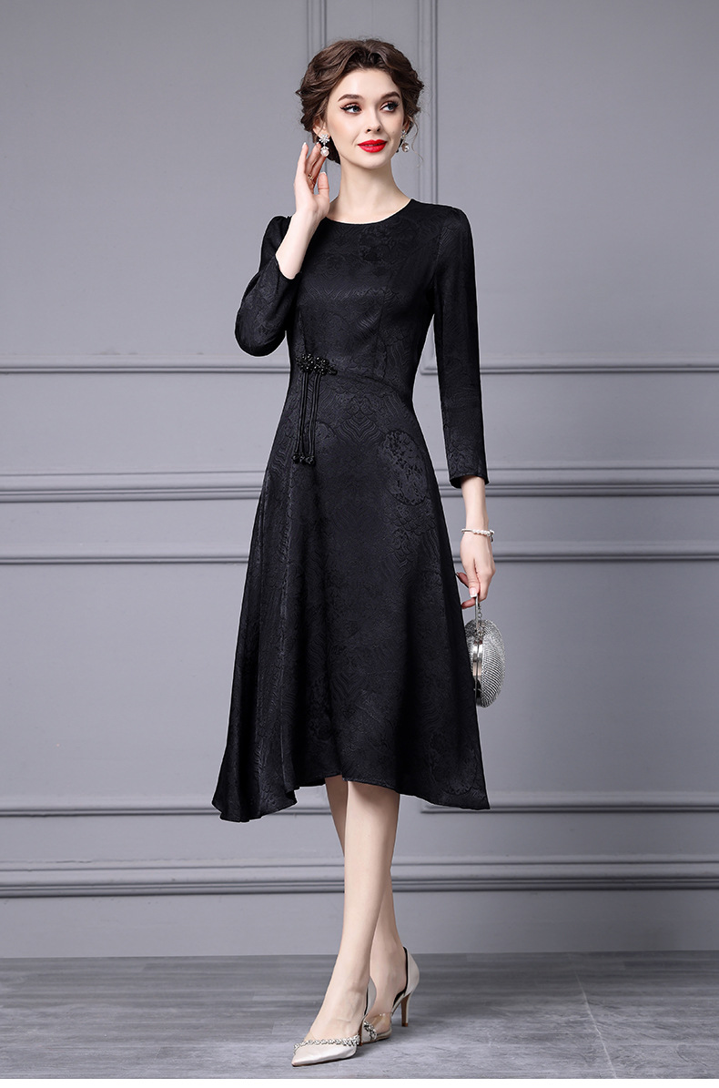 Chiếc đầm này có phần eo cao giúp tôn dáng người mặc. Chất vải dày dặn với họa tiết thêu và dệt nổi tinh tế trên nền màu đen, tạo điểm nhấn ấn tượng. Thiết kế phần chân váy xòe rộng, mang đến cảm giác thoải mái và uyển chuyển khi di chuyển. Kiểu dáng phù hợp để mặc trong mùa thu. Bạn có thể phối cùng giày cao gót hoặc giày đế bằng để tạo nên những phong cách khác nhau. | Tên sản phẩm: Váy Đầm Liền Thân Nữ Thêu Họa Tiết Hoa Hàng Mùa Xuân Thu Đông - Thời Trang Nữ | Mã sản phẩm: A9738 - Giá: 2.690.000đ | Mã nhà sản xuất: SHDAP-G06Hình ảnh sản phẩm