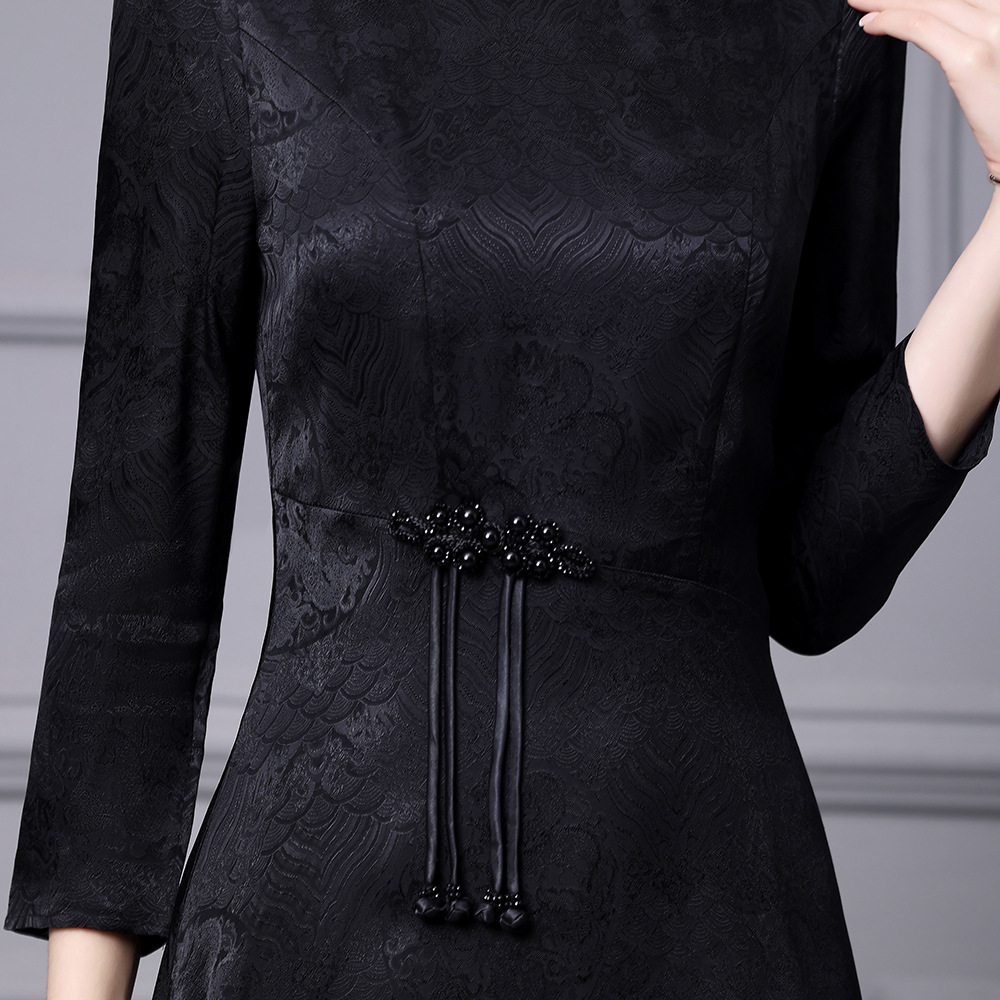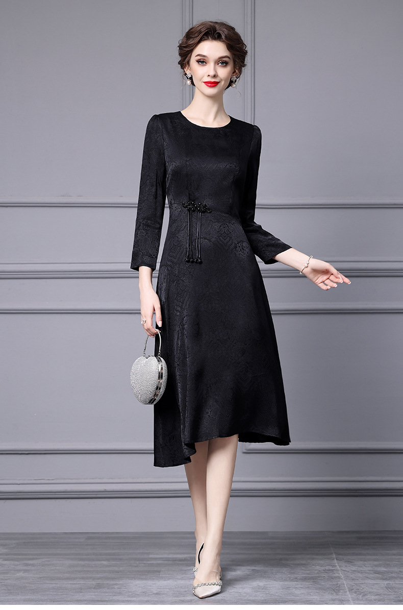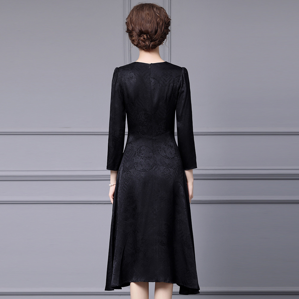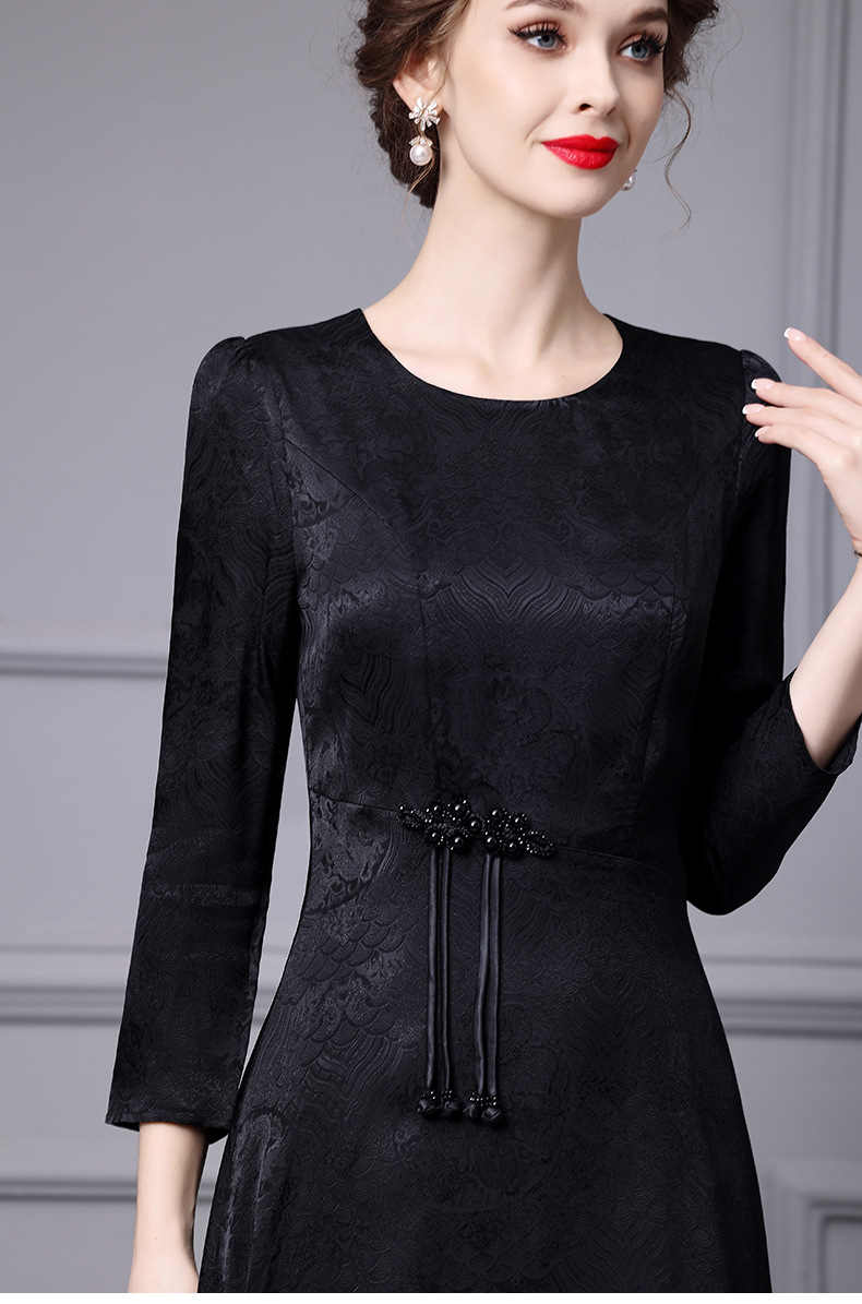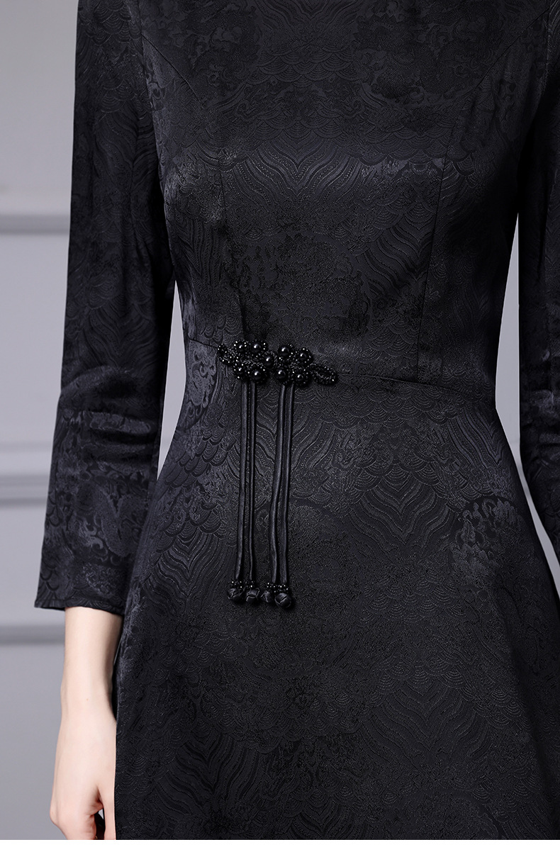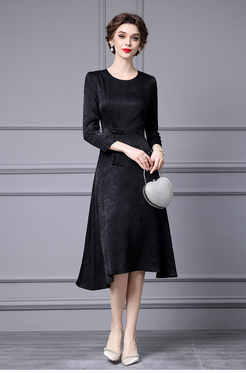 Chiếc đầm này có phần eo cao giúp tôn dáng người mặc. Chất vải dày dặn với họa tiết thêu và dệt nổi tinh tế trên nền màu đen, tạo điểm nhấn ấn tượng. Thiết kế phần chân váy xòe rộng, mang đến cảm giác thoải mái và uyển chuyển khi di chuyển. Kiểu dáng phù hợp để mặc trong mùa thu. Bạn có thể phối cùng giày cao gót hoặc giày đế bằng để tạo nên những phong cách khác nhau. | Tên sản phẩm: Váy Đầm Liền Thân Nữ Thêu Họa Tiết Hoa Hàng Mùa Xuân Thu Đông - Thời Trang Nữ | Mã sản phẩm: A9738 - Giá: 2.690.000đ | Mã nhà sản xuất: SHDAP-G06Hình ảnh sản phẩm