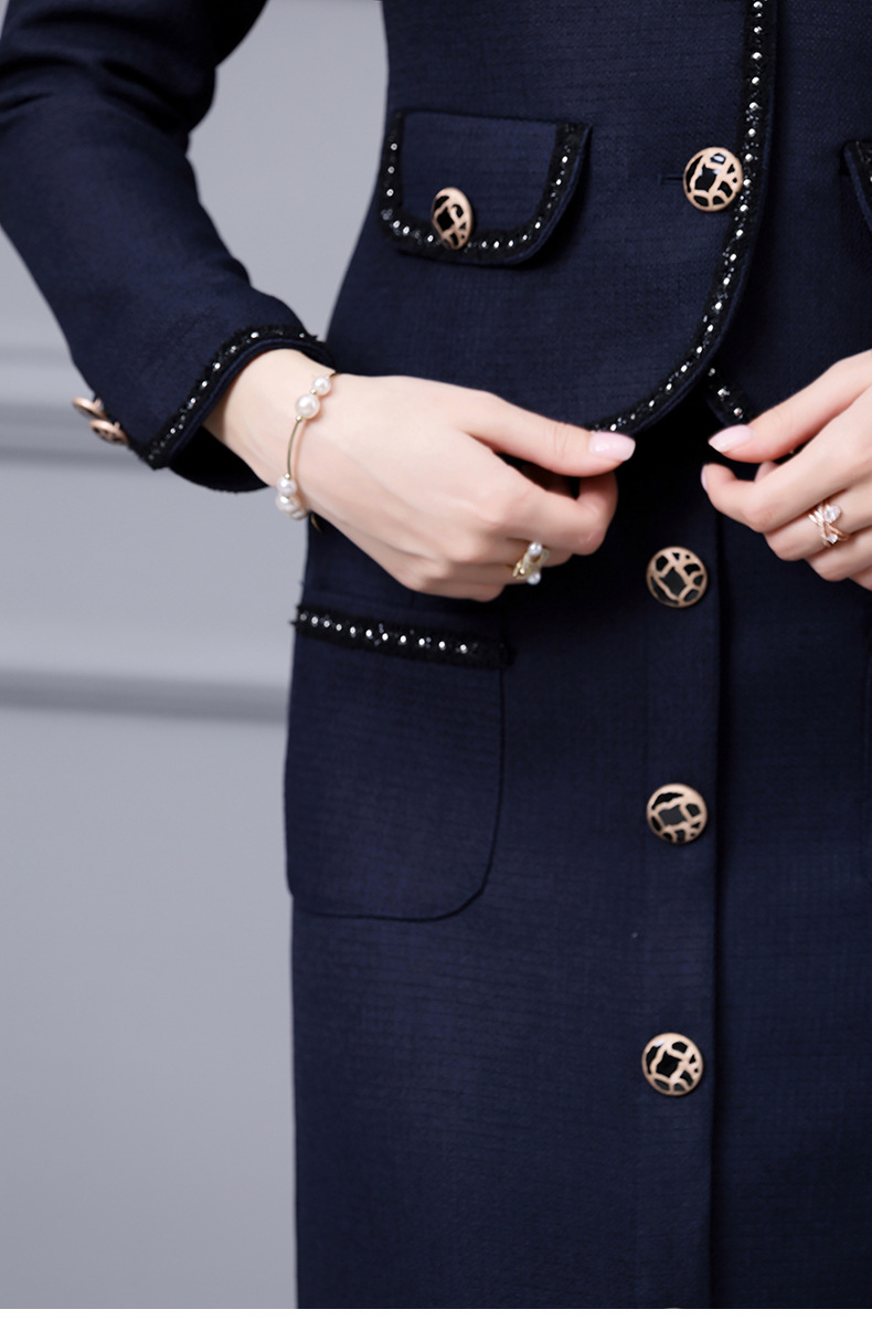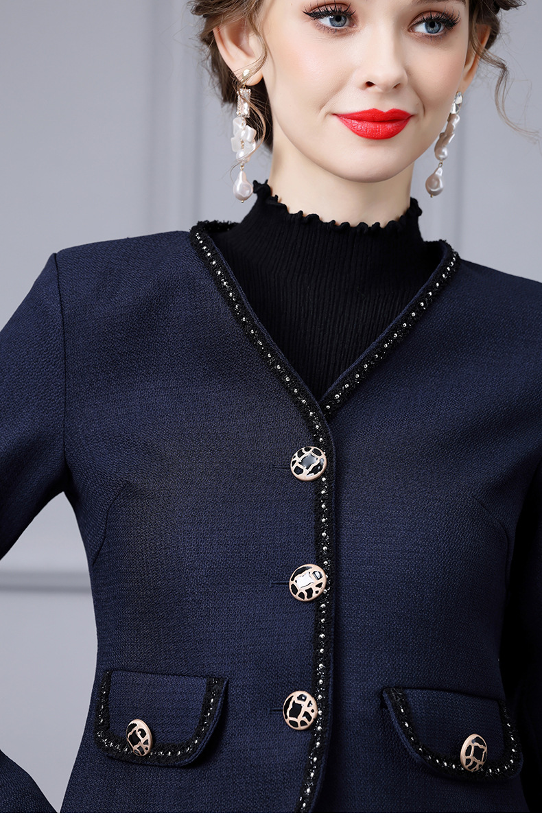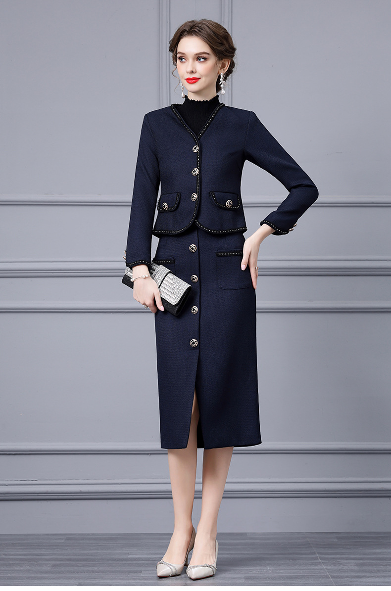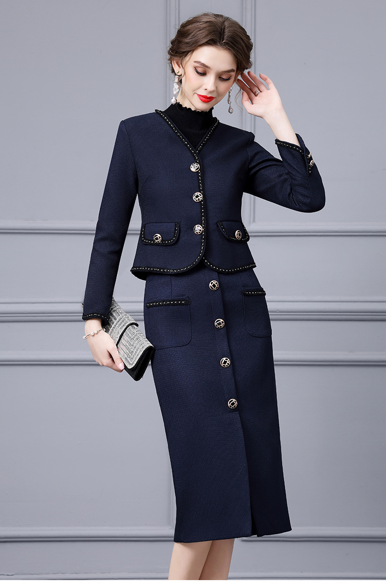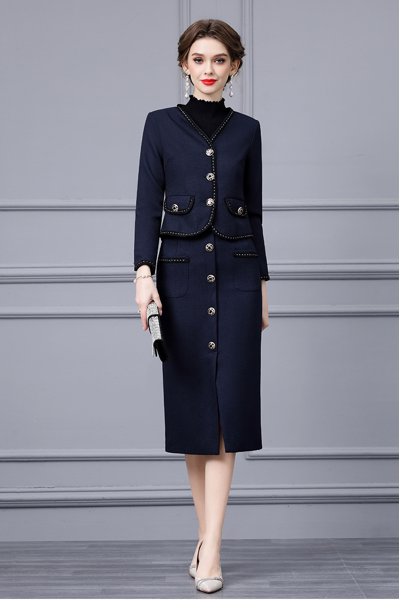 Bộ trang phục hai mảnh này có áo khoác dáng ngắn cổ chữ V, kết hợp cùng chân váy bó ôm sát và xẻ nhẹ. Điểm nhấn là đường viền dệt hoa văn tinh tế dọc theo cổ áo và tà áo, tạo nên nét đẹp dịu dàng. Chất vải mềm mại phù hợp cho tiết trời thu. Có thể mặc nguyên bộ hoặc phối cùng trang phục khác. Phù hợp cho nhiều dịp đi làm, gặp gỡ hay dạo phố. | Tên sản phẩm: Áo Khoác Nữ Cả Bộ 2 Món Họa Tiết Hoa Cổ Chữ V Hàng Mùa Xuân Thu Đông - Thời Trang Nữ | Mã sản phẩm: A9756 - Giá: 3.010.000đ | Mã nhà sản xuất: SHDAP-G06Hình ảnh sản phẩm