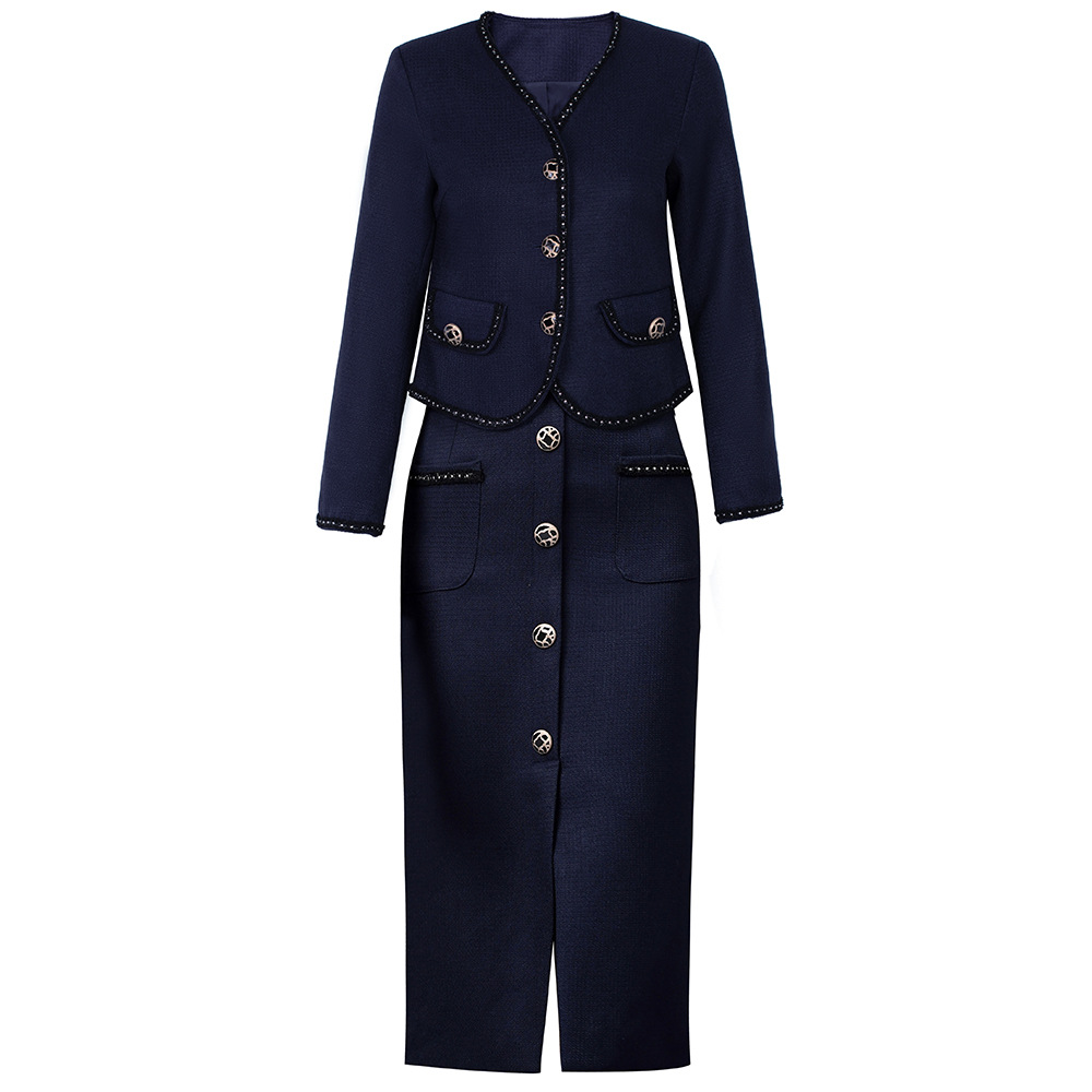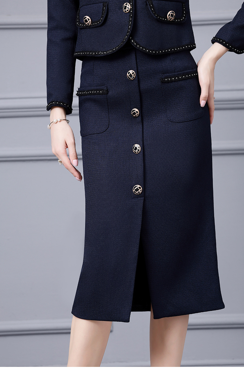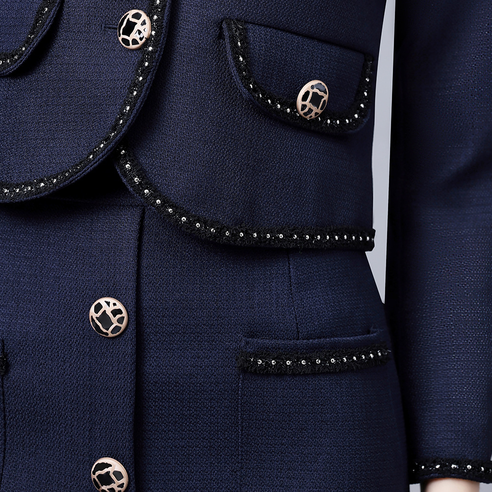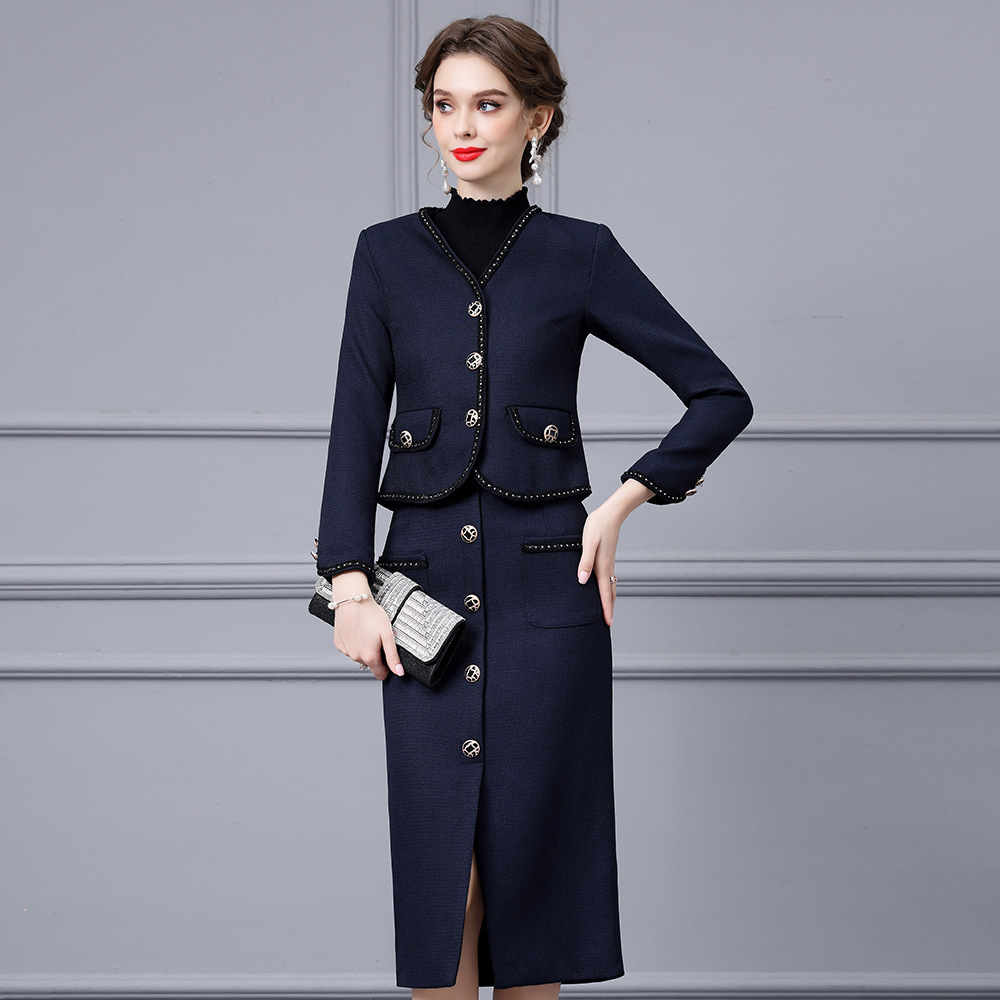 Bộ trang phục hai mảnh này có áo khoác dáng ngắn cổ chữ V, kết hợp cùng chân váy bó ôm sát và xẻ nhẹ. Điểm nhấn là đường viền dệt hoa văn tinh tế dọc theo cổ áo và tà áo, tạo nên nét đẹp dịu dàng. Chất vải mềm mại phù hợp cho tiết trời thu. Có thể mặc nguyên bộ hoặc phối cùng trang phục khác. Phù hợp cho nhiều dịp đi làm, gặp gỡ hay dạo phố. | Tên sản phẩm: Áo Khoác Nữ Cả Bộ 2 Món Họa Tiết Hoa Cổ Chữ V Hàng Mùa Xuân Thu Đông - Thời Trang Nữ | Mã sản phẩm: A9756 - Giá: 3.010.000đ | Mã nhà sản xuất: SHDAP-G06Hình ảnh sản phẩm