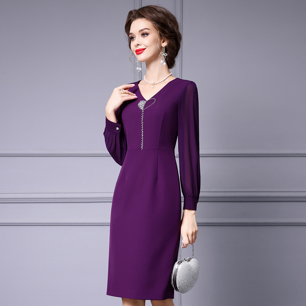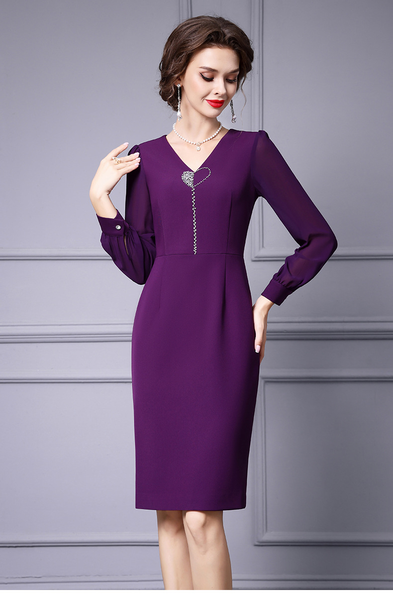 Chiếc đầm tay dài này có thiết kế cổ chữ V tôn dáng, kết hợp cùng phần tay bồng nhẹ nhàng tạo điểm nhấn. Sản phẩm sử dụng màu tím đặc trưng cho các mùa xuân thu, được điểm xuyết tỉ mỉ bằng các hạt đá được gắn thủ công. Kiểu dáng phù hợp để mặc đi làm hoặc dự những buổi gặp mặt. Bạn có thể phối cùng giày cao gót và túi xách để hoàn thiện bộ trang phục. | Tên sản phẩm: Váy Đầm Liền Thân Nữ Dài Tay Tay Phồng Cổ Chữ V Hàng Mùa Xuân Thu Đông - Thời Trang Nữ | Mã sản phẩm: A9799 - Giá: 2.910.000đ | Mã nhà sản xuất: SHDAP-G06Hình ảnh sản phẩm