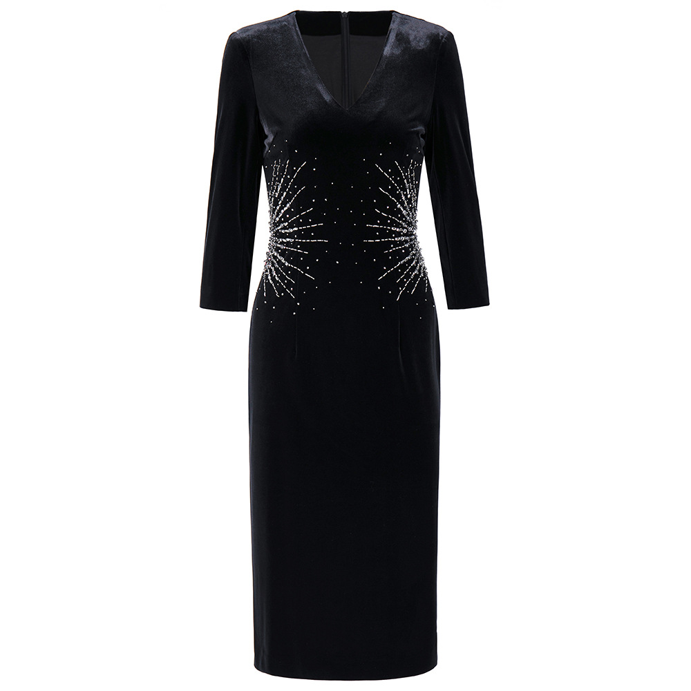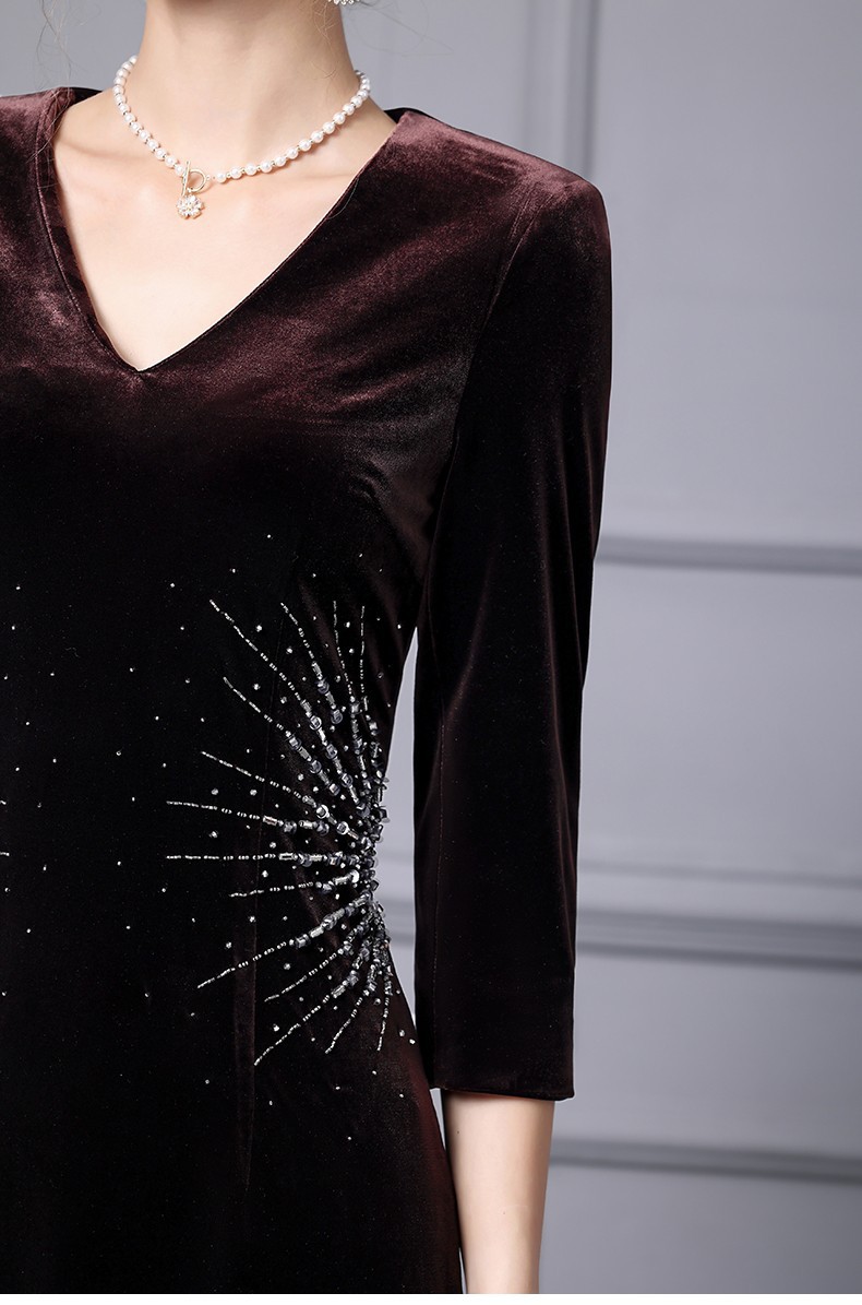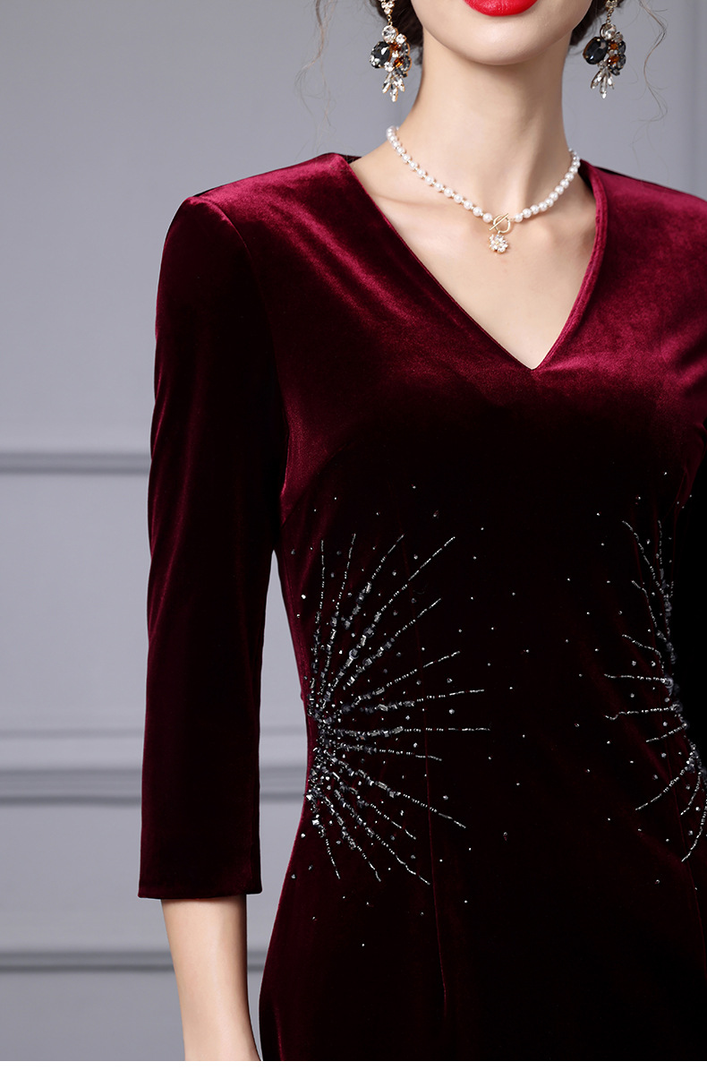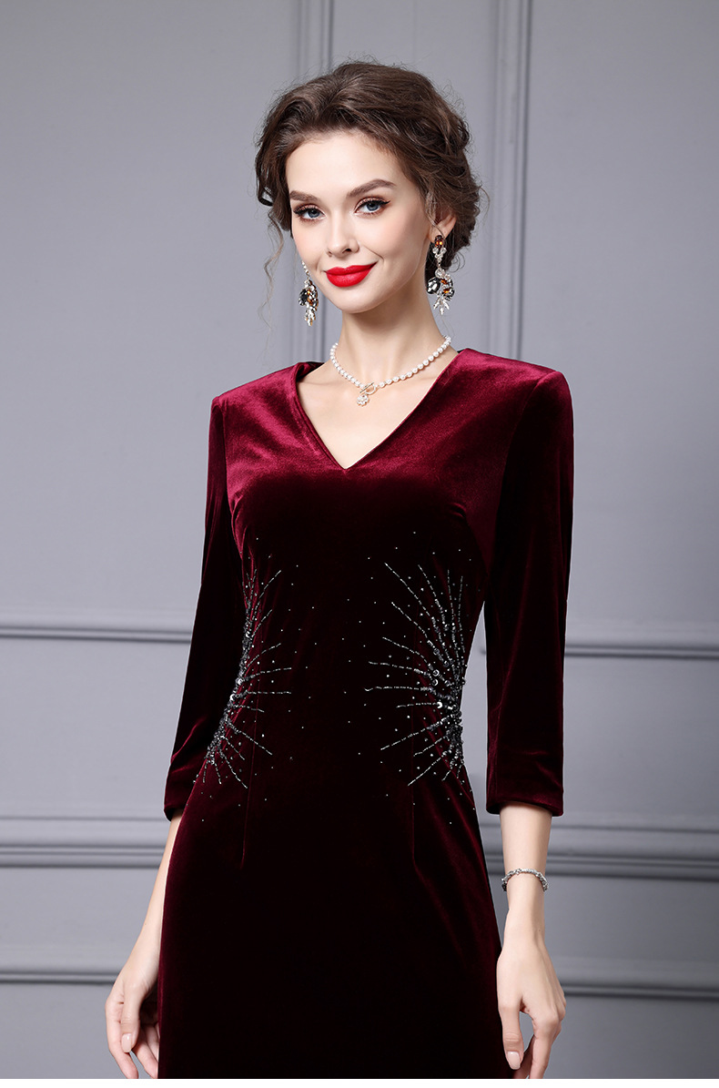 Chiếc đầm tay dài này có thiết kế phù hợp cho tiết trời xuân và thu. Chất vải nhung mềm mại, điểm xuyết những hạt đá lấp lánh tinh tế tạo nên vẻ đẹp nổi bật. Kiểu dáng ôm vừa vặn, phù hợp để mặc trong những dịp cần sự chỉn chu. Có thể kết hợp cùng phụ kiện để tạo điểm nhấn. Sản phẩm dễ dàng giặt bằng tay và bảo quản nơi khô ráo. | Tên sản phẩm: Váy Đầm Liền Thân Nữ Dài Tay Hàng Mùa Xuân Thu Đông - Thời Trang Nữ | Mã sản phẩm: A9804 - Giá: 3.430.000đ | Mã nhà sản xuất: SHDAP-G06Hình ảnh sản phẩm