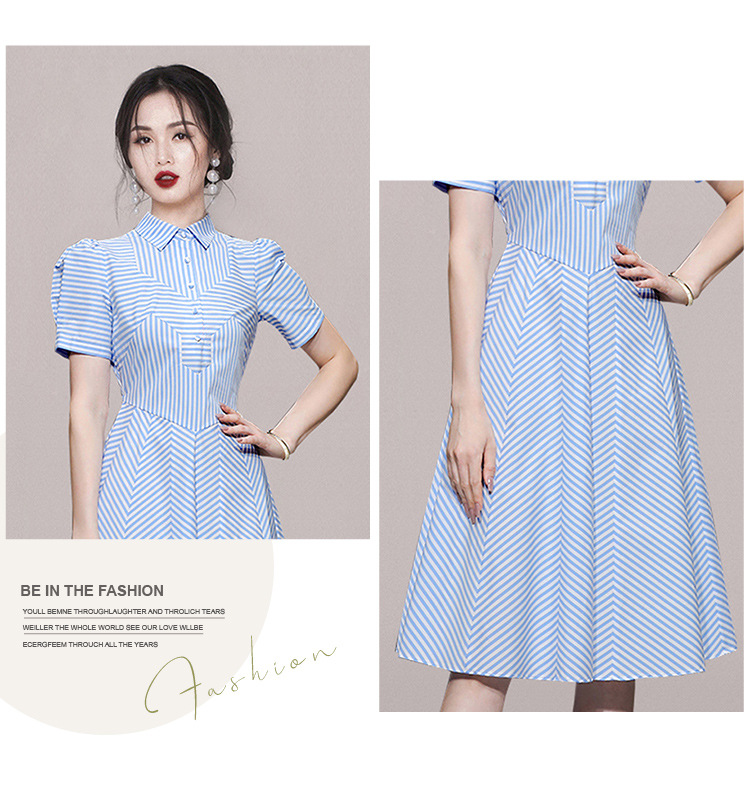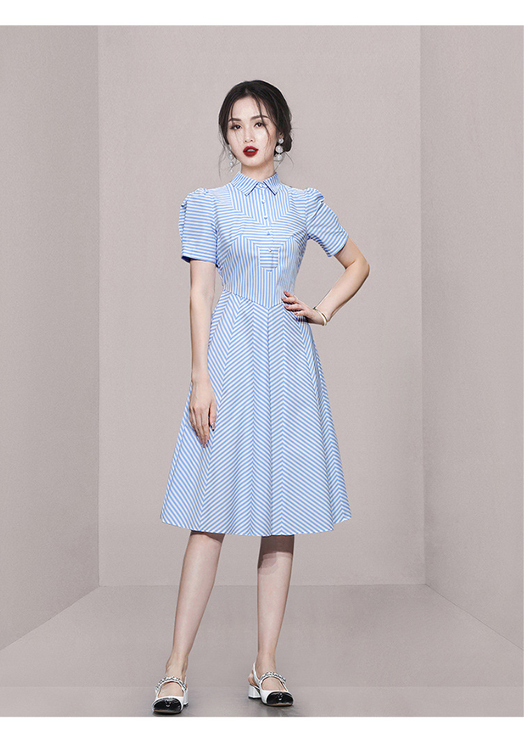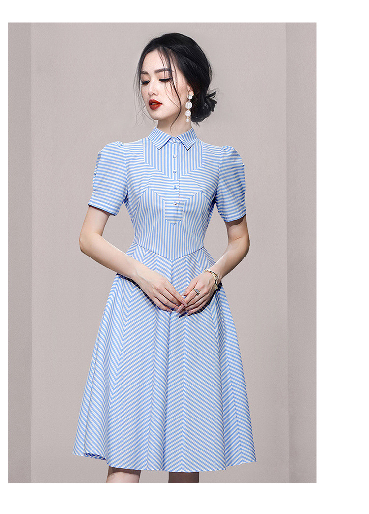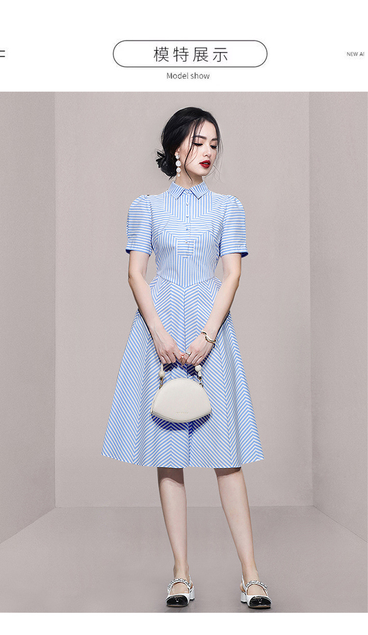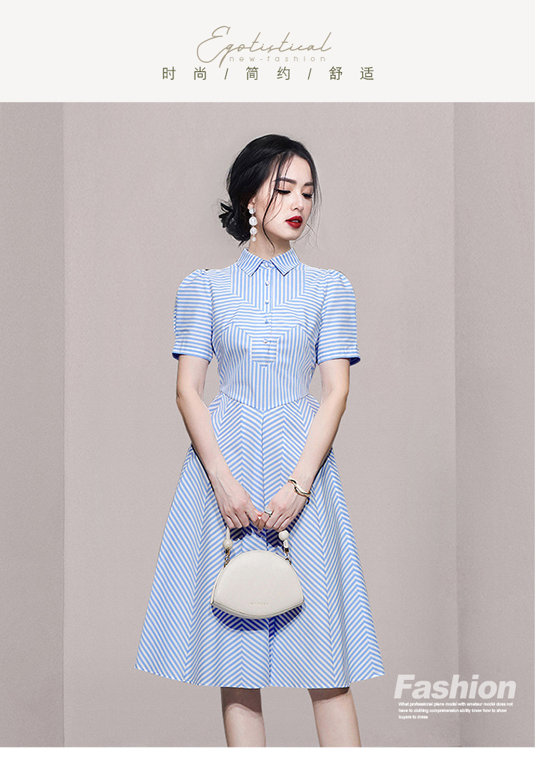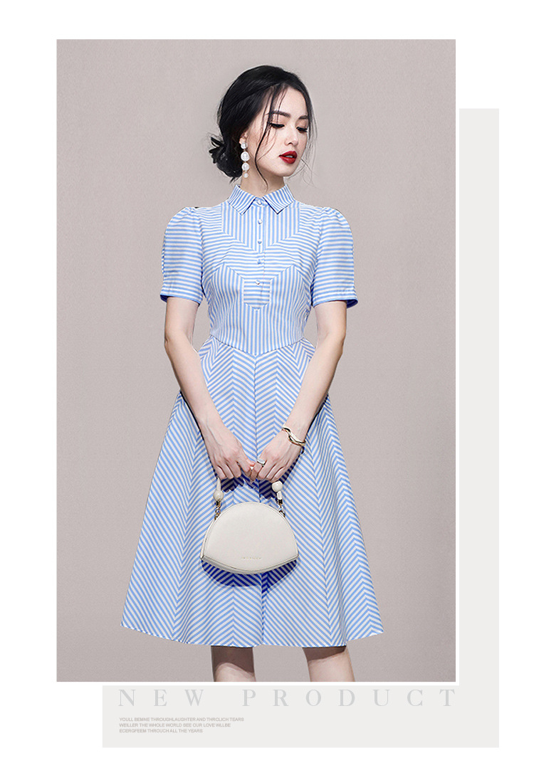 Chiếc đầm dành cho những ngày hè năng động. Thiết kế cổ bẻ và tay phồng cách điệu tôn vinh nét duyên dáng. Điểm nhấn là các đường kẻ sọc cùng form dáng chữ A thon gọn, giúp tạo hình cân đối. Chất vải mềm mại, thoáng mát cho cảm giác dễ chịu khi mặc. Có thể phối cùng giày cao gót hoặc giày bệt để tạo nên những phong cách khác nhau. | Tên sản phẩm: Váy Đầm Liền Thân Nữ Dáng Chữ A Tay Phồng Kín Cổ Hàng Mùa Hè - Thời Trang Nữ | Mã sản phẩm: A9821 - Giá: 990.000đ | Mã nhà sản xuất: ZHOUT-G03Hình ảnh sản phẩm