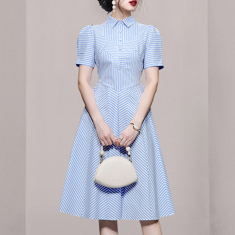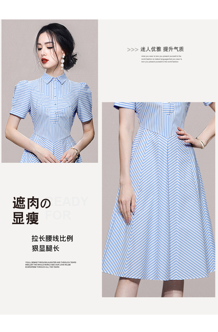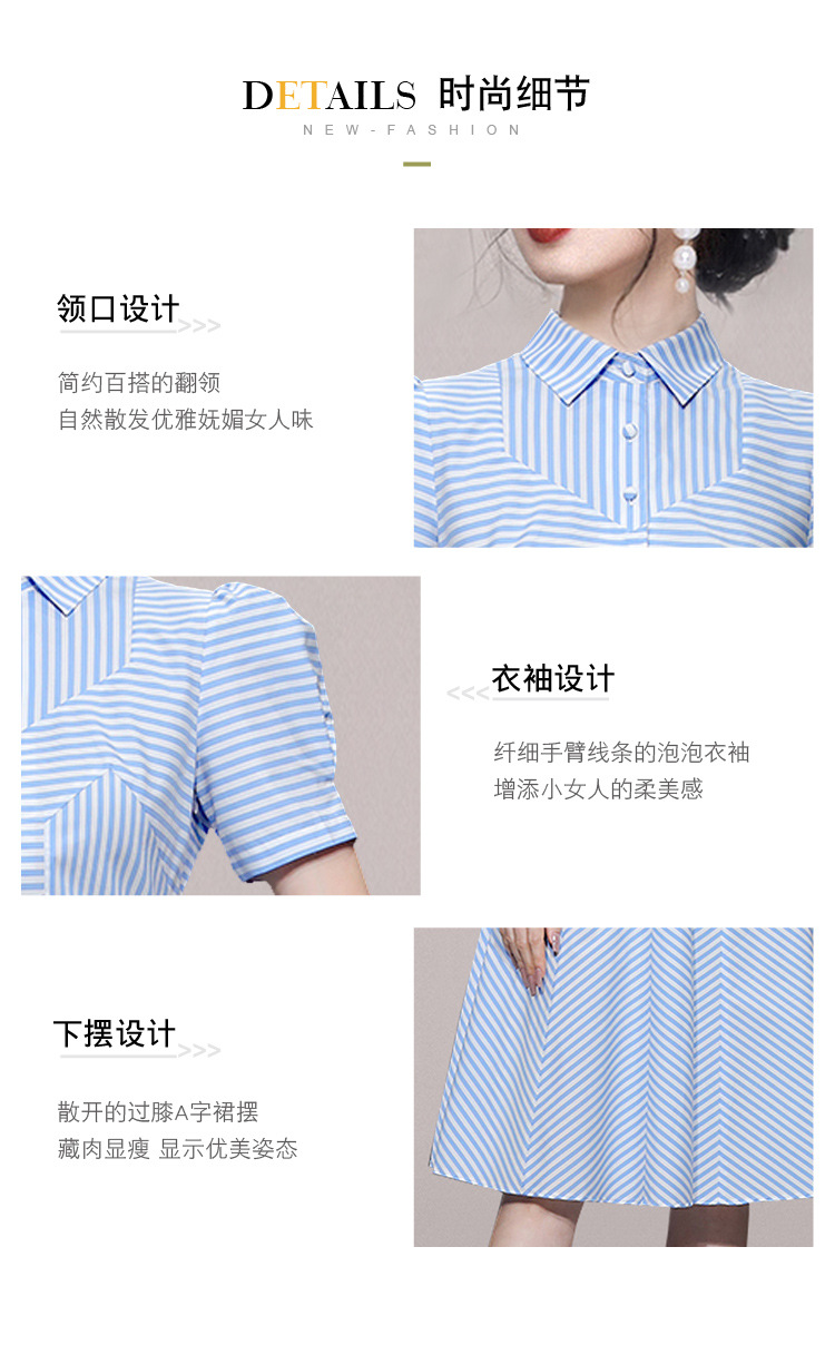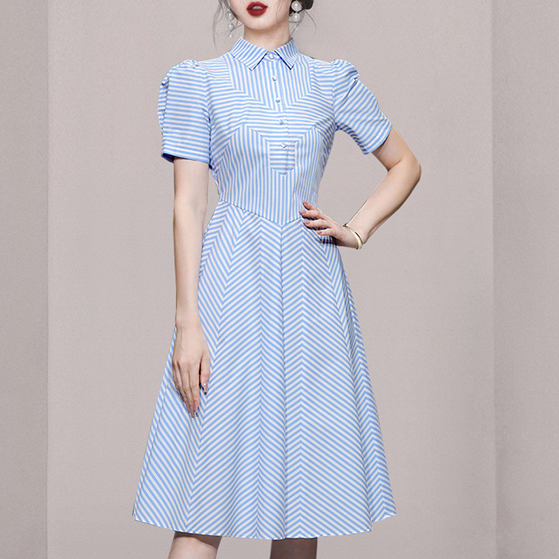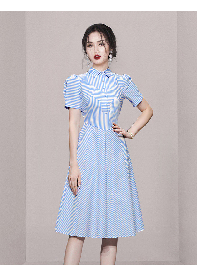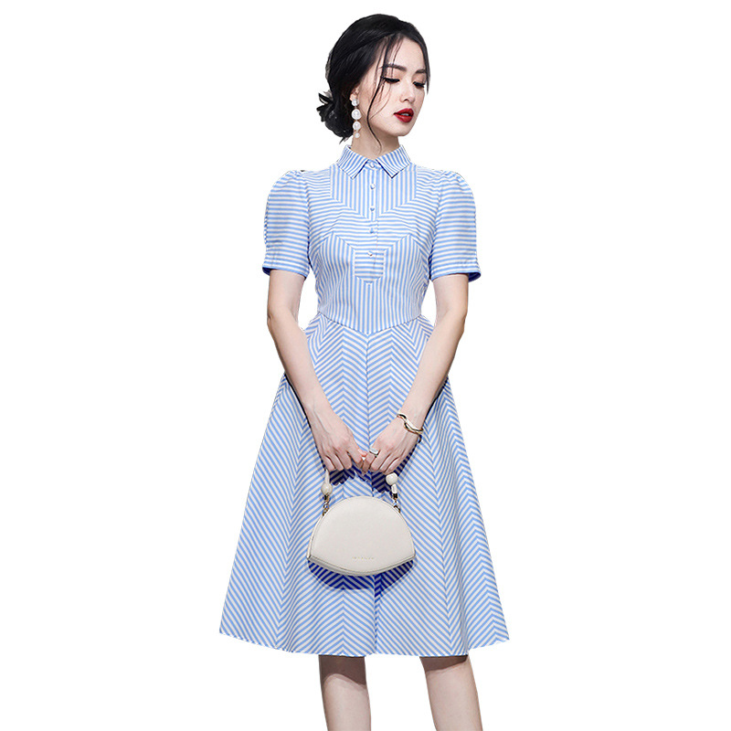 Chiếc đầm dành cho những ngày hè năng động. Thiết kế cổ bẻ và tay phồng cách điệu tôn vinh nét duyên dáng. Điểm nhấn là các đường kẻ sọc cùng form dáng chữ A thon gọn, giúp tạo hình cân đối. Chất vải mềm mại, thoáng mát cho cảm giác dễ chịu khi mặc. Có thể phối cùng giày cao gót hoặc giày bệt để tạo nên những phong cách khác nhau. | Tên sản phẩm: Váy Đầm Liền Thân Nữ Dáng Chữ A Tay Phồng Kín Cổ Hàng Mùa Hè - Thời Trang Nữ | Mã sản phẩm: A9821 - Giá: 990.000đ | Mã nhà sản xuất: ZHOUT-G03Hình ảnh sản phẩm