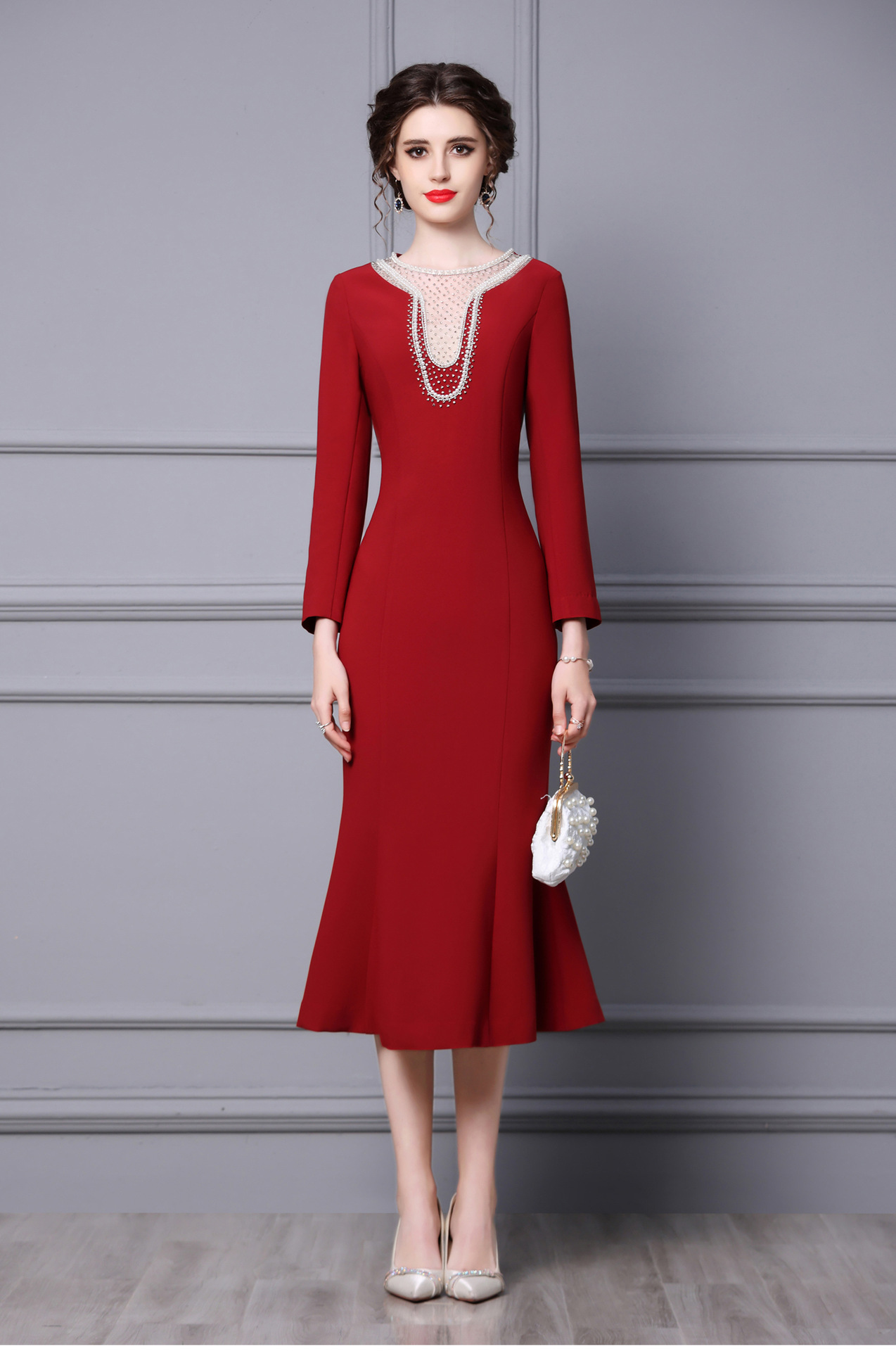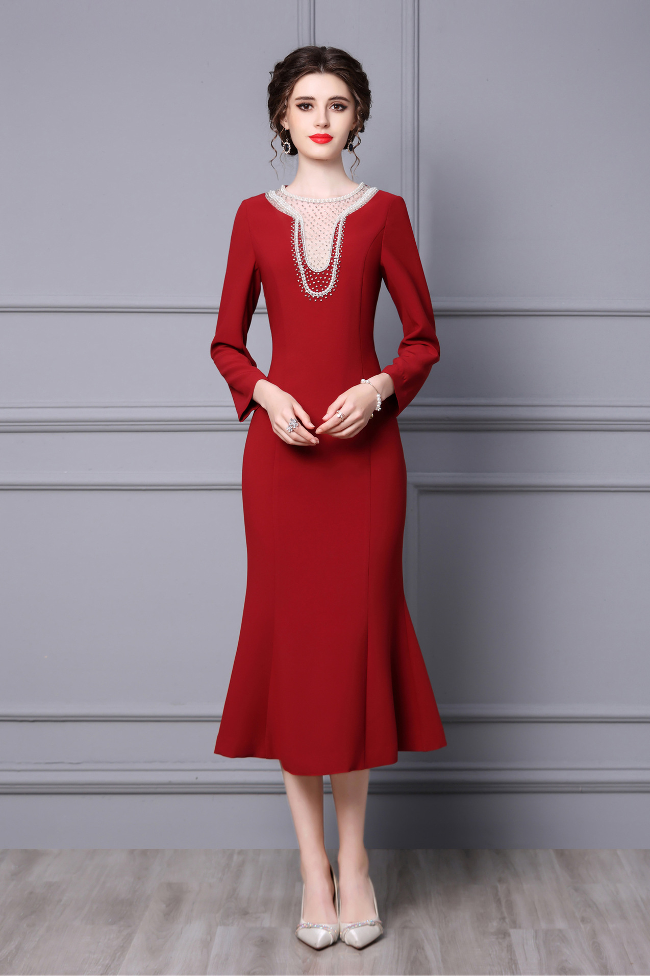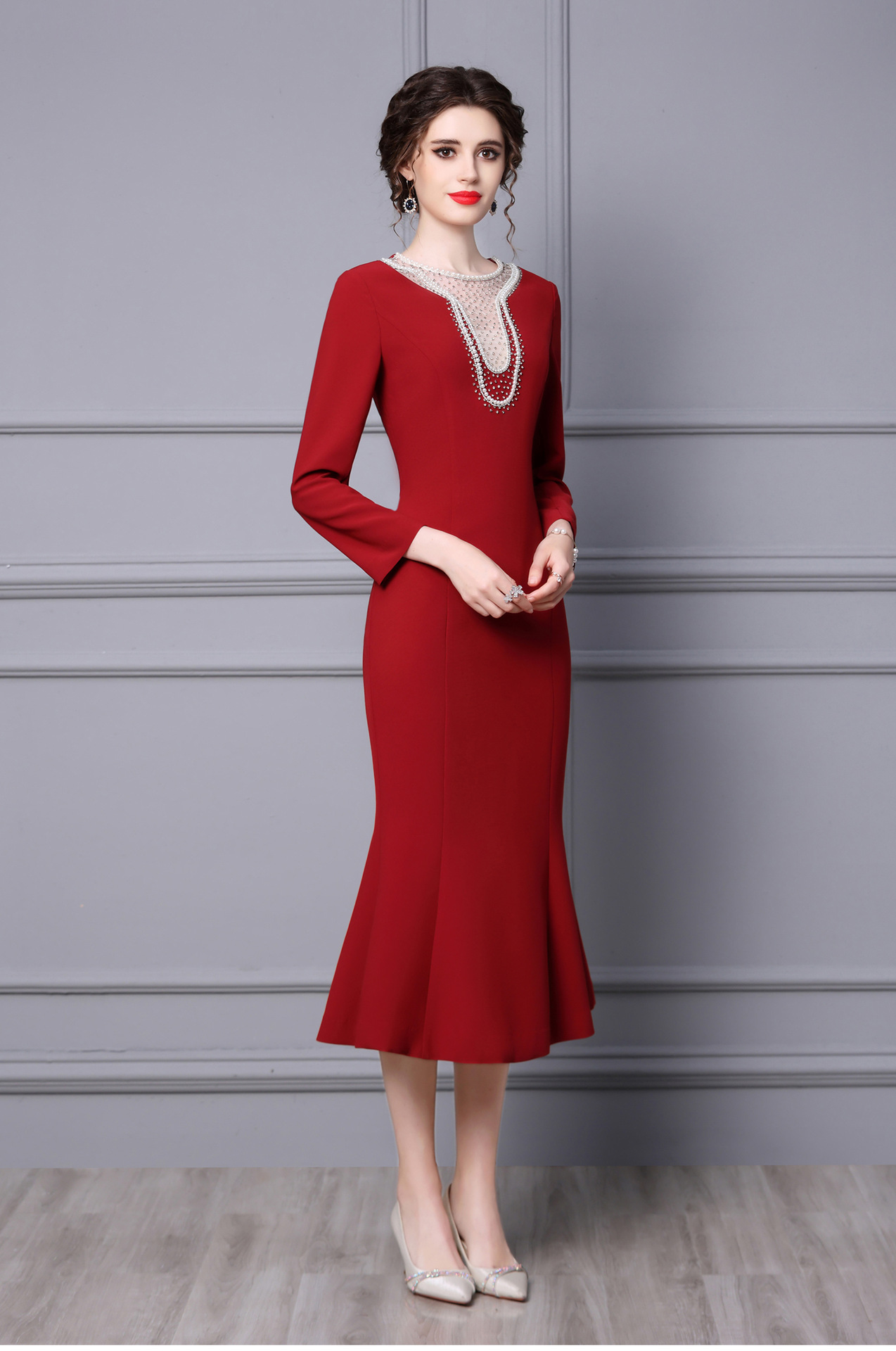 Đầm dự tiệc dáng dài tay cho mùa thu, lấy cảm hứng từ phong cách châu Âu. Thiết kế ôm body với phần đuôi xòe nhẹ ở gấu tạo nên điểm nhấn thanh lịch. Điểm cộng là những hạt ngọc tr được đính tinh tế, giúp tôn lên vẻ nữ tính. Sản phẩm phù hợp cho các buổi họp mặt hoặc sự kiện vào chiều tối. Có thể kết hợp cùng giày cao gót và phụ kiện nhỏ để hoàn thiện bộ trang phục. | Tên sản phẩm: Váy Đầm Liền Thân Dự Tiệc Nữ Dài Tay Kiểu Đuôi Cá Hàng Mùa Xuân Thu Đông - Thời Trang Nữ | Mã sản phẩm: A9851 - Giá: 2.870.000đ | Mã nhà sản xuất: SHDAP-G06Hình ảnh sản phẩm