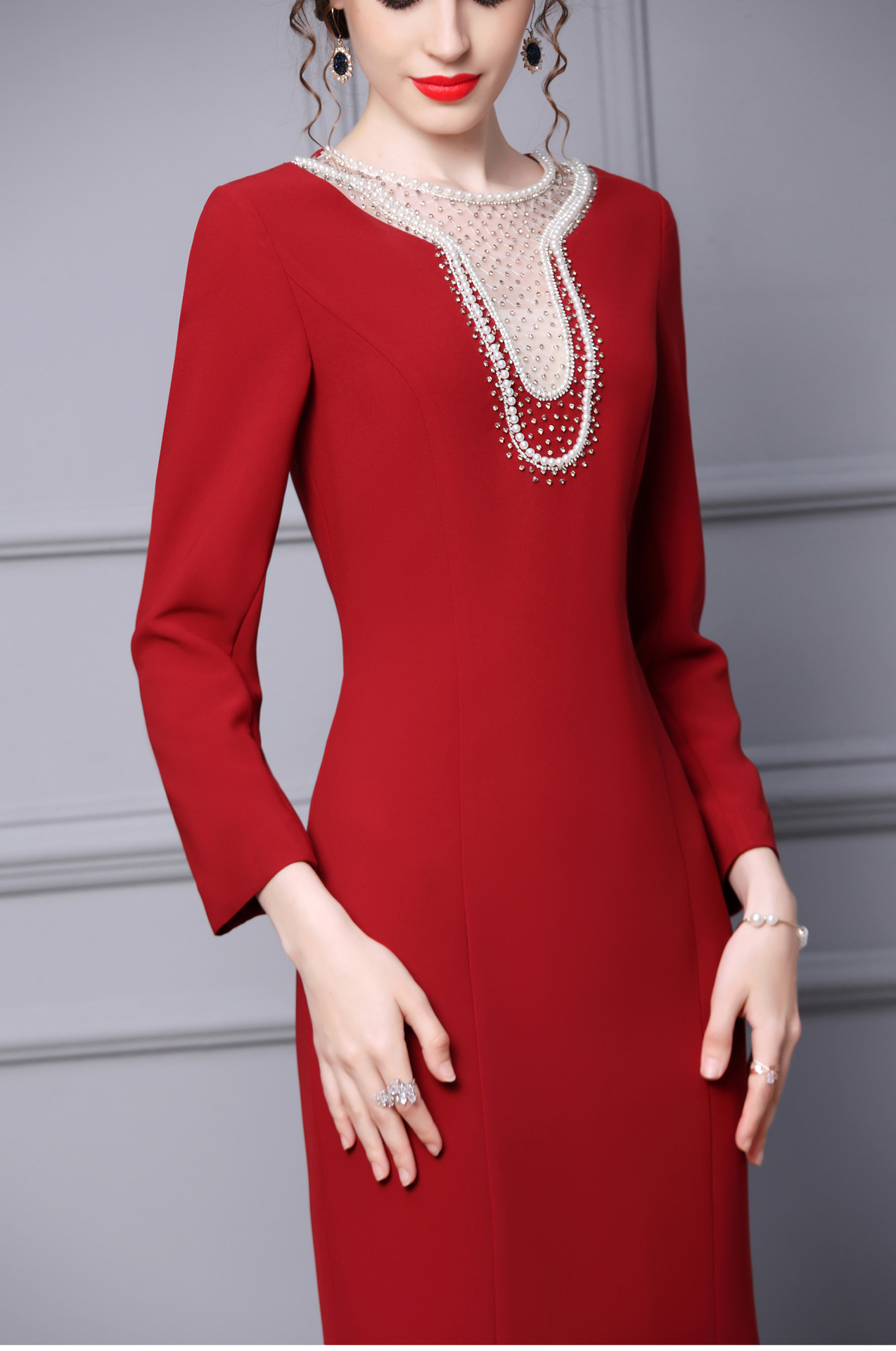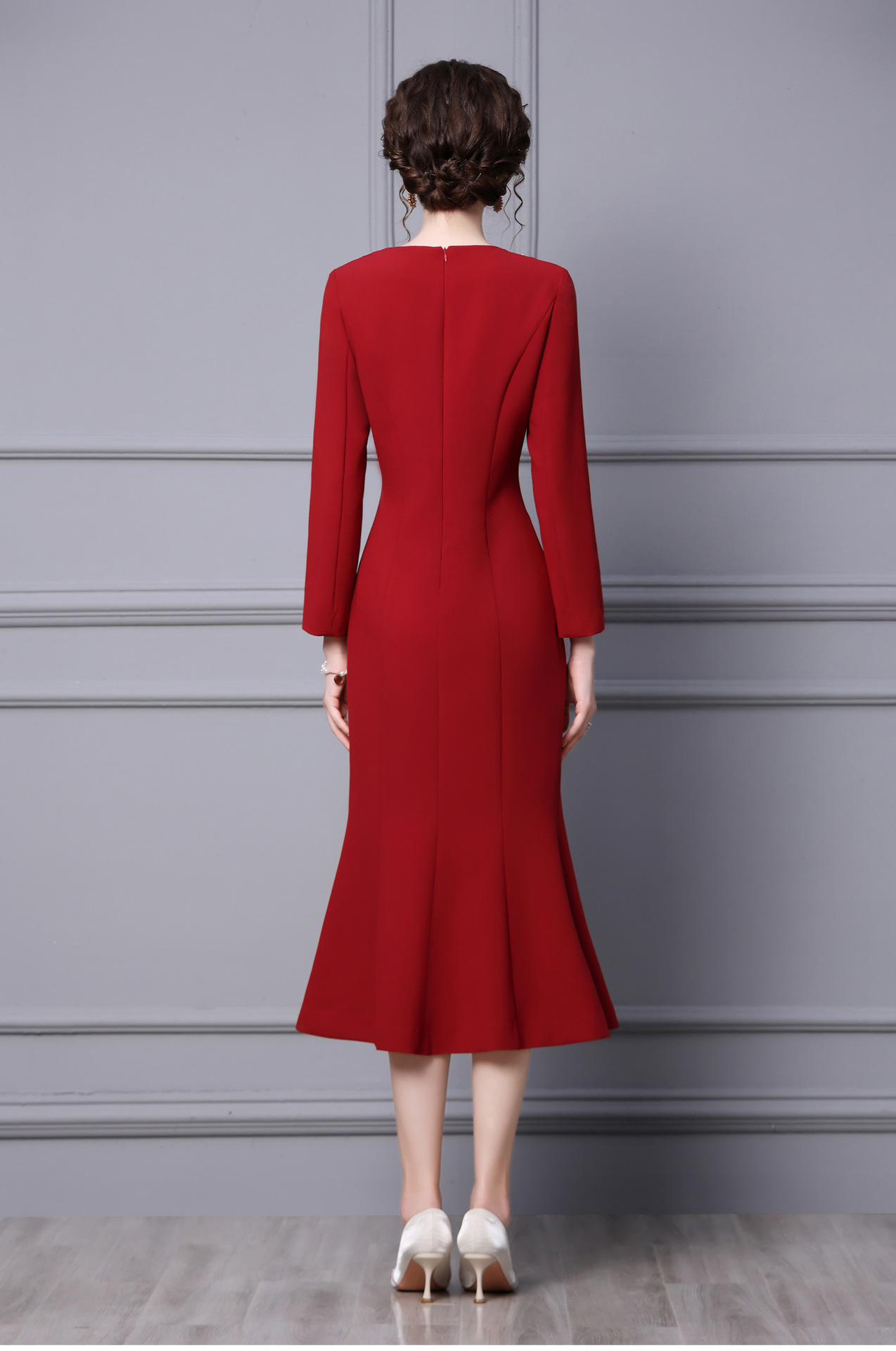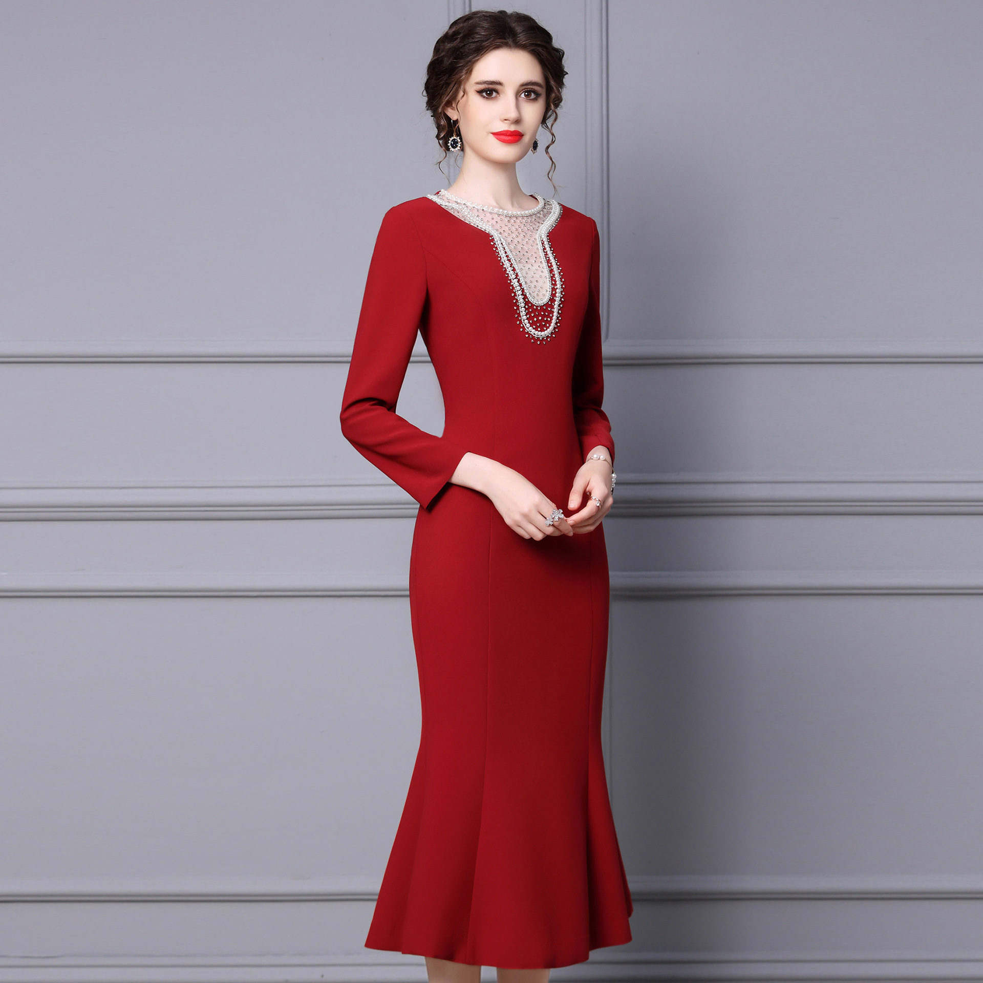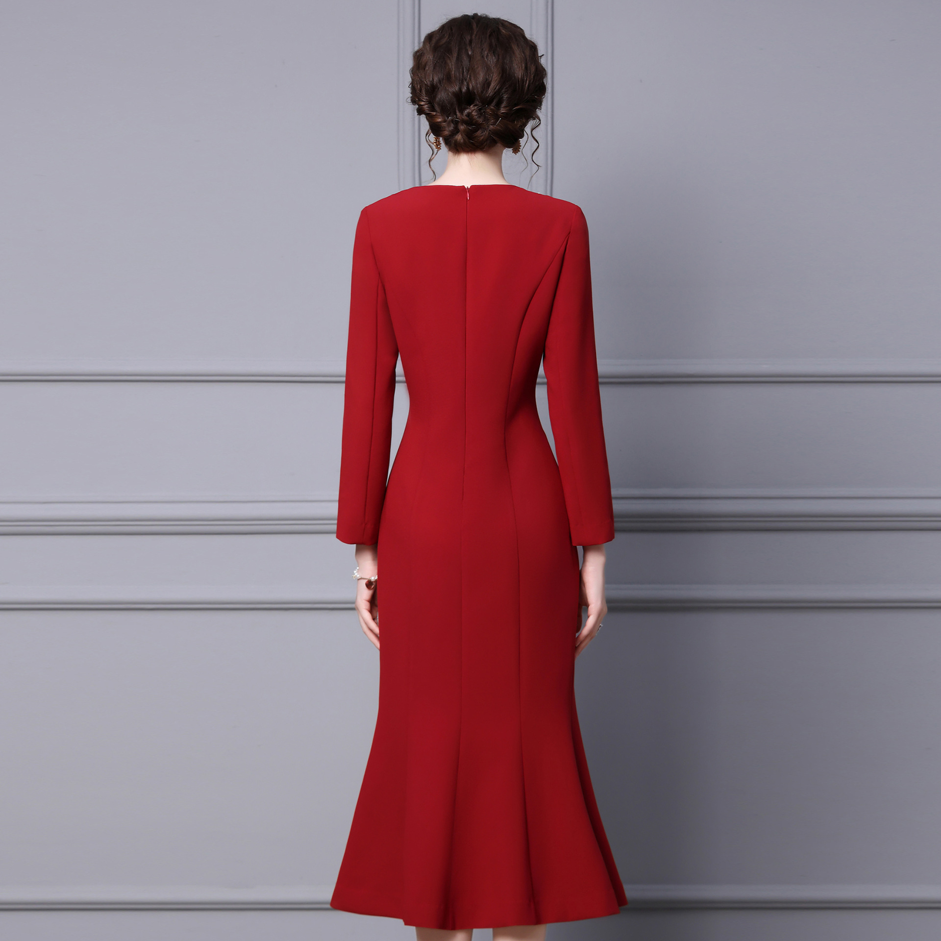 Đầm dự tiệc dáng dài tay cho mùa thu, lấy cảm hứng từ phong cách châu Âu. Thiết kế ôm body với phần đuôi xòe nhẹ ở gấu tạo nên điểm nhấn thanh lịch. Điểm cộng là những hạt ngọc tr được đính tinh tế, giúp tôn lên vẻ nữ tính. Sản phẩm phù hợp cho các buổi họp mặt hoặc sự kiện vào chiều tối. Có thể kết hợp cùng giày cao gót và phụ kiện nhỏ để hoàn thiện bộ trang phục. | Tên sản phẩm: Váy Đầm Liền Thân Dự Tiệc Nữ Dài Tay Kiểu Đuôi Cá Hàng Mùa Xuân Thu Đông - Thời Trang Nữ | Mã sản phẩm: A9851 - Giá: 2.870.000đ | Mã nhà sản xuất: SHDAP-G06Hình ảnh sản phẩm