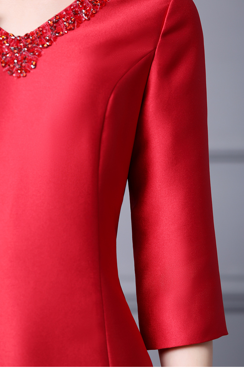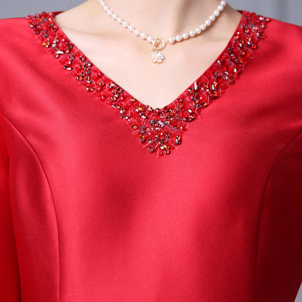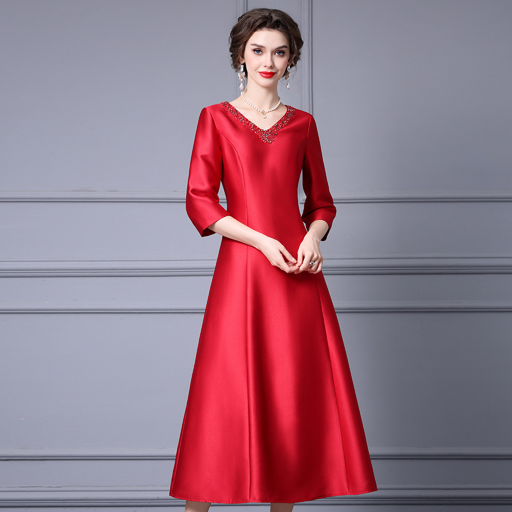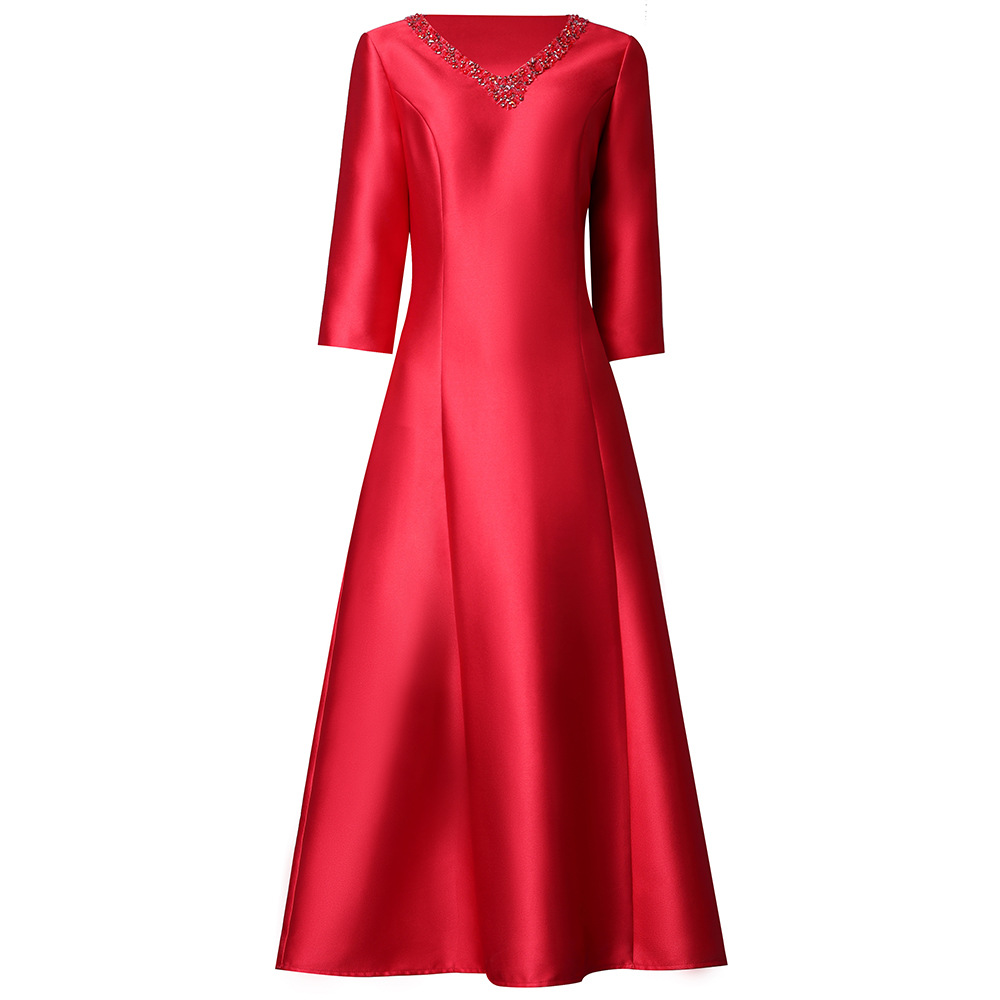 Chiếc đầm dáng dài mang sắc đỏ nổi bật, phù hợp cho mùa thu. Thiết kế có phần cổ chữ V, tay áo dài ba phần và thân váy xòe nhẹ nhàng tạo dáng điệu đà. Điểm nhấn tinh tế đến từ những hạt đá được gắn tỉ mỉ bằng tay. Sản phẩm thích hợp để mặc trong các buổi gặp mặt hoặc sự kiện. Có thể giặt bằng tay và phơi ở nơi râm mát để giữ dáng váy lâu bền. | Tên sản phẩm: Váy Đầm Liền Thân Dáng Dài Nữ Cổ Chữ V Hàng Mùa Xuân Thu Đông - Thời Trang Nữ | Mã sản phẩm: A9853 - Giá: 2.870.000đ | Mã nhà sản xuất: SHDAP-G06Hình ảnh sản phẩm