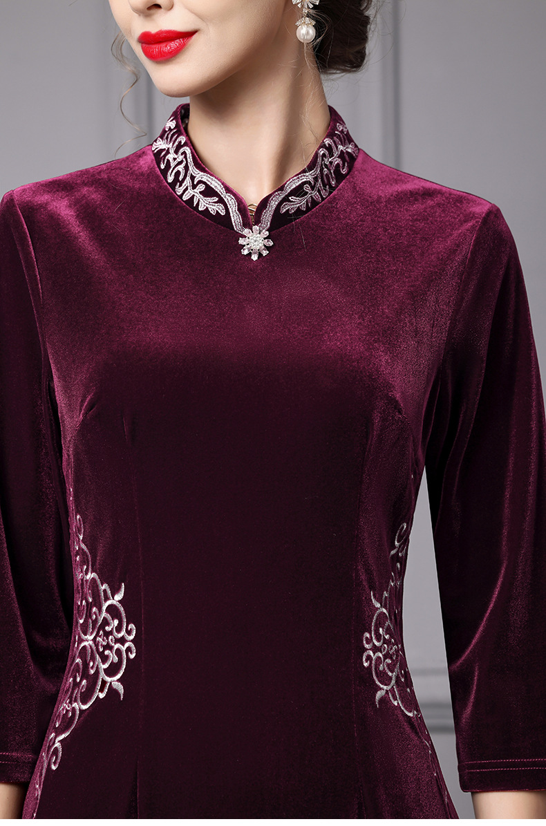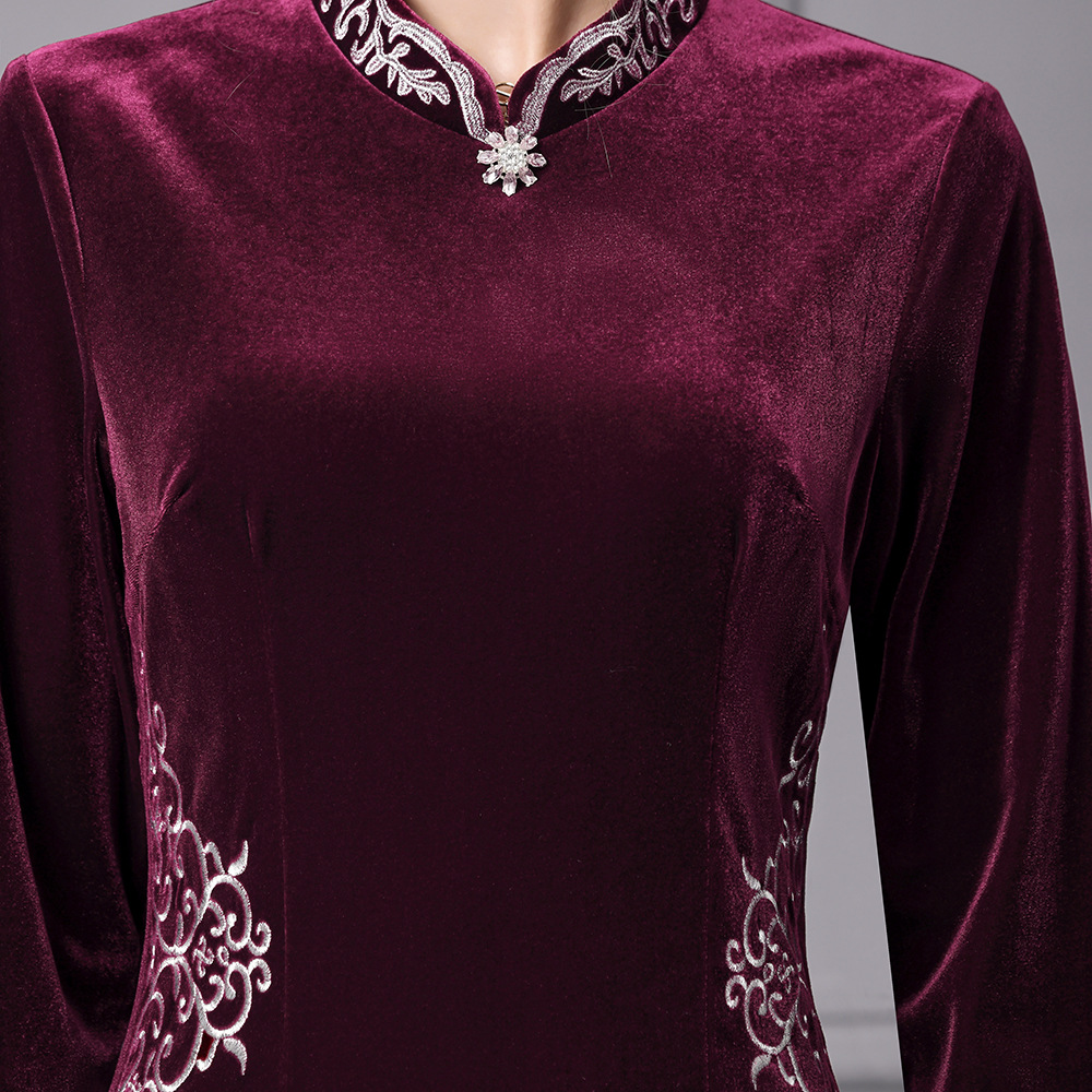 Chiếc đầm dành cho mẹ, được thiết kế với phong cách hiện đại kết hợp nét duyên dáng. Chất vải nhung mềm mại, tạo cảm giác dễ chịu khi mặc. Kiểu dáng ôn hòa, phù hợp cho những ngày thu se lạnh. Sản phẩm dễ dàng phối cùng giày dép thông thường để tạo nên vẻ ngoại hình chỉn chu. Mẫu đầm này giúp người mặc cảm thấy thoải mái và tự tin trong nhiều hoàn cảnh khác nhau. | Tên sản phẩm: Váy Đầm Liền Thân Nữ Hàng Mùa Xuân Thu Đông Trung Niên - Thời Trang Nữ | Mã sản phẩm: A9858 - Giá: 2.640.000đ | Mã nhà sản xuất: SHDAP-G06Hình ảnh sản phẩm
