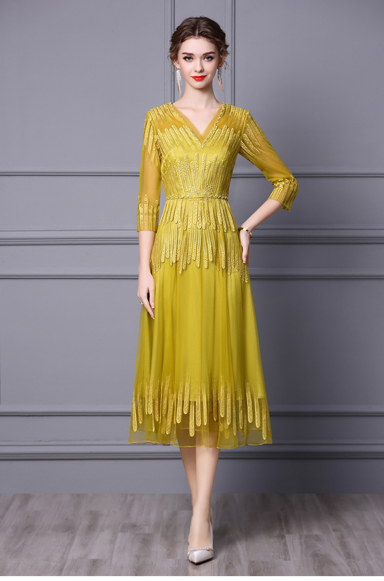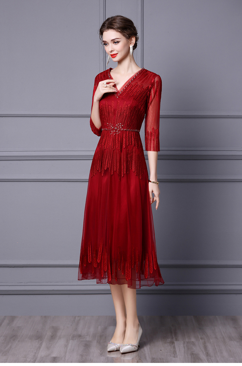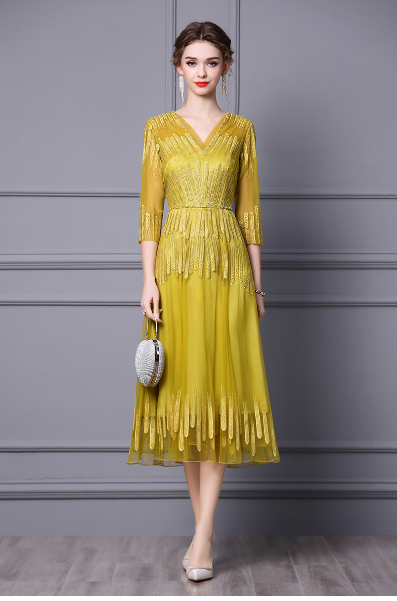 Chiếc đầm dự tiệc mang phong cách dịu dàng, điểm nhấn là phần cổ khoét sâu tạo nét duyên dáng. Trên nền vải mềm mại là những họa tiết thêu kết hợp đính hạt cầu kỳ, tỉ mỉ. Kiểu dáng thanh lịch, phù hợp cho các buổi gặp mặt. Mặc cùng giày cao gót và phụ kiện tôn dáng để tạo điểm nhấn hoàn hảo. | Tên sản phẩm: Váy Đầm Liền Thân Nữ Thêu Họa Tiết Hoa Cổ Chữ V Hàng Mùa Xuân Thu Đông - Thời Trang Nữ | Mã sản phẩm: A9859 - Giá: 4.350.000đ | Mã nhà sản xuất: SHDAP-G06Hình ảnh sản phẩm