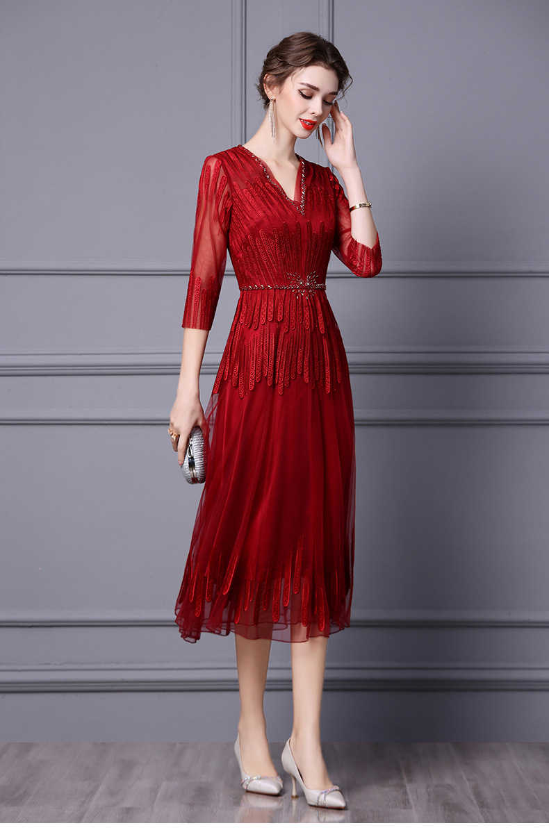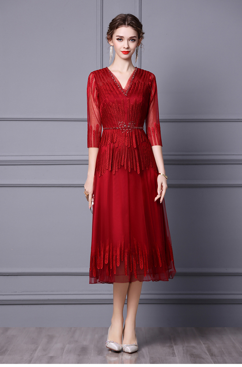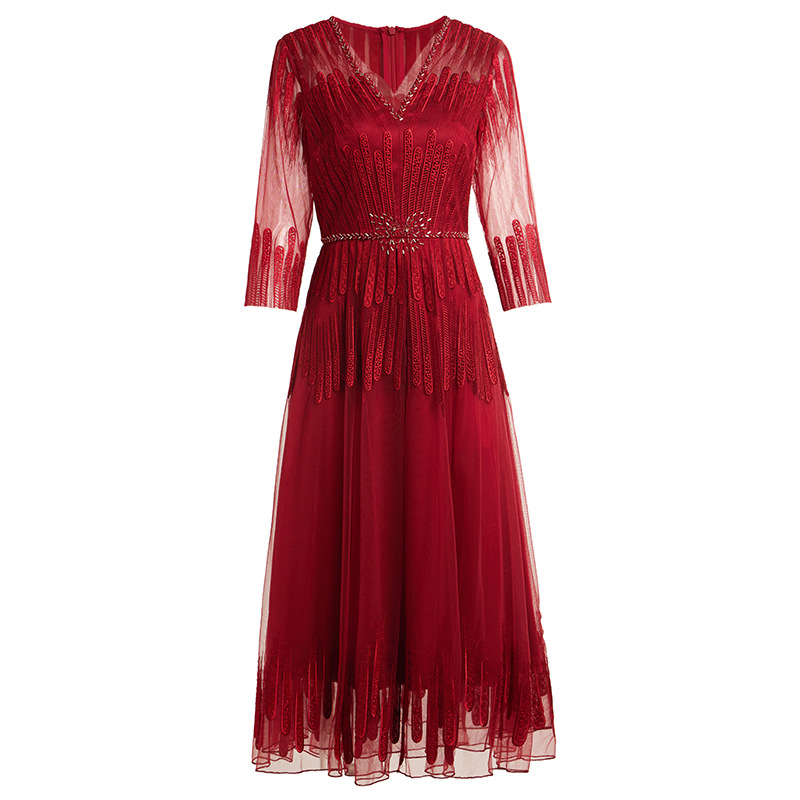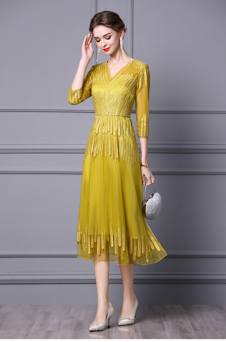 Chiếc đầm dự tiệc mang phong cách dịu dàng, điểm nhấn là phần cổ khoét sâu tạo nét duyên dáng. Trên nền vải mềm mại là những họa tiết thêu kết hợp đính hạt cầu kỳ, tỉ mỉ. Kiểu dáng thanh lịch, phù hợp cho các buổi gặp mặt. Mặc cùng giày cao gót và phụ kiện tôn dáng để tạo điểm nhấn hoàn hảo. | Tên sản phẩm: Váy Đầm Liền Thân Nữ Thêu Họa Tiết Hoa Cổ Chữ V Hàng Mùa Xuân Thu Đông - Thời Trang Nữ | Mã sản phẩm: A9859 - Giá: 4.350.000đ | Mã nhà sản xuất: SHDAP-G06Hình ảnh sản phẩm