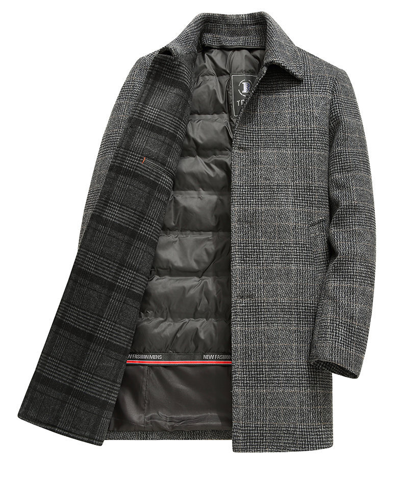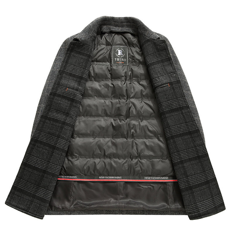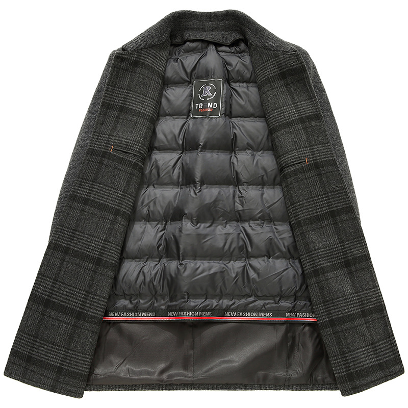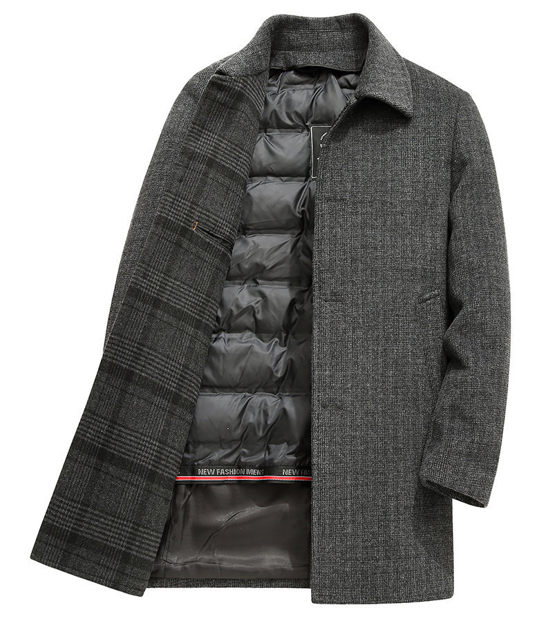Áo khoác dành cho nam, kiểu dáng dài vừa phải, phù hợp cho mùa thu đông. Thiết kế cổ bẻ lịch sự, phù hợp với môi trường công sở. Điểm nổi bật là phần áo lông vũ bên trong có thể tháo rời, giúp giữ ấm hiệu quả. Lớp ngoài cùng làm từ chất liệu có thành phần len, mang lại cảm giác ấm áp và thoải mái khi mặc. Có thể kết hợp linh hoạt với nhiều trang phục khác nhau trong những dịp khác nhau. | Tên sản phẩm: Áo Khoác Nam Kín Cổ Hàng Mùa Xuân Thu Đông Trung Niên - Thời Trang Nam | Mã sản phẩm: A9924 - Giá: 1.730.000đ | Mã nhà sản xuất: VIDAG-G05Hình ảnh sản phẩm