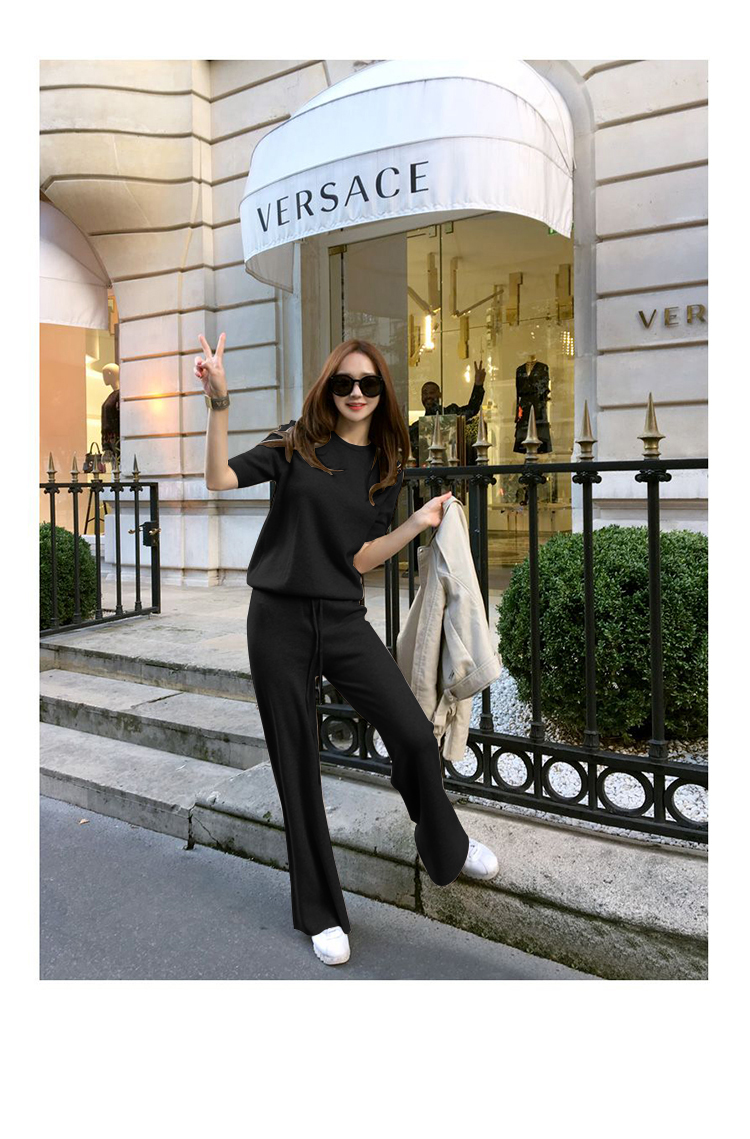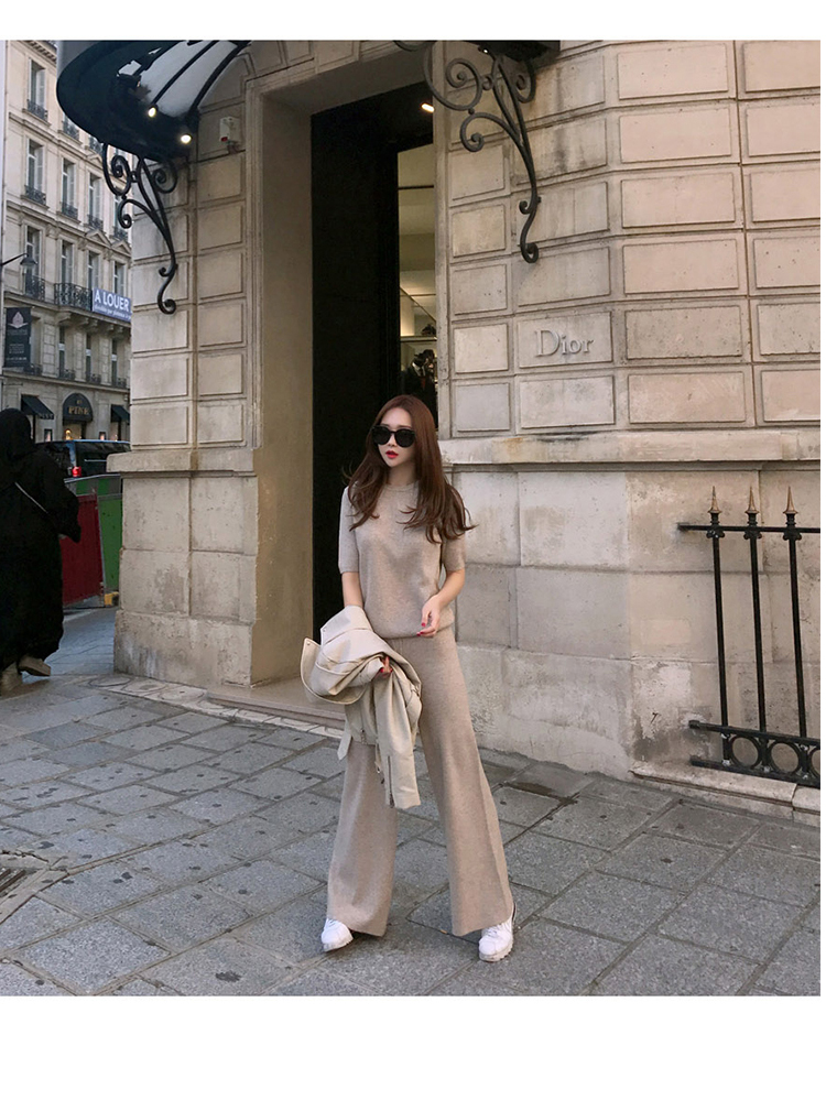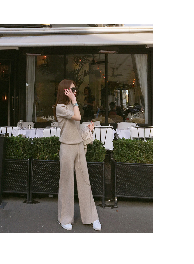 Bộ trang phục mùa hè này gồm áo ngắn tay dệt kim và quần ống rộng dài. Chất vải mềm mại, thoáng mát, mang đến sự dễ chịu khi mặc. Kiểu dáng trẻ trung, năng động, phù hợp cho nhiều dịp sinh hoạt hàng ngày. Bạn có thể mặc nguyên bộ để tạo vẻ chỉnh chu, hoặc phối cùng các trang phục khác để đa dạng phong cách. Sản phẩm dễ dàng giặt sạch và bảo quản như quần áo thông thường. | Tên sản phẩm: Đồ Bộ Nữ Áo Len Ngắn Tay Cả Bộ 2 Món Hàng Mùa Hè Phong Cách Hàn Quốc - Thời Trang Nữ | Mã sản phẩm: A9943 - Giá: 1.000.000đ | Mã nhà sản xuất: ZHOUT-G03Hình ảnh sản phẩm