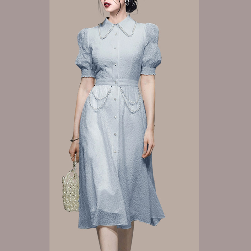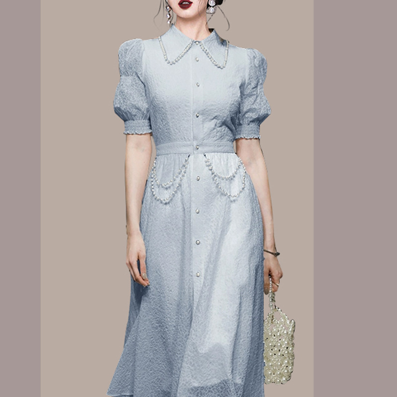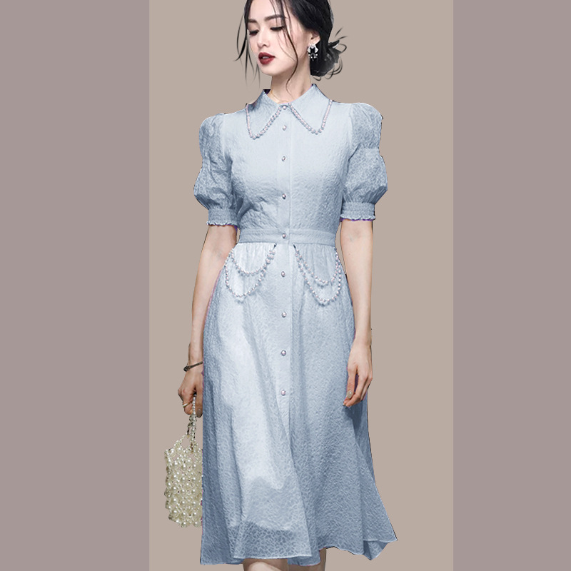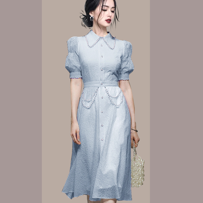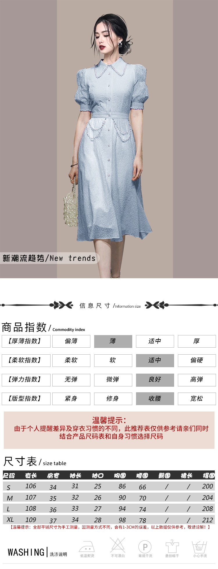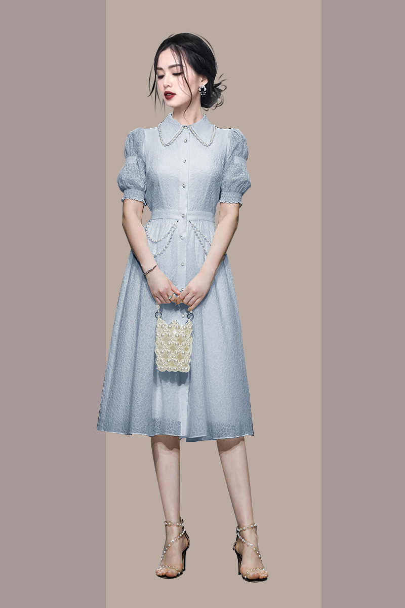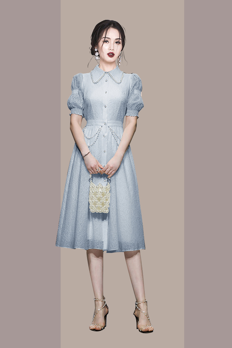 Chiếc đầm dáng dài qua gối mang phong cách nhẹ nhàng, thanh lịch. Điểm nhấn là phần tay bồng nhẹ ở cổ tay và những hạt ngọc tr nhỏ xinh tinh tế được đính trên vải. Thiết kế có hàng cúc đơn phía trước, eo được bo nhẹ ôm sát cơ thể một cách dịu dàng, giúp tôn lên những đường nét của người mặc. Sản phẩm phù hợp cho những dịp đi làm hoặc dạo phố. | Tên sản phẩm: Váy Đầm Liền Thân Nữ Hàng Mùa Hè - Thời Trang Nữ | Mã sản phẩm: A9953 - Giá: 1.280.000đ | Mã nhà sản xuất: ZHOUT-G04Hình ảnh sản phẩm