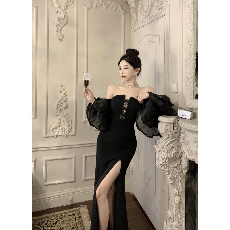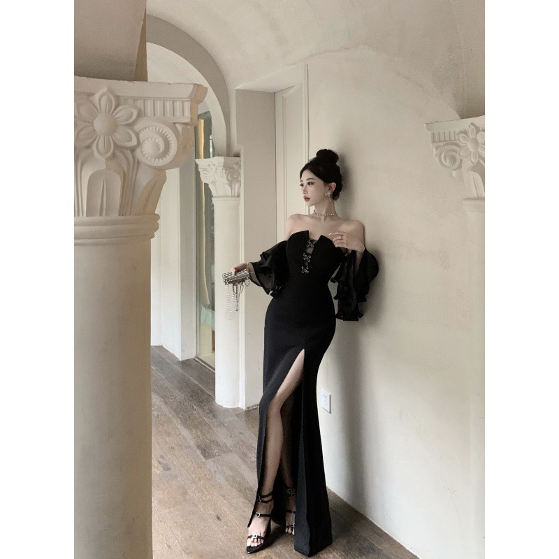 Đầm thiết kế dáng ôm cơ thể, phần cổ áo may kiểu đổ v tạo nét gợi cảm nhẹ nhàng. Tay áo phồng nhẹ ở phần bắp tay rồi xòe ra như loa kết hợp cùng đường xẻ tà duyên dáng. Chất vải mềm mại giúp bạn dễ dàng di chuyển mà vẫn giữ phom dáng. Sản phẩm phù hợp mặc trong các buổi tiệc hoặc sự kiện, dễ dàng phối cùng giày cao gót và túi xách cầm tay. | Tên sản phẩm: Váy Đầm Liền Thân Nữ Hàng Mùa Hè - Thời Trang Nữ | Mã sản phẩm: A9970 - Giá: 840.000đ | Mã nhà sản xuất: ZHOUT-G03Hình ảnh sản phẩm