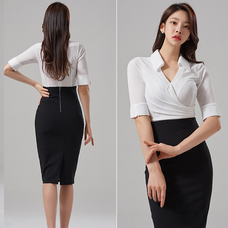 Đầm công sở dáng ôm, thiết kế hai mảnh tạo điểm nhấn nổi bật. Phần cổ chữ V và tay dài vừa phải giúp tôn dáng người mặc. Đ thắt nơ eo kết hợp cùng tông màu trắng đen phối hợp hài hòa, tạo vẻ thanh lịch. Sản phẩm phù hợp mặc đi làm hoặc dự tiệc nhẹ. Giặt nhẹ nhàng với nước lạnh và phơi trong bóng râm để giữ form vải lâu bền. | Tên sản phẩm: Váy Đầm Liền Thân Nữ Cả Bộ 2 Món Cổ Chữ V Hàng Mùa Hè Đồ Công Sở - Thời Trang Nữ | Mã sản phẩm: A9975 - Giá: 900.000đ | Mã nhà sản xuất: ZHOUT-G03Hình ảnh sản phẩm
