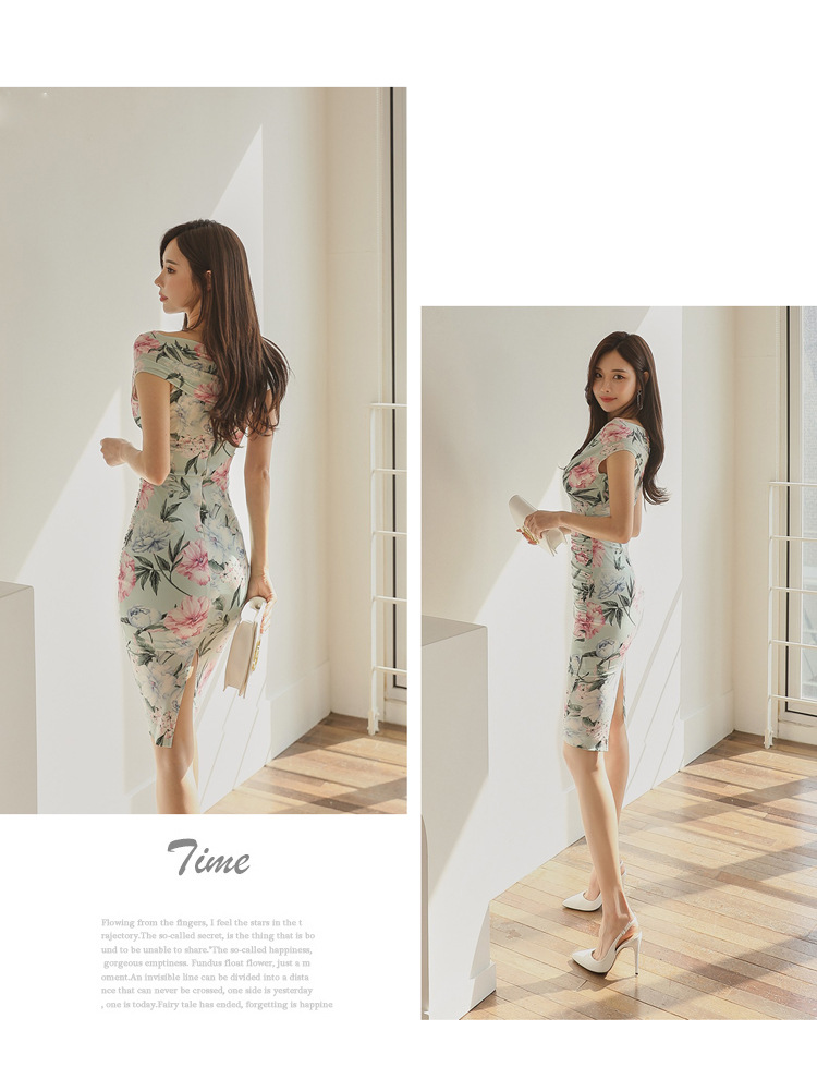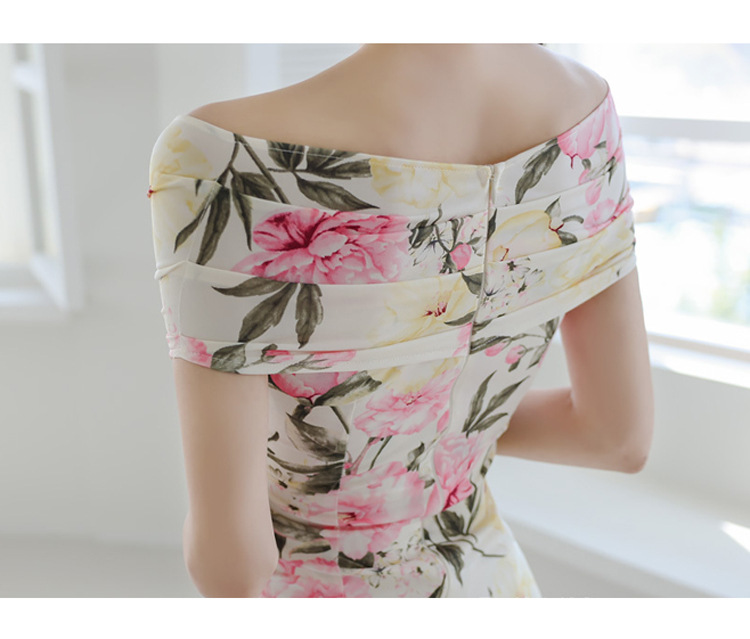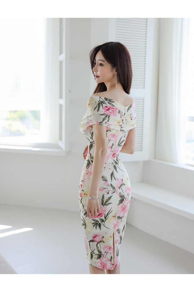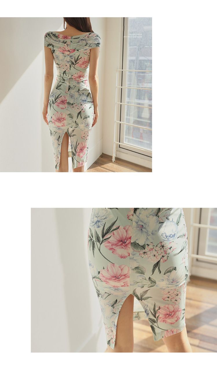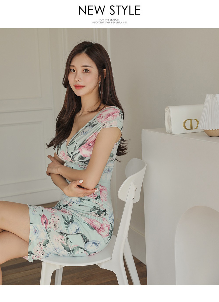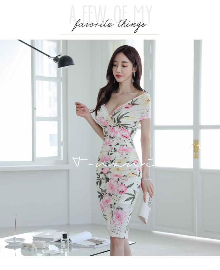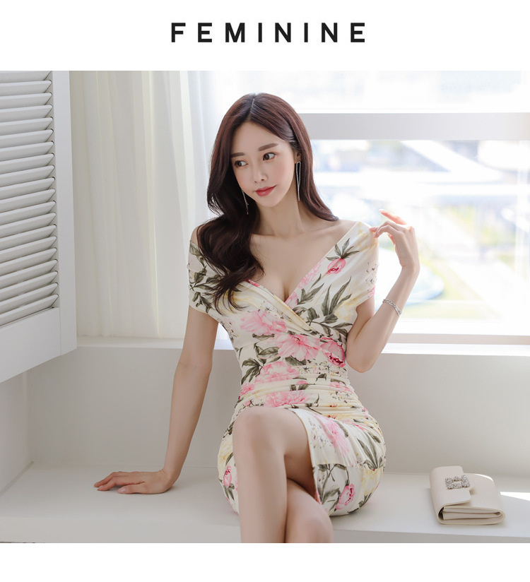 Chiếc đầm này có điểm nhấn ở phần cổ khoét hình chữ V tạo dáng thanh lịch. Thân trên được thiết kế có nếp gấp xếp li co giãn, ôm nhẹ vào vòng eo. Từ eo trở xuống, đầm ôm vừa vặn qua phần hông và xòe nhẹ ở gấu. Chất vải in họa tiết mềm mại, mang đến vẻ ngoại hình nữ tính và duyên dáng. Sản phẩm phù hợp để mặc đi làm, dự tiệc hoặc tạo phong cách thời trang hàng ngày. | Tên sản phẩm: Váy Đầm Liền Thân Nữ Trễ Ngực Họa Tiết Hoa Cổ Chữ V Hàng Mùa Hè - Thời Trang Nữ | Mã sản phẩm: A9990 - Giá: 650.000đ | Mã nhà sản xuất: ZHOUT-G02Hình ảnh sản phẩm