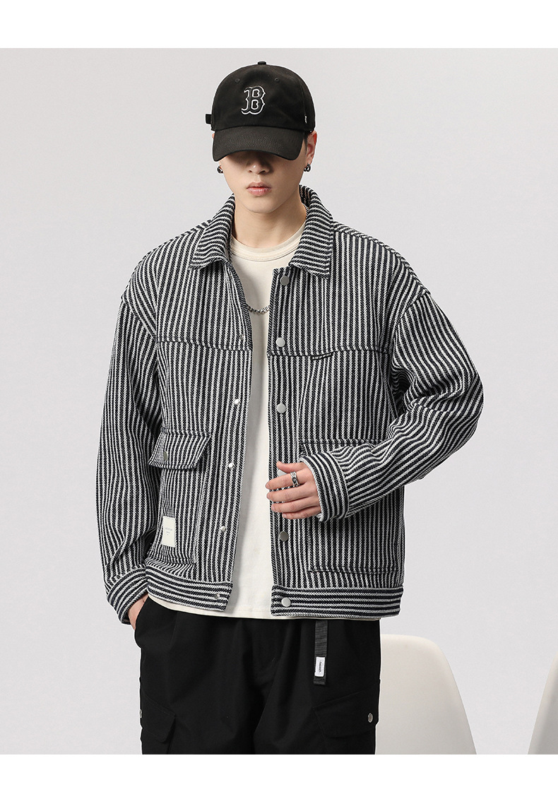 Áo khoác nam thiết kế dáng rộng rãi, mặc thoải mái cho những ngày thu đông. Chất liệu bền chắc, dày dặn giúp giữ ấm tốt. Kiểu dáng kết hợp đường kẻ sọc tạo nét phóng khoáng, trẻ trung. Sản phẩm phù hợp mặc đi làm, dạo phố hay các hoạt động ngoài trời. Có thể kết hợp cùng quần jeans và giày thể thao để hoàn thiện bộ trang phục. | Tên sản phẩm: Áo Khoác Nam Chất Liệu Jean Bò Big Size Ngoại Cỡ Dày Ấm Hàng Mùa Xuân Thu Đông - Thời Trang Nam | Mã sản phẩm: B0027 - Giá: 1.280.000đ | Mã nhà sản xuất: GURYNG-G04Hình ảnh sản phẩm