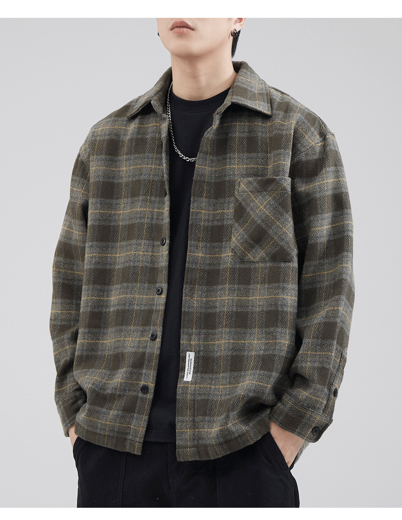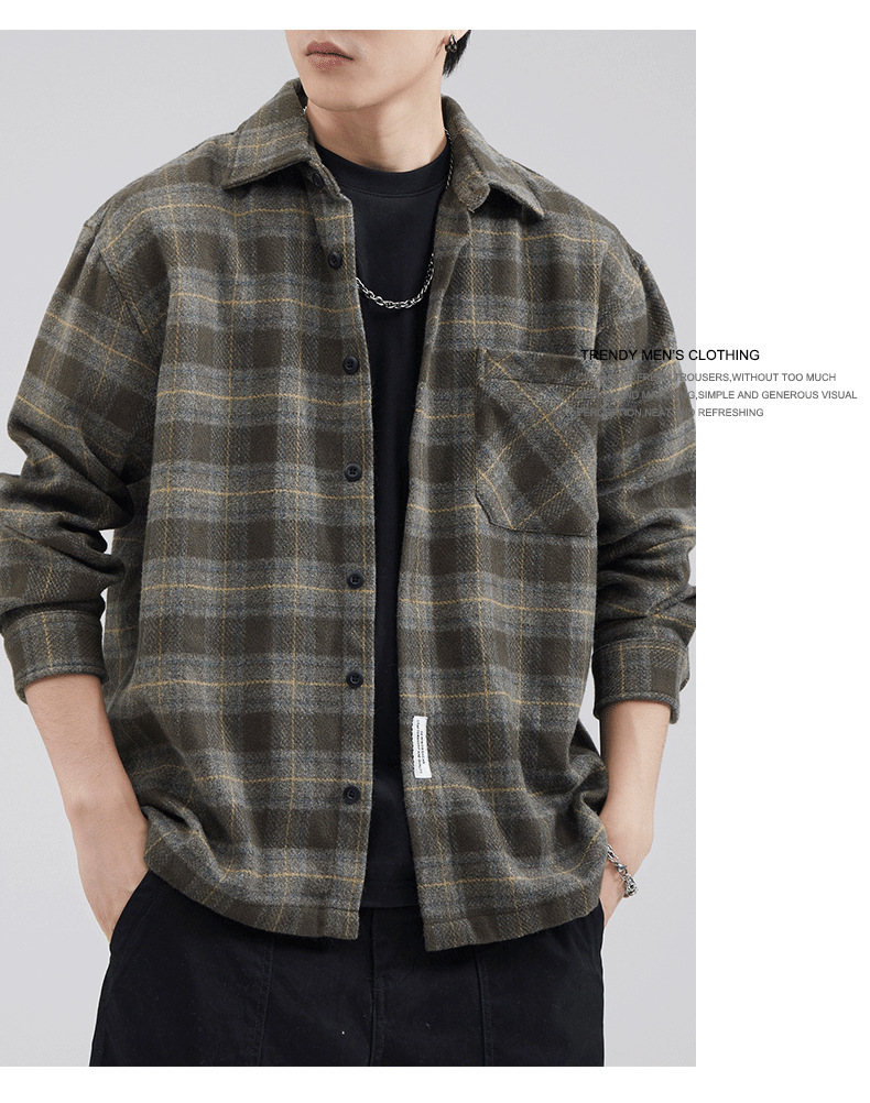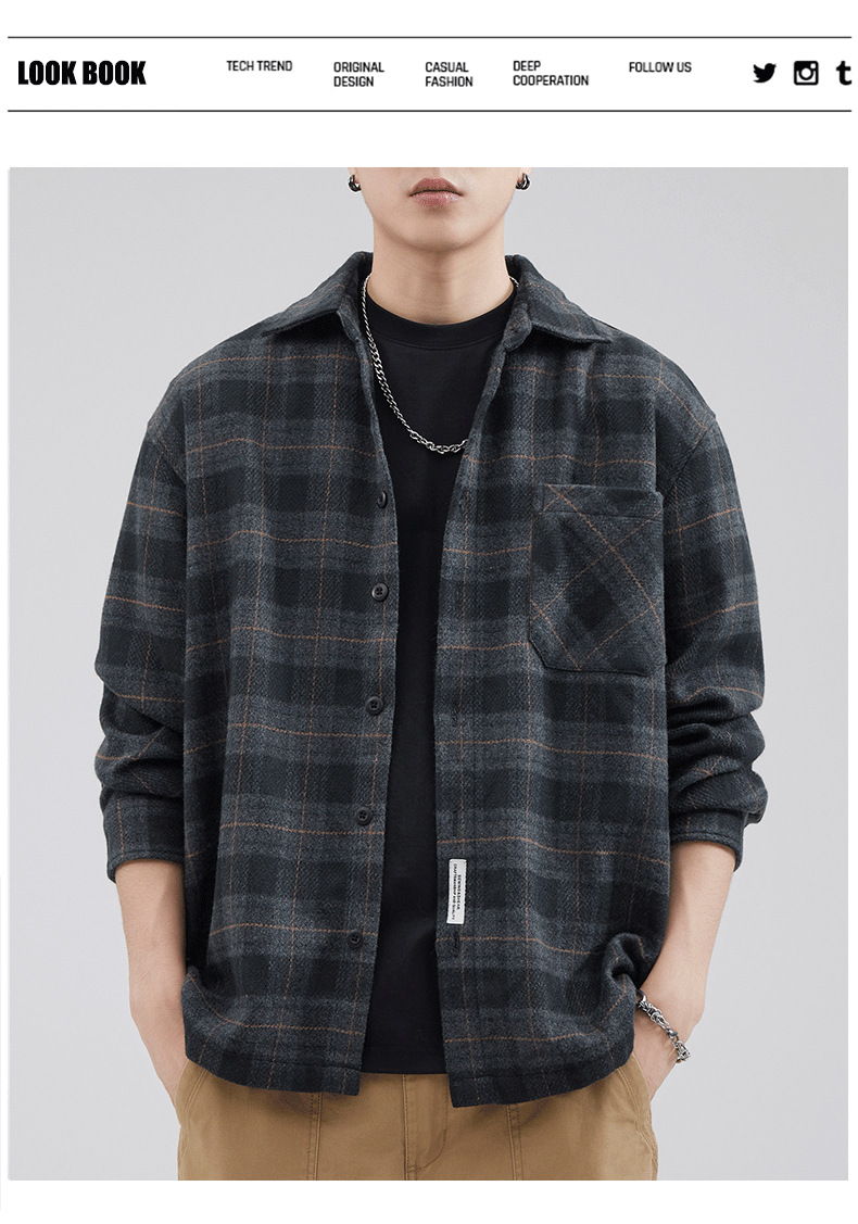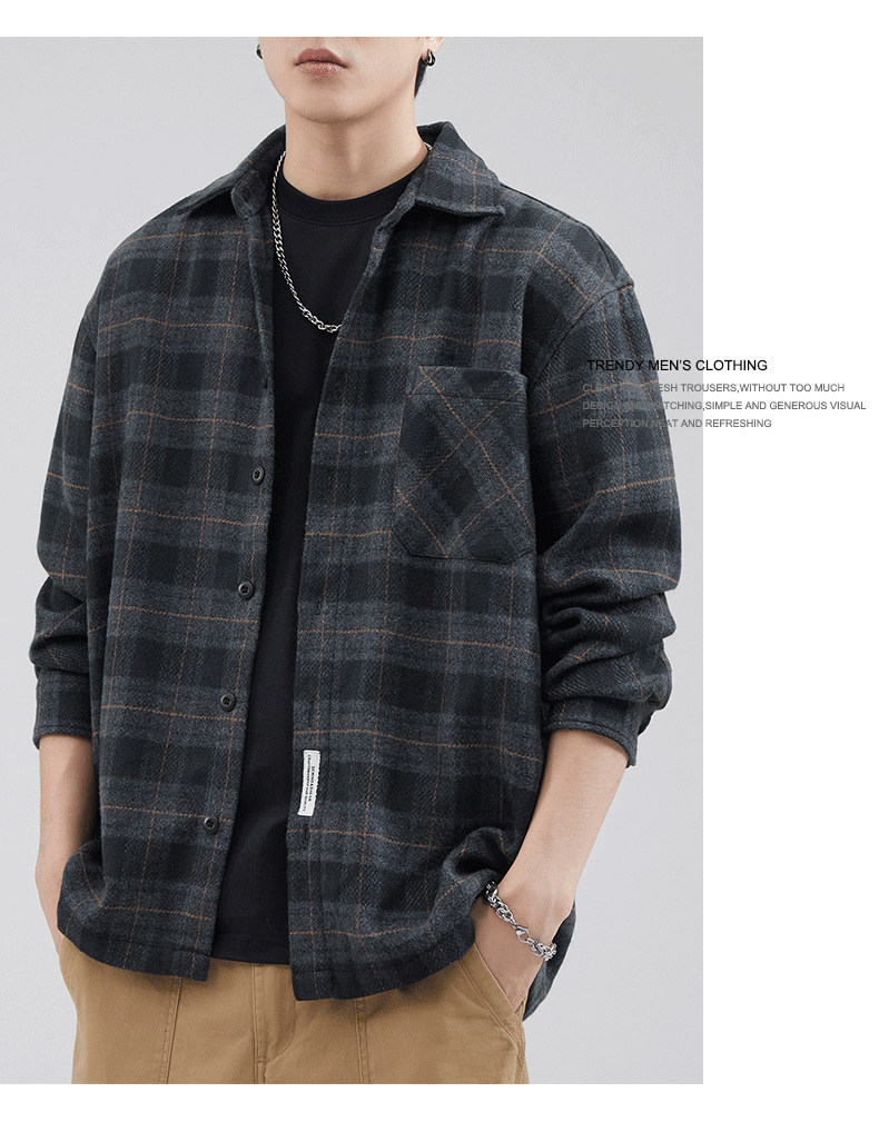 Áo sơ mi dáng rộng dành cho nam, kiểu dáng thoải mái phù hợp cho mùa thu. Sản phẩm có họa tiết kẻ ô cổ điển, chất vải dày dặn được xử lý bề mặt tạo cảm giác mềm mại và ấm áp. Bạn có thể mặc như một chiếc áo thun thông thường hoặc phối lớp bên ngoài như áo khoác nhẹ. Thiết kế này dễ dàng phối hợp với nhiều loại trang phục khác nhau trong đời sống hằng ngày. | Tên sản phẩm: Áo Khoác Nam Dài Tay Kẻ Caro Kẻ Caro Hàng Mùa Xuân Thu Đông - Thời Trang Nam | Mã sản phẩm: B0033 - Giá: 1.000.000đ | Mã nhà sản xuất: GURYNG-G03Hình ảnh sản phẩm