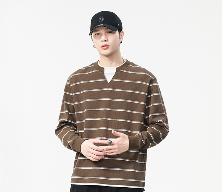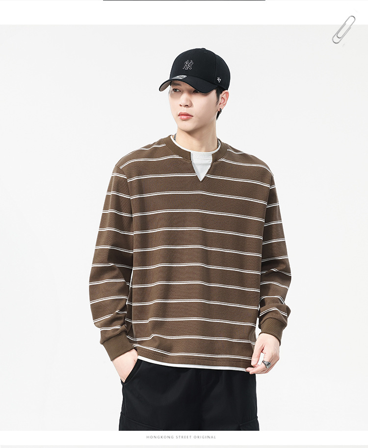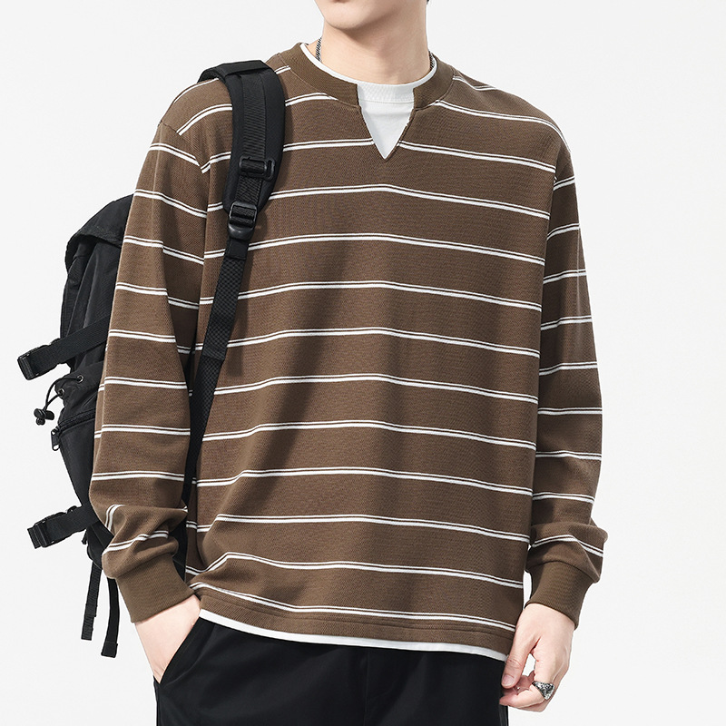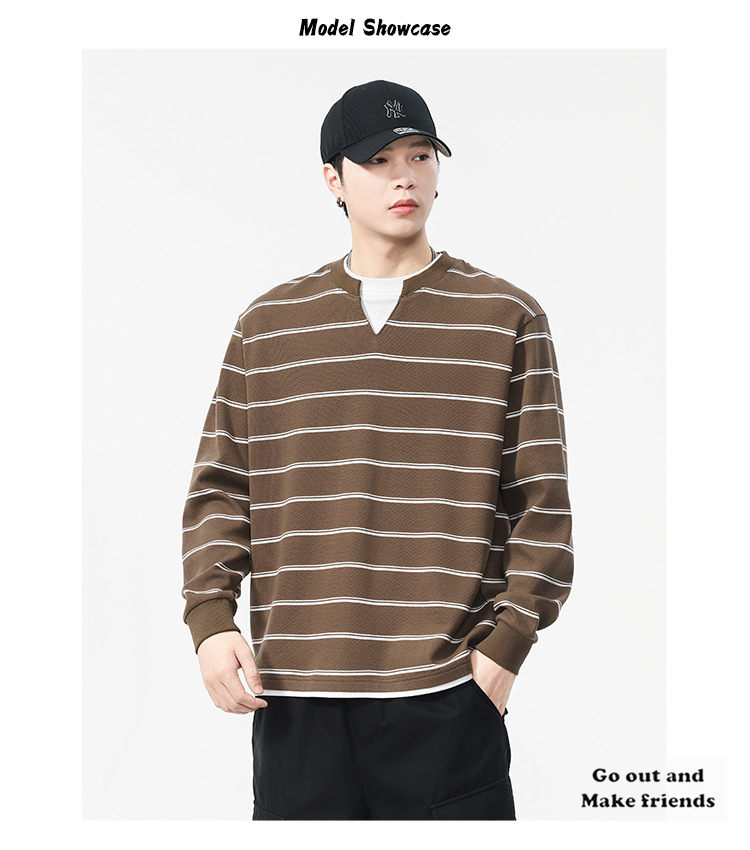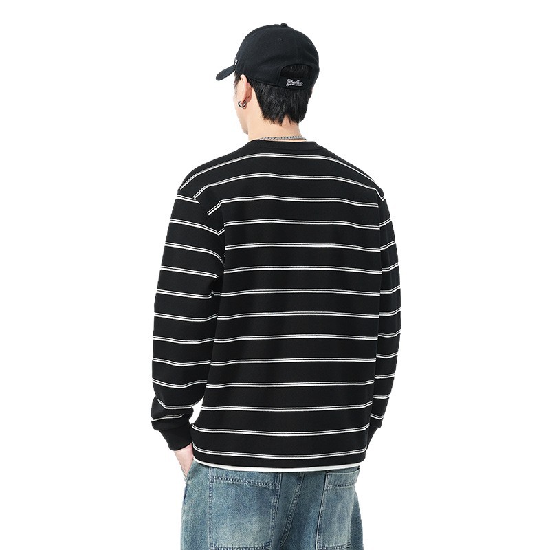 Áo thun dáng rộng phong cách cổ điển Mỹ, thiết kế hai lớp giả tạo độc đáo với họa tiết sọc. Chất liệu thun mềm mại, thoáng khí, phù hợp mặc vào mùa thu và những ngày se lạnh. Cổ tròn cơ bản dễ dàng phối đồ, có thể mặc bên ngoài hoặc làm áo bên trong. Sản phẩm mang vẻ đẹp năng động, trẻ trung dành cho các bạn nam. | Tên sản phẩm: Áo Lót Nam Cả Bộ 2 Món Hàng Mùa Xuân Thu Đông Phục Cổ Cổ Điển - Thời Trang Nam | Mã sản phẩm: B0040 - Giá: 820.000đ | Mã nhà sản xuất: GURYNG-G03Hình ảnh sản phẩm