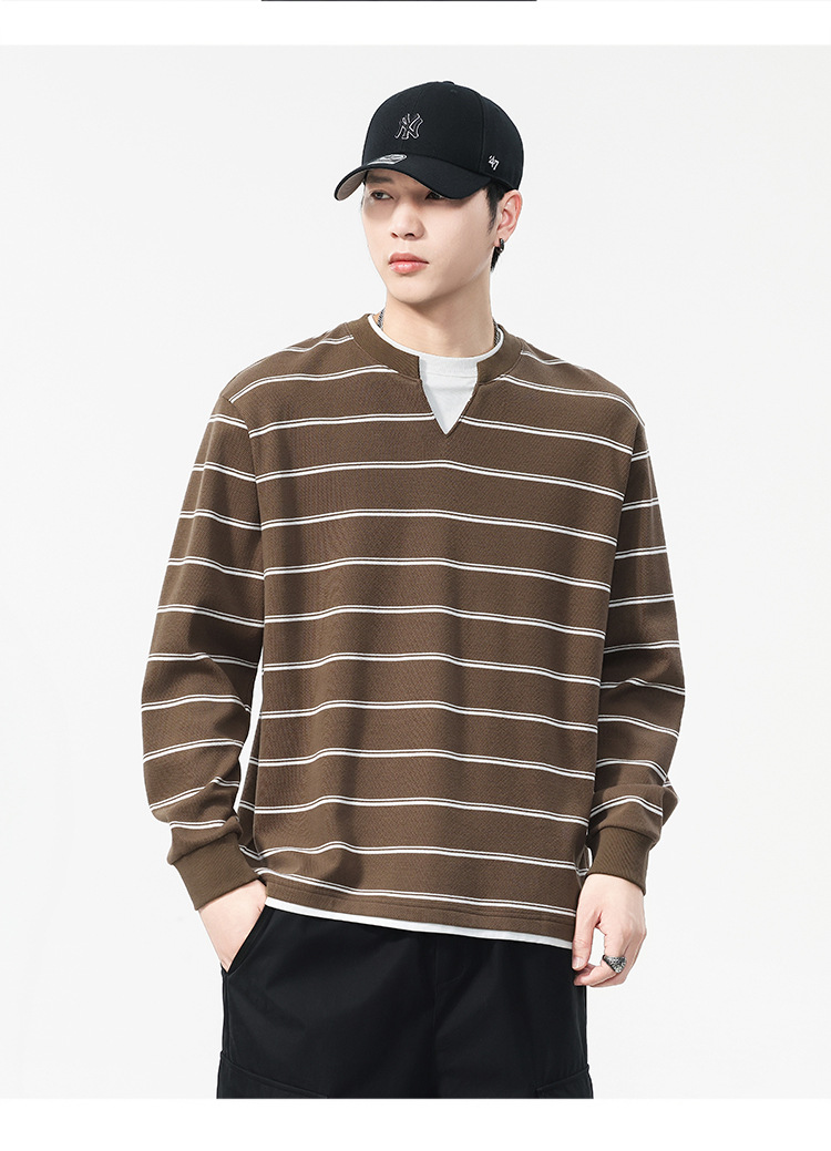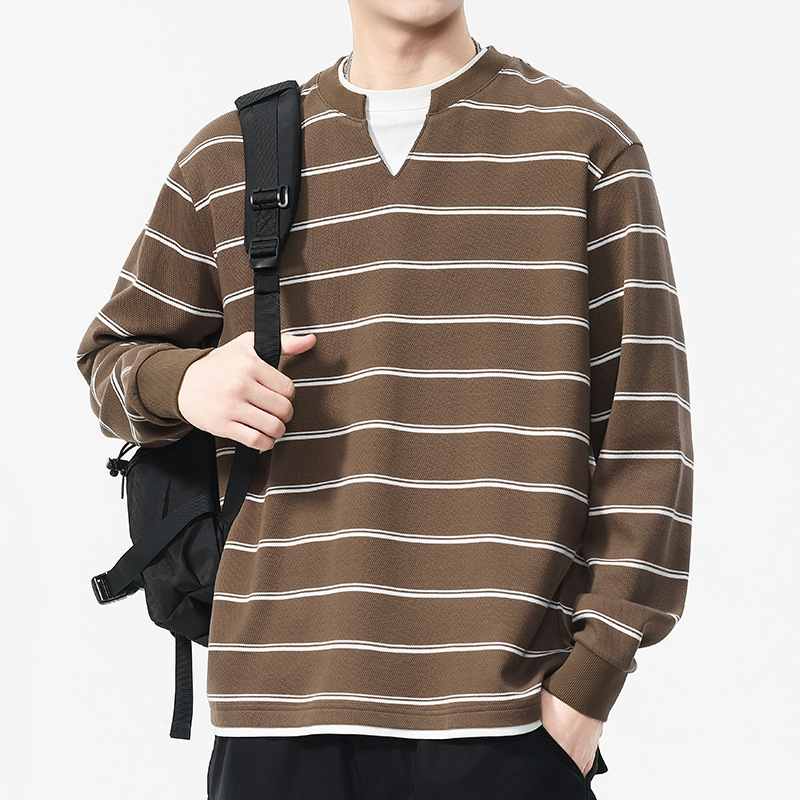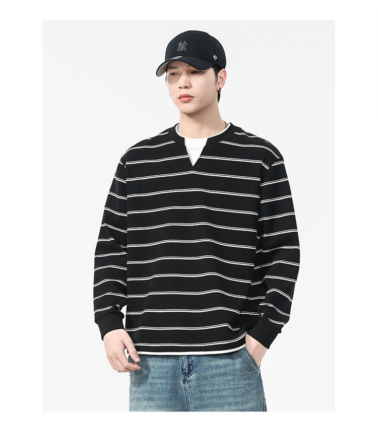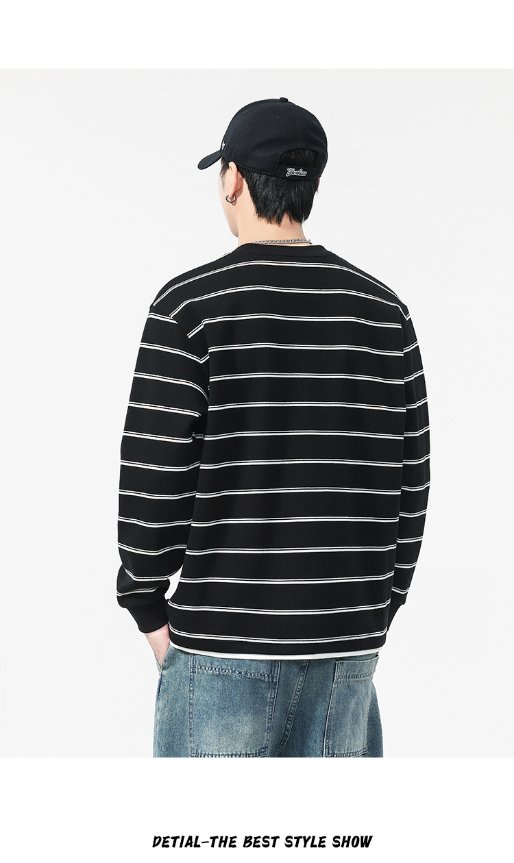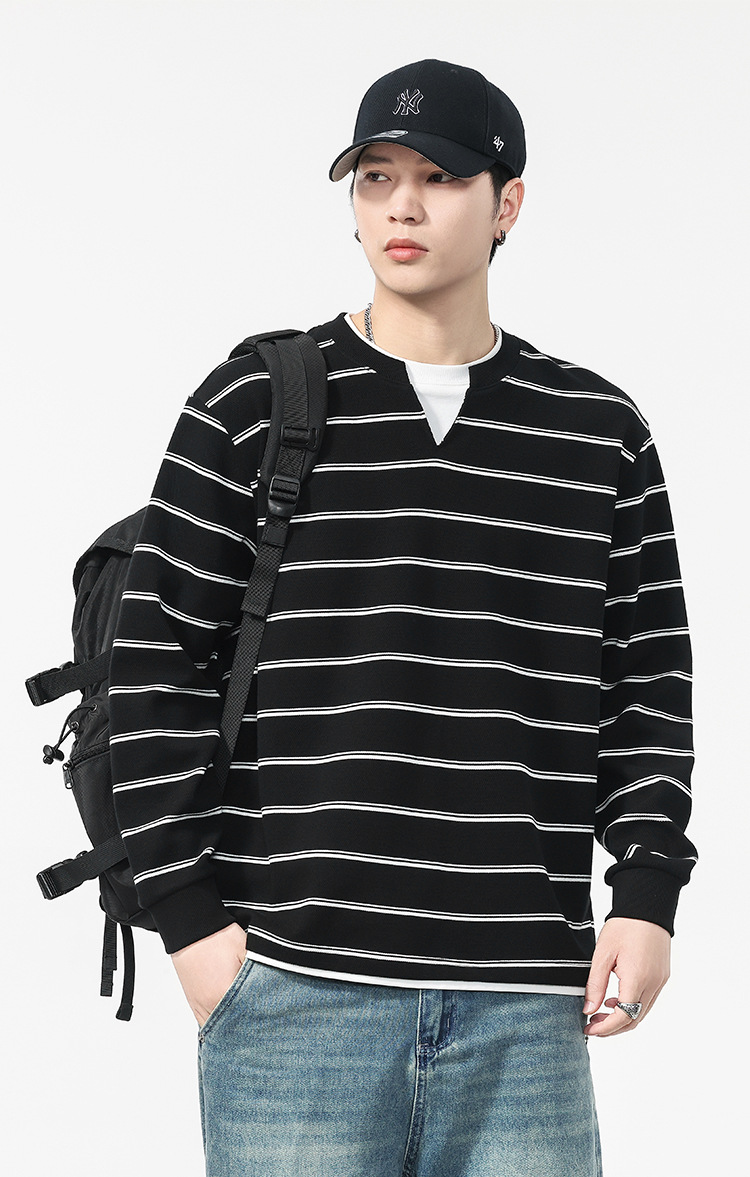 Áo thun dáng rộng phong cách cổ điển Mỹ, thiết kế hai lớp giả tạo độc đáo với họa tiết sọc. Chất liệu thun mềm mại, thoáng khí, phù hợp mặc vào mùa thu và những ngày se lạnh. Cổ tròn cơ bản dễ dàng phối đồ, có thể mặc bên ngoài hoặc làm áo bên trong. Sản phẩm mang vẻ đẹp năng động, trẻ trung dành cho các bạn nam. | Tên sản phẩm: Áo Lót Nam Cả Bộ 2 Món Hàng Mùa Xuân Thu Đông Phục Cổ Cổ Điển - Thời Trang Nam | Mã sản phẩm: B0040 - Giá: 820.000đ | Mã nhà sản xuất: GURYNG-G03Hình ảnh sản phẩm