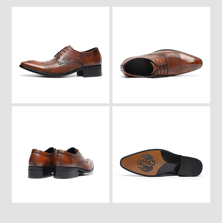 Giày nam được làm từ lớp da thật bên ngoài, bề mặt có án sáng nhẹ tạo vẻ lịch sự. Mẫu mã kết hợp họa tiết da cá sấu in nổi mang nét phóng khoáng, phù hợp cho cả những dịp cần sự chỉn chu lẫn lúc thư giãn. Đế giày được thiết kế có phần nâng nhẹ giúp tăng chiều cao. Bạn có thể dùng khăn mềm để lau sạch bụi và giữ giày luôn sáng bóng sau khi sử dụng. | Tên sản phẩm: Giày Da Nam Chất Liệu Da Bò Vân Da Cá Sấu Họa Tiết Hoa - Giày Dép Nam | Mã sản phẩm: B0052 - Giá: 2.800.000đ | Mã nhà sản xuất: SHDN-G06Hình ảnh sản phẩm