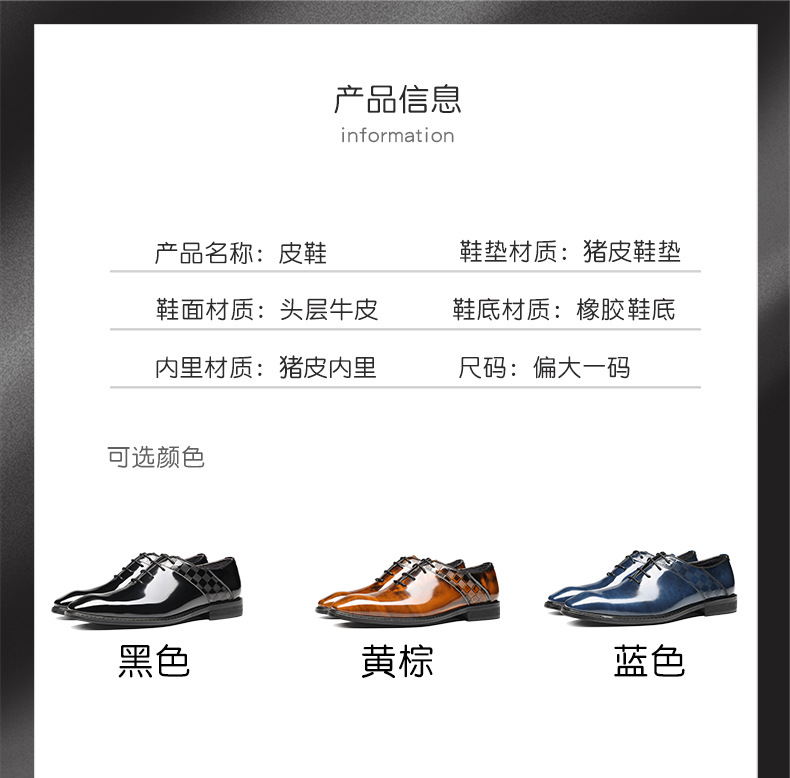 Đôi giày da nam này được làm từ chất liệu da bò nguyên tấm, mang đến cảm giác êm ái và bền lâu. Kiểu dáng thiết kế theo phong cách châu Âu hiện đại, phù hợp cho các dịp làm việc, gặp gỡ hoặc trong những sự kiện quan trọng. Sản phẩm có mũi giày vuông vức tạo nên vẻ lịch sự, kết hợp cùng form giày ôm chân vừa vặn. Bạn có thể dùng cùng bộ đồ công sở hoặc trang phục tây thông thường để hoàn thiện phong cách. | Tên sản phẩm: Giày Da Nam Chất Liệu Da Bò Dùng Trong Lễ Cưới - Giày Dép Nam | Mã sản phẩm: B0059 - Giá: 2.710.000đ | Mã nhà sản xuất: SHDN-G06Hình ảnh sản phẩm