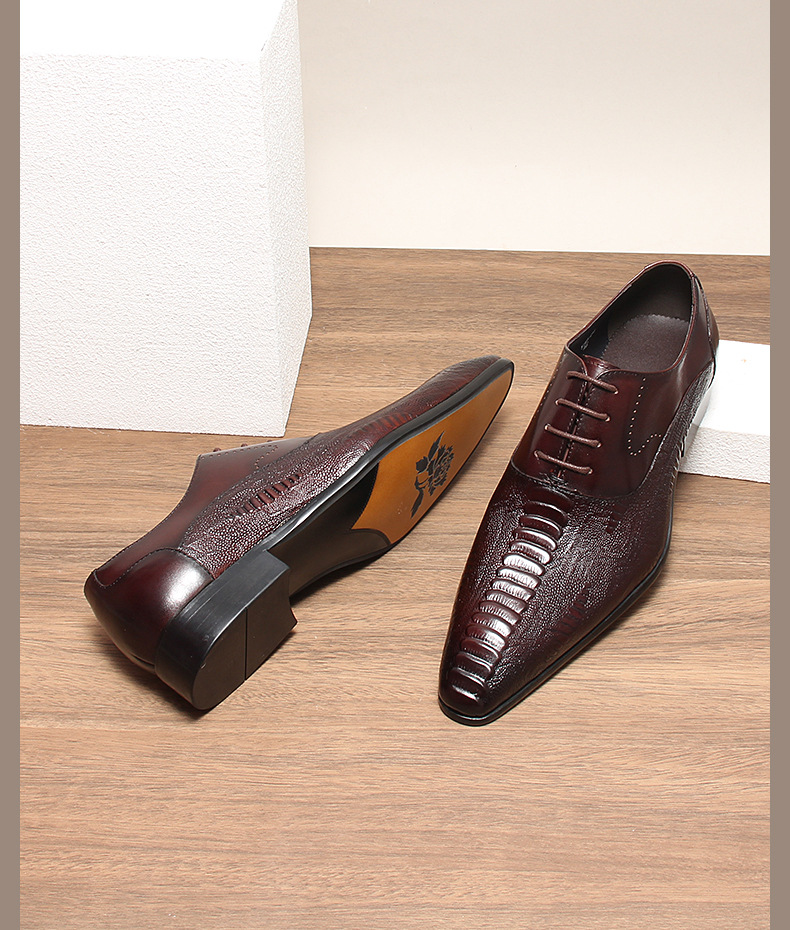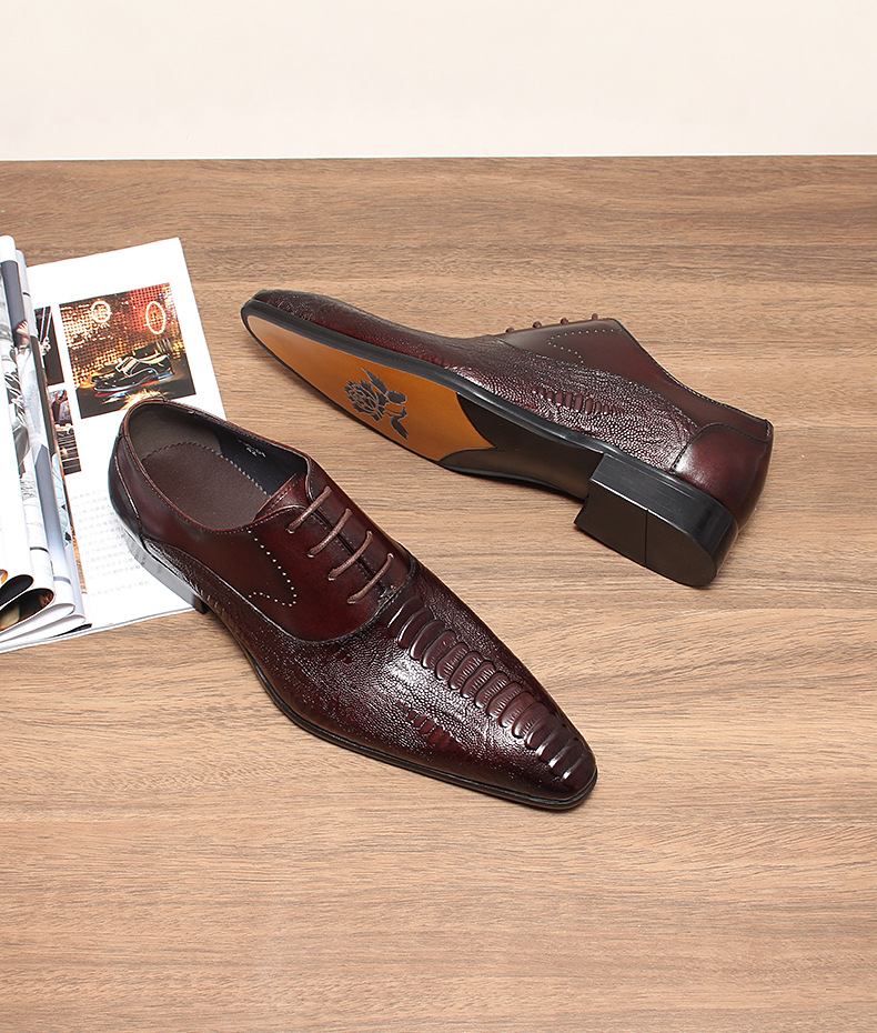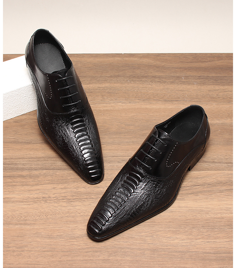 Giày da dành cho nam, thiết kế kiểu dáng công sự lịch sự với phần mũi nhọn tạo điểm nhấn. Mặt giày được in họa tiết da cá sấu mang đến vẻ ngoại hình ấn tượng. Sản phẩm được làm từ chất liệu da bò thật, bền đẹp theo thời gian. Kiểu dáng phối đồ dễ dàng, phù hợp cho cả những dịp làm việc và sinh hoạt thường ngày. Sử dụng kết hợp cùng trang phục như quần âu hoặc quần kaki để có diện mạo chỉn chu. | Tên sản phẩm: Giày Da Nam Chất Liệu Da Bò Vân Da Cá Sấu Mũi Nhọn - Giày Dép Nam | Mã sản phẩm: B0086 - Giá: 2.430.000đ | Mã nhà sản xuất: SHDN-G05Hình ảnh sản phẩm
