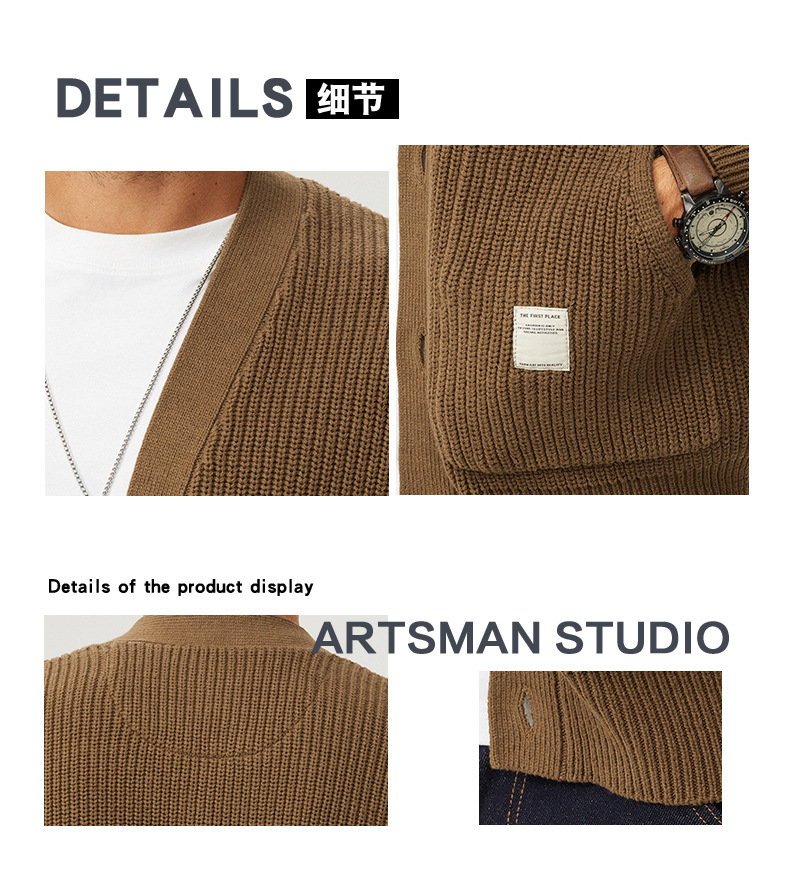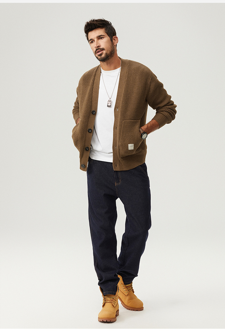 Áo len khoác kiểu Mỹ, cổ chữ V, dành cho nam. Sản phẩm có chất dày dặn, form rộng thoải mái, phù hợp cho thời tiết thu đông. Kiểu dáng đơn giản, dễ mặc, có thể mặc như một lớp áo bên ngoài hoặc áo khoác nhẹ. Bạn có thể kết hợp với áo thun bên trong và quần jeans để tạo phong cách thư giãn hàng ngày. | Tên sản phẩm: Áo Len Nam Big Size Ngoại Cỡ Dáng Dộng Cổ Chữ V Hàng Mùa Xuân Thu Đông - Thời Trang Nam | Mã sản phẩm: B0107 - Giá: 1.130.000đ | Mã nhà sản xuất: GURYNG-G04Hình ảnh sản phẩm