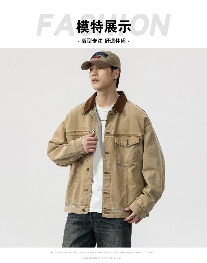 Áo khoác nam kiểu dáng rộng, lấy cảm hứng từ phong cách lao động cổ điển. Chất liệu vải dày dặn, cổ áo bẻ cùng các túi đắp nổi tiền vị, vừa có tính thực tiễn lại tạo điểm nhấn. Kiểu áo này dễ dàng kết hợp cùng quần dài hay quần short trong tiết trời thu mát mẻ. Bạn có thể mặc nguyên chiếc hoặc khoác ngoài áo thun, áo ba lỗ để tạo nên vẻ ngoài năng động, thoải mái. | Tên sản phẩm: Áo Khoác Nam Chất Liệu Jean Bò Big Size Ngoại Cỡ Kín Cổ Hàng Mùa Xuân Thu Đông - Thời Trang Nam | Mã sản phẩm: B0112 - Giá: 1.160.000đ | Mã nhà sản xuất: GURYNG-G04Hình ảnh sản phẩm