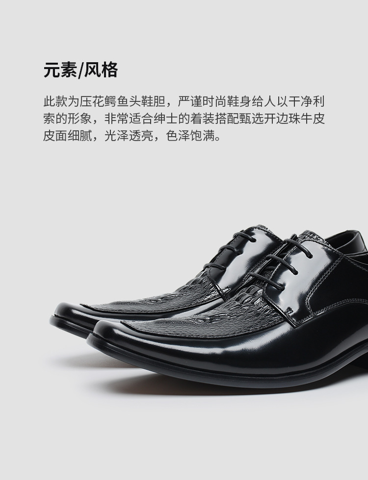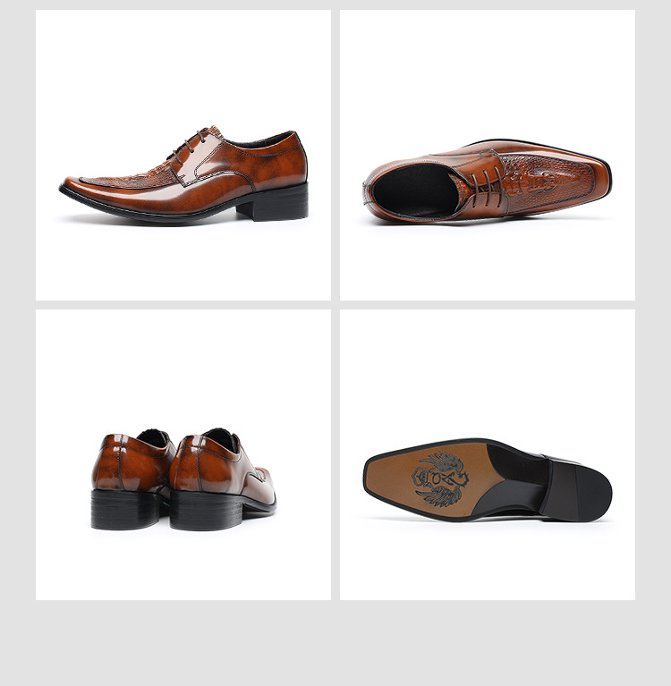 Giày da bò mềm mại, phần mũi giày thiết kế kiểu dáng thanh lịch phù hợp cho các dịp làm việc. Bề mặt da được tạo hình vân cá sấu tinh tế, tăng thêm nét đẹp mạnh mẽ mà vẫn rất chỉn chu. Đế giày được thiết kế tạo dáng nâng nhẹ giúp người dùng có tư thế đứng tự tin hơn. Sản phẩm dễ dàng phối cùng quần tây, áo sơ mi trong môi trường công sở hoặc những buổi gặp mặt. | Tên sản phẩm: Giày Da Nam Chất Liệu Da Bò Vân Da Cá Sấu Họa Tiết Hoa - Giày Dép Nam | Mã sản phẩm: B0115 - Giá: 2.800.000đ | Mã nhà sản xuất: SHDN-G06Hình ảnh sản phẩm