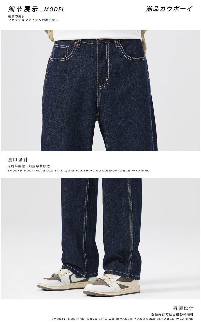 Chiếc quần dài này có kiểu dáng ống rộng và thẳng, tạo cảm giác thoải mái, dễ chịu khi mặc. Chất liệu denim dày dặn, màu xanh đậm rất dễ phối đồ. Sản phẩm phù hợp cho những ngày thu mát mẻ, dùng trong các dịp sinh hoạt hằng ngày. Bạn có thể kết hợp với áo thun, áo sơ mi hay áo len đều rất hợp. Giặt với nước lạnh và phơi trong bóng râm để giữ màu quần được bền lâu. | Tên sản phẩm: Quần Nam Chất Liệu Jean Bò Hàng Mùa Xuân Thu Đông - Thời Trang Nam | Mã sản phẩm: B0126 - Giá: 880.000đ | Mã nhà sản xuất: GURYNG-G03Hình ảnh sản phẩm