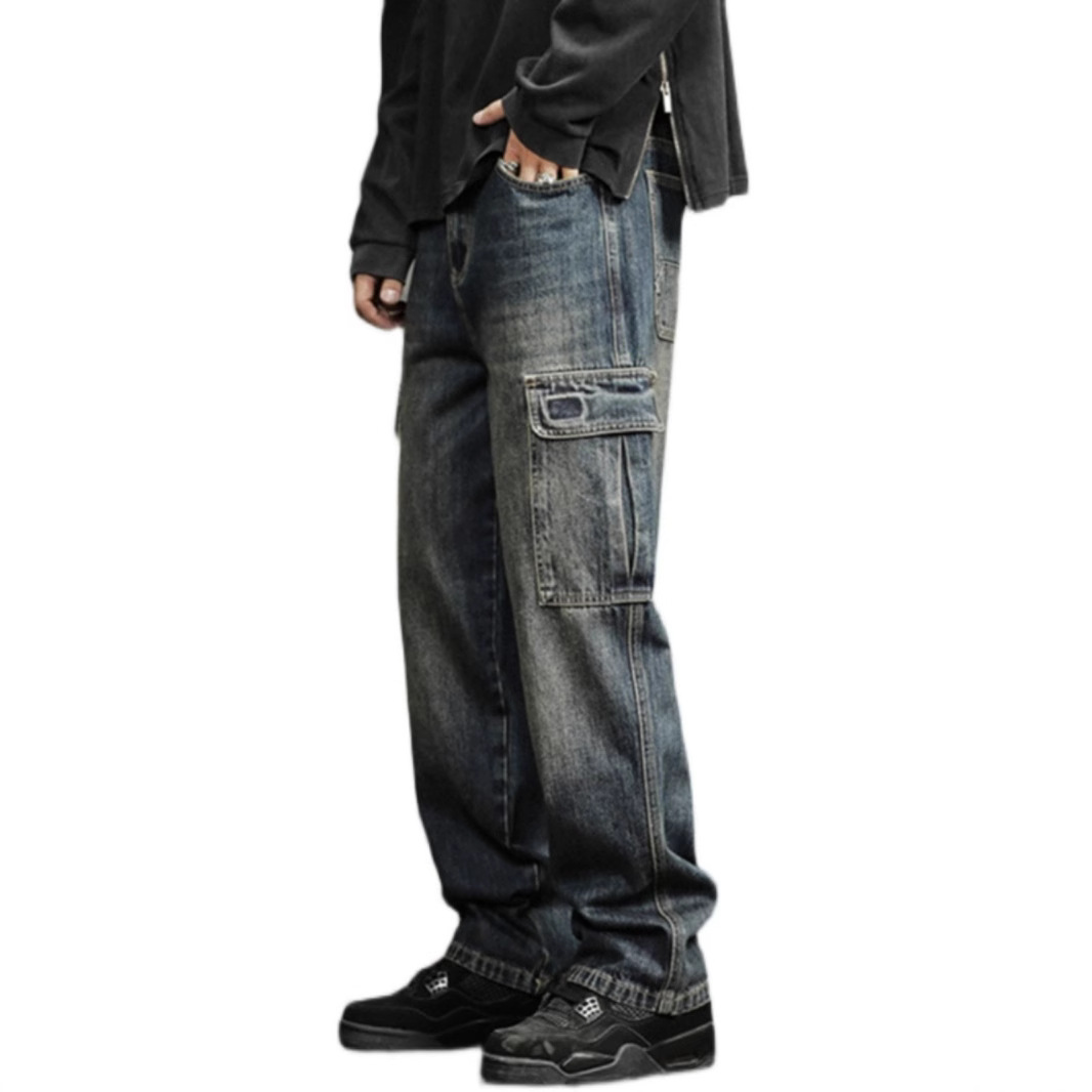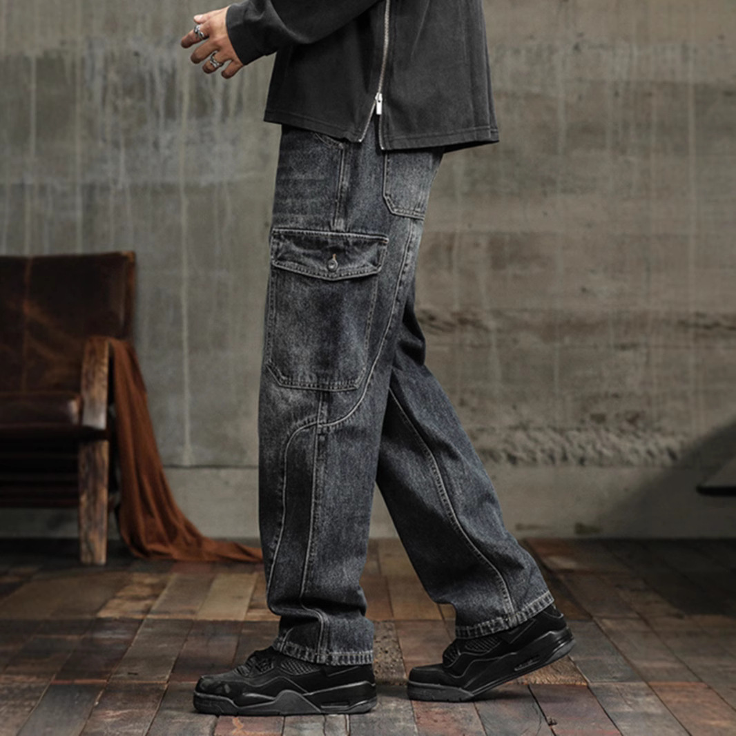 Chiếc quần dáng rộng mang phong cách xưa, lấy ý tưởng từ trang phục lao động. Kiểu dáng ống thẳng thoải mái, phù hợp cho những ngày thu đông. Chất vải dày dặn, được xử lý tạo hiệu ứng ph màu nhẹ tự nhiên. Thiết kế có nhiều túi tiện dụng, vừa mang lại vẻ cá tính vừa hữu ích trong sinh hoạt. Có thể phối hợp cùng áo thun, áo sơ mi hay áo khoác để tạo nên những phong cách khác nhau. | Tên sản phẩm: Quần Nam Chất Liệu Jean Bò Big Size Ngoại Cỡ Hàng Mùa Xuân Thu Đông Phục Cổ Cổ Điển - Thời Trang Nam | Mã sản phẩm: B0128 - Giá: 990.000đ | Mã nhà sản xuất: GURYNG-G03Hình ảnh sản phẩm