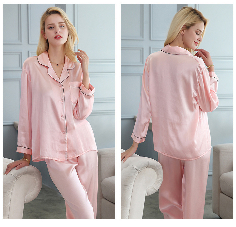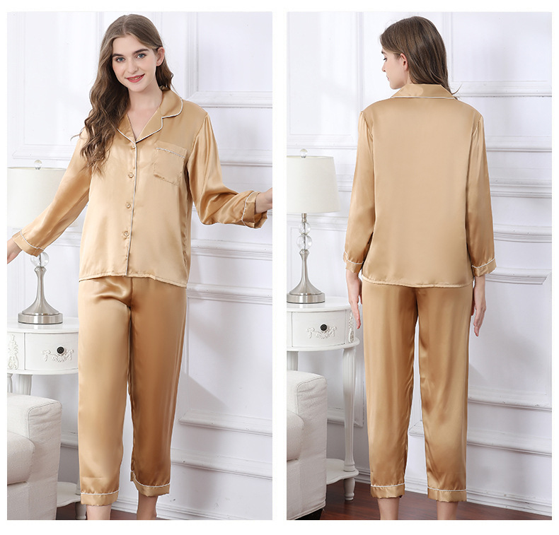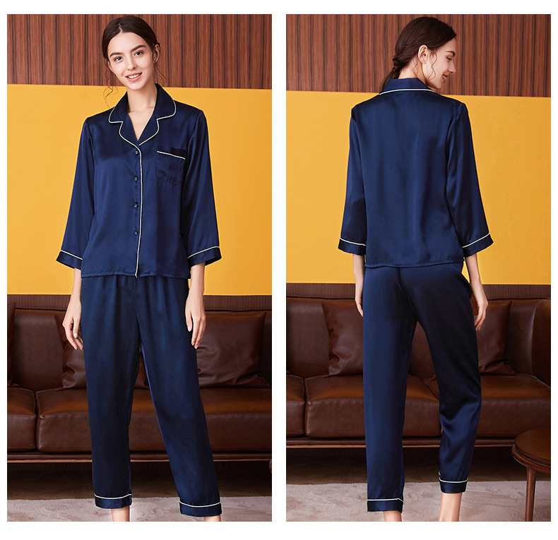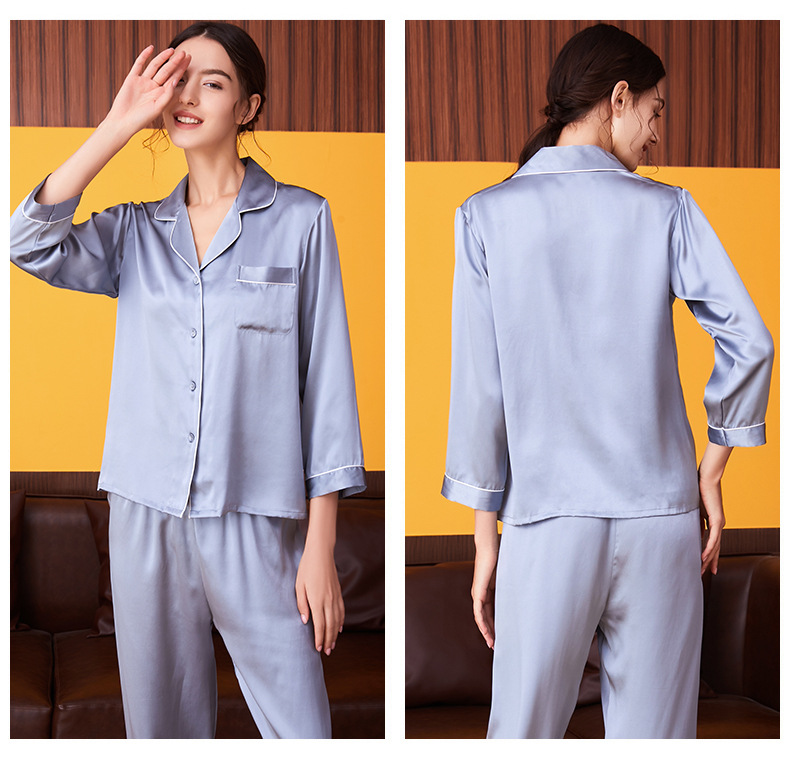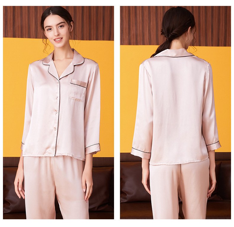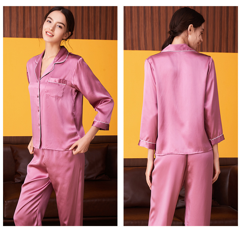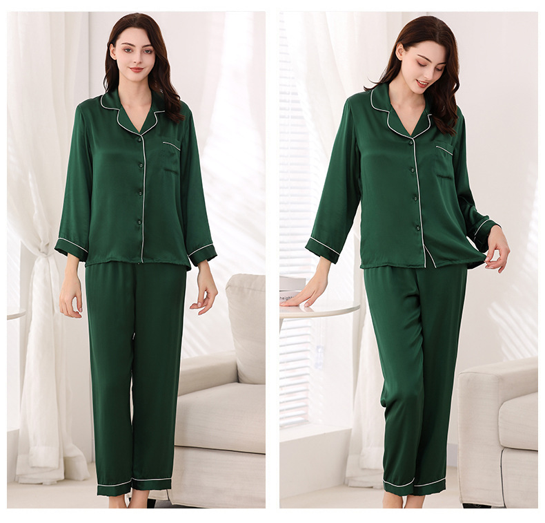 Bộ đồ mặc nhà bằng chất liệu tơ lụa tự nhiên, dành cho nữ với thiết kế dáng dài tay, phù hợp cho mùa hè và cả những ngày thu mát mẻ. Sản phẩm gồm hai món, kiểu dáng mặc nhà thoải mái, có thể mặc đi ngủ hoặc thư giãn tại gia. Chất vải mềm mại, nhẹ nhàng và rất thoáng khí, mang lại cảm giác dễ chịu cho người mặc. Giặt tay với nước lạnh và phơi ở nơi râm mát để giữ chất vải được bền đẹp. | Tên sản phẩm: Đồ Ngủ Nữ Chất Liệu Lụa Tơ Tằm Dài Tay Cả Bộ 2 Món Đồ Đôi Hàng Mùa Hè Đồ Ngủ Hoặc Mặc Nhà - Thời Trang Nữ | Mã sản phẩm: B0133 - Giá: 3.010.000đ | Mã nhà sản xuất: TODN-G06Hình ảnh sản phẩm