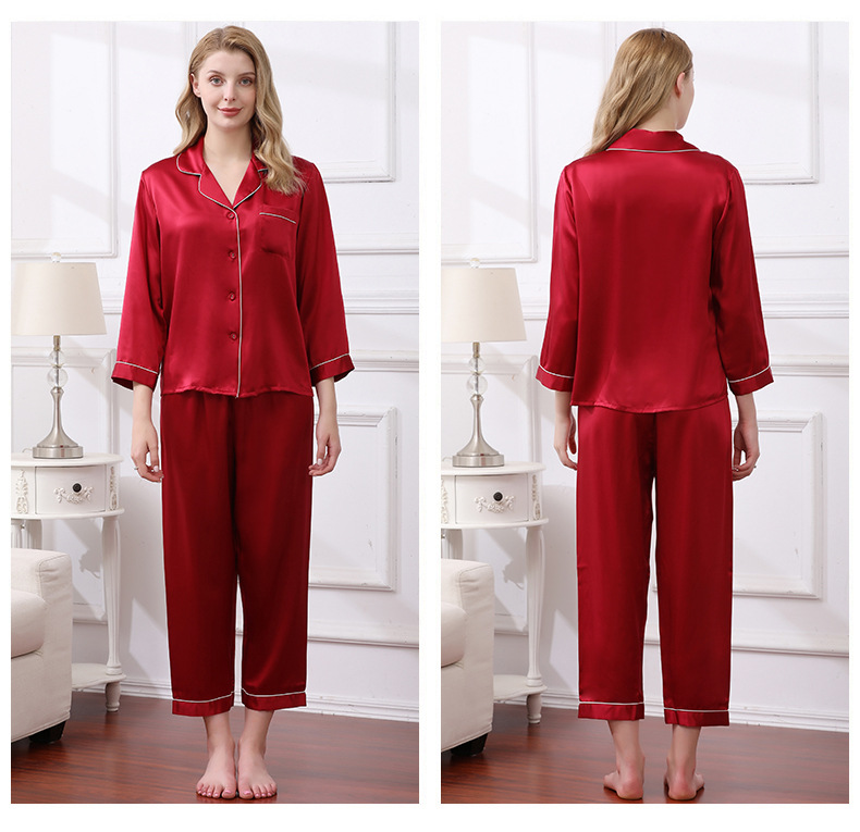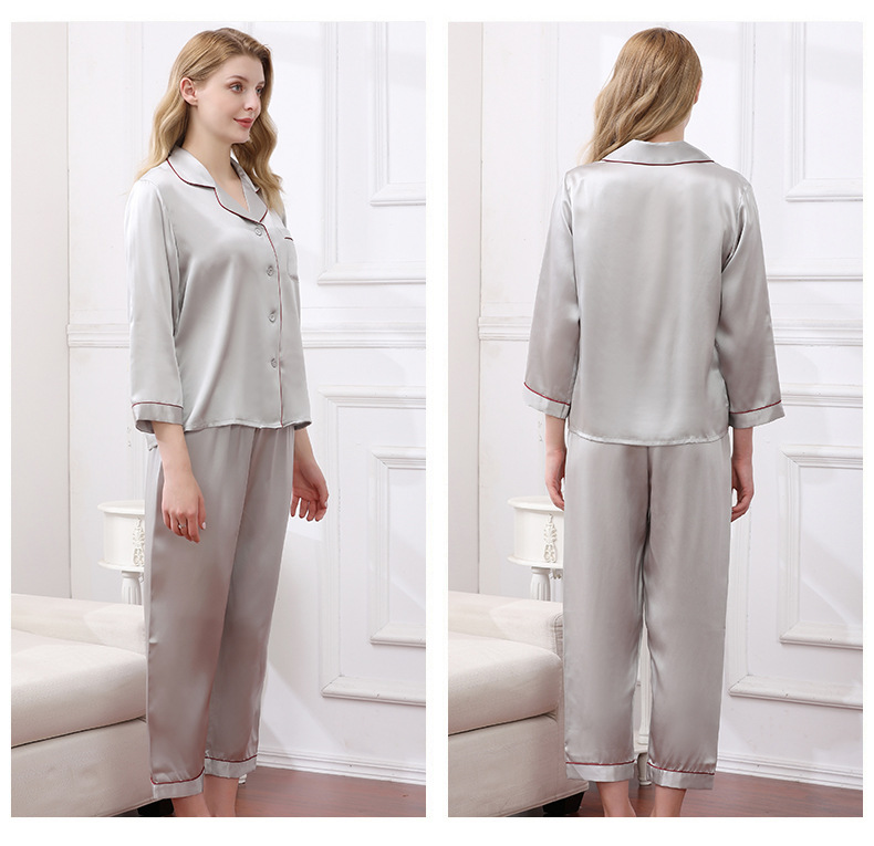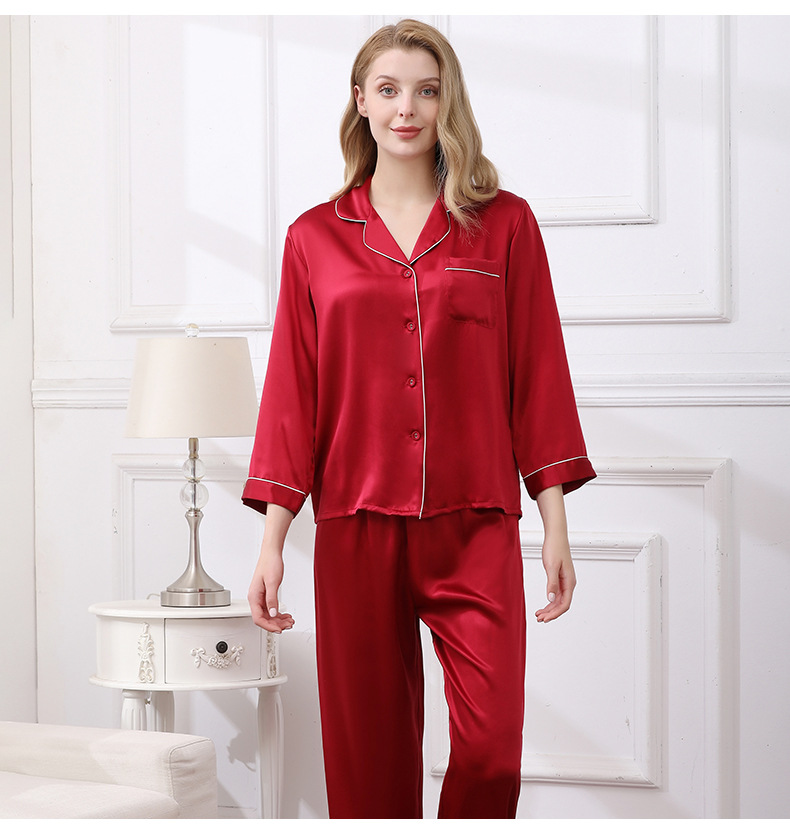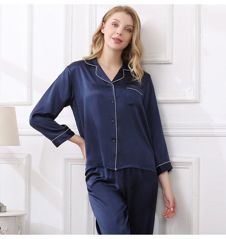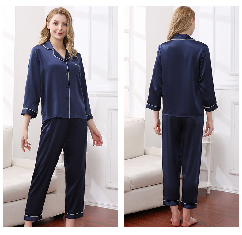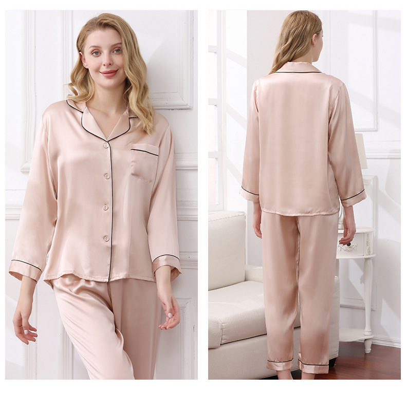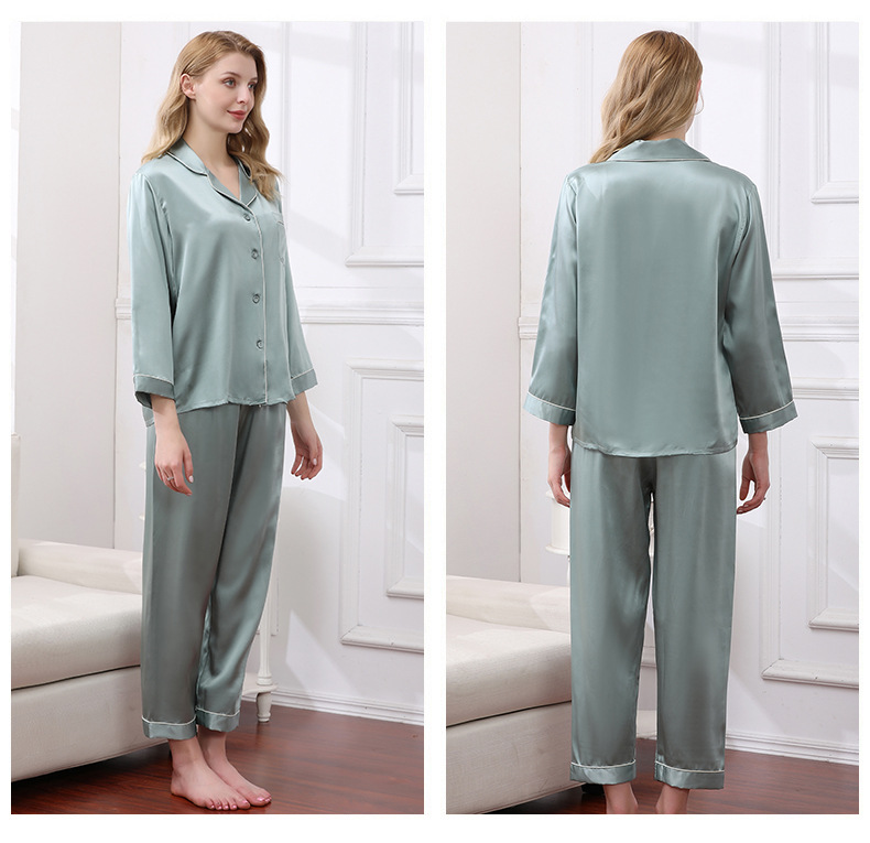 Bộ đồ ngủ dành cho nữ, được may từ chất liệu tơ lụa mềm mại và thoáng mát. Thiết kế dáng dài tay và quần dài tạo cảm giác dễ chịu, có thể dùng làm đồ mặc nhà hoặc phối hợp mặc ra ngoài. Sản phẩm có độ dày vừa phải, mang lại sự thoải mái khi sử dụng cả ngày lẫn đêm. Giữ gìn bằng cách giặt tay với nước lạnh và phơi nơi râm mát để giữ chất vải bền lâu. | Tên sản phẩm: Đồ Ngủ Nữ Chất Liệu Lụa Tơ Tằm Dài Tay Cả Bộ 2 Món Đồ Ngủ Hoặc Mặc Nhà - Thời Trang Nữ | Mã sản phẩm: B0139 - Giá: 3.700.000đ | Mã nhà sản xuất: TODN-G06Hình ảnh sản phẩm