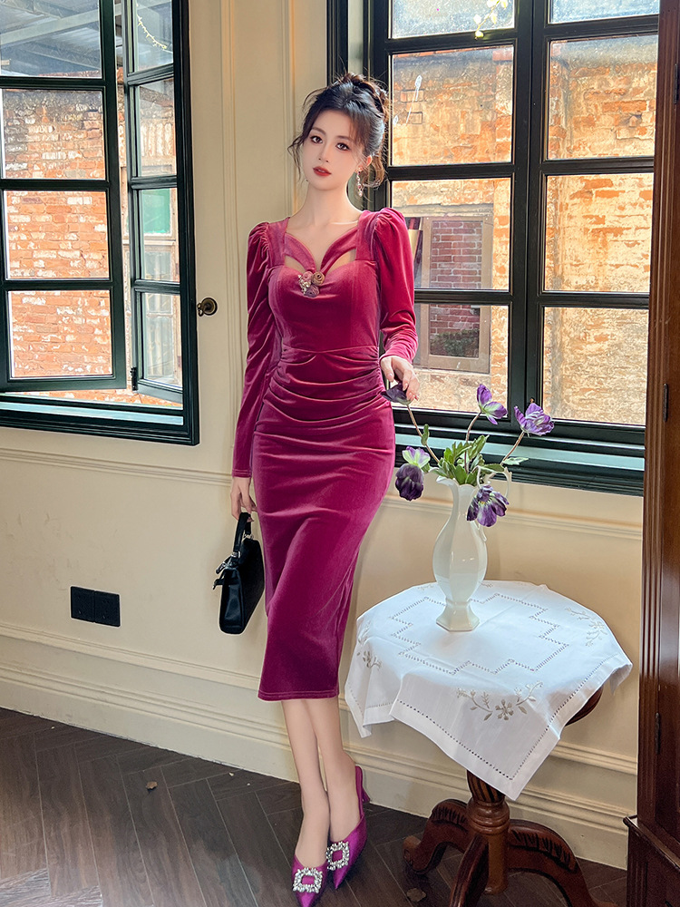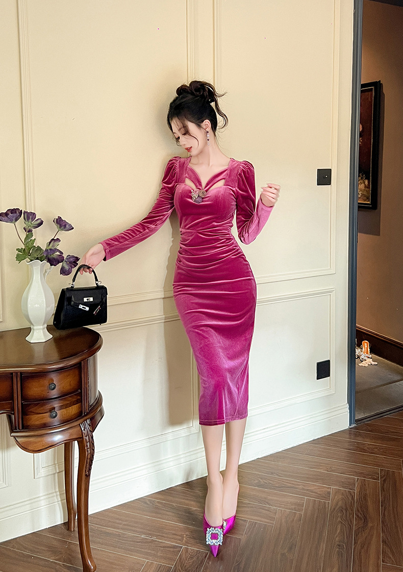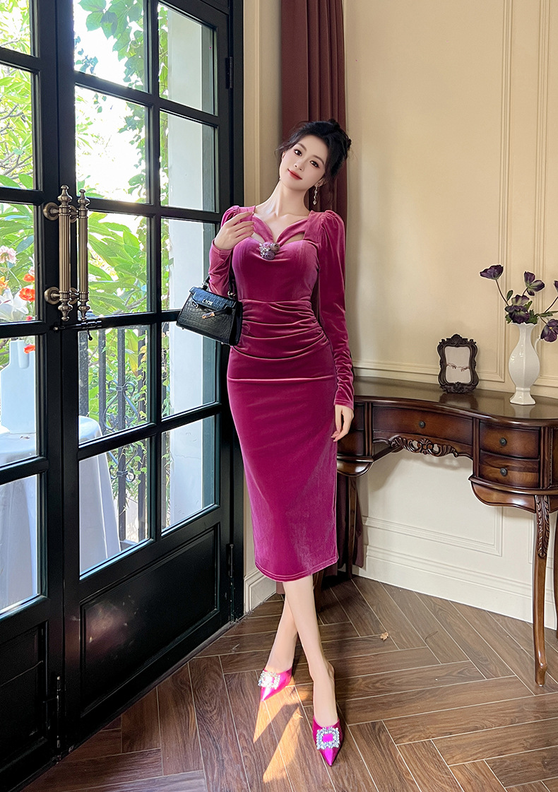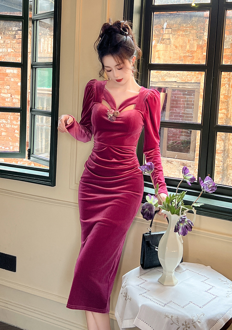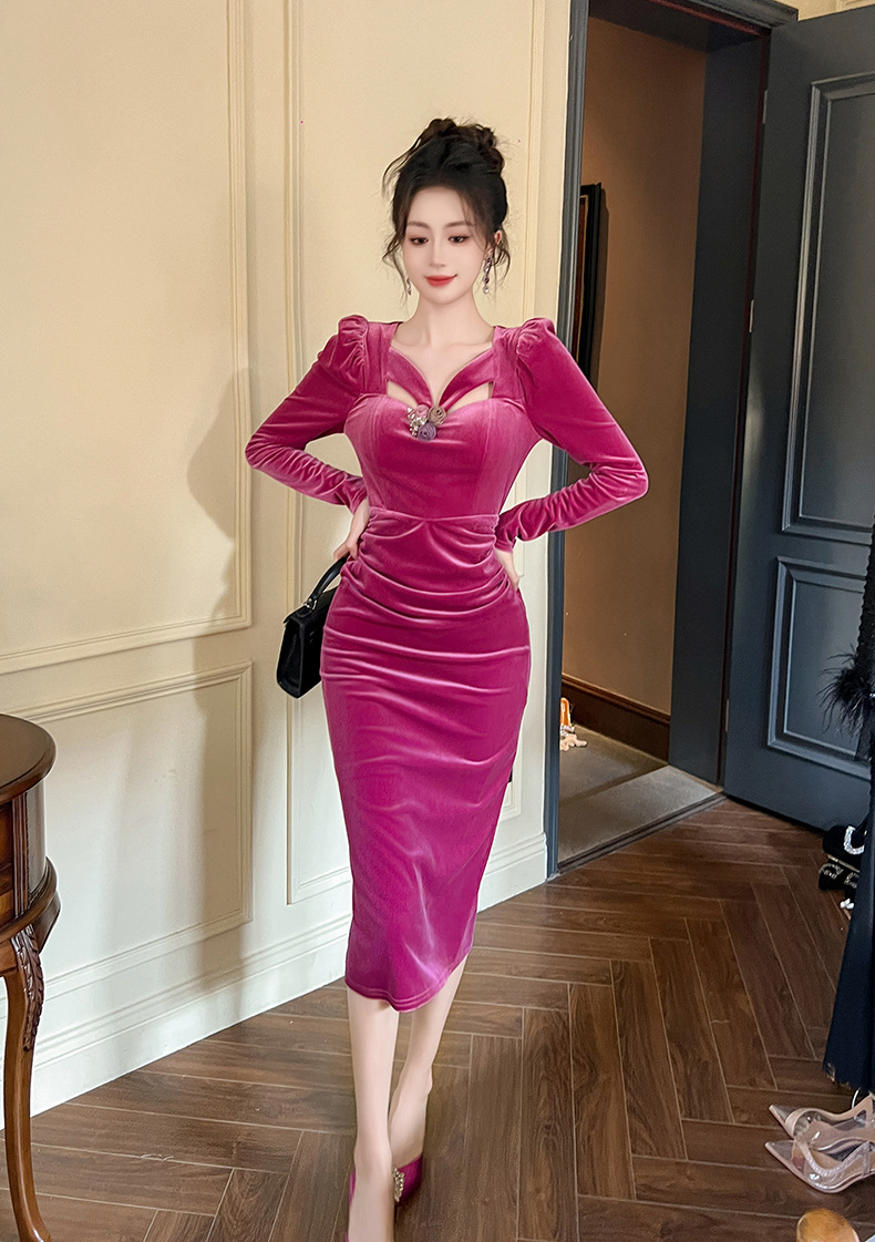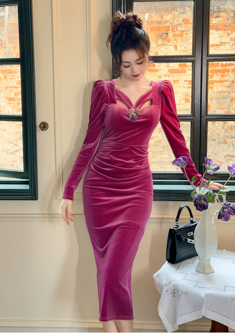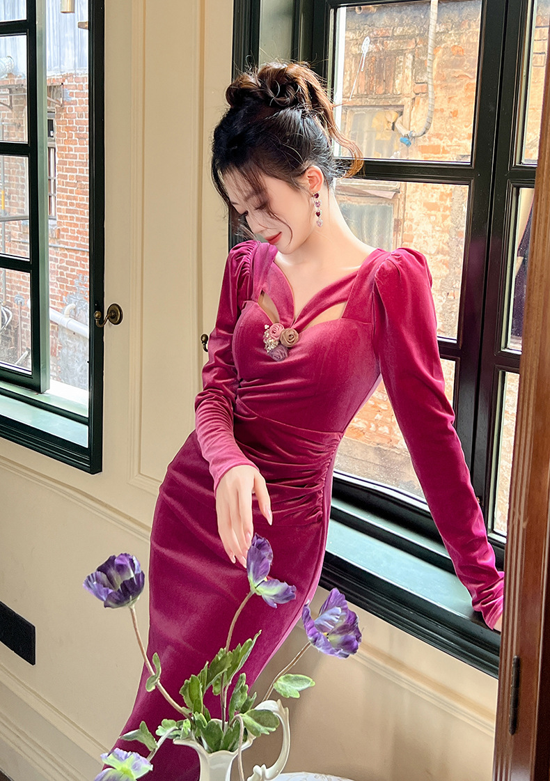 Đầm dạ hội thiết kế riêng biệt, dành cho các dịp tiệc tùng cuối năm. Chất nhung mềm mại ôm sát đường cong, điểm nhấn là các chi tiết khoét lưới tinh tế. Thiết kế ôm body tôn dáng, tay áo dài tạo vẻ thanh lịch. Phù hợp mặc trong các buổi họp mặt quan trọng hoặc sự kiện có yêu cầu trang phục trang trọng. Kết hợp cùng phụ kiện đơn giản để nổi bật vẻ đẹp của đầm. | Tên sản phẩm: Váy Đầm Liền Thân Nữ Hàng Mùa Xuân Thu Đông - Thời Trang Nữ | Mã sản phẩm: B0153 - Giá: 1.120.000đ | Mã nhà sản xuất: CHDG-G04Hình ảnh sản phẩm