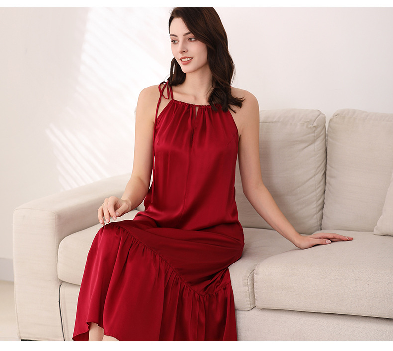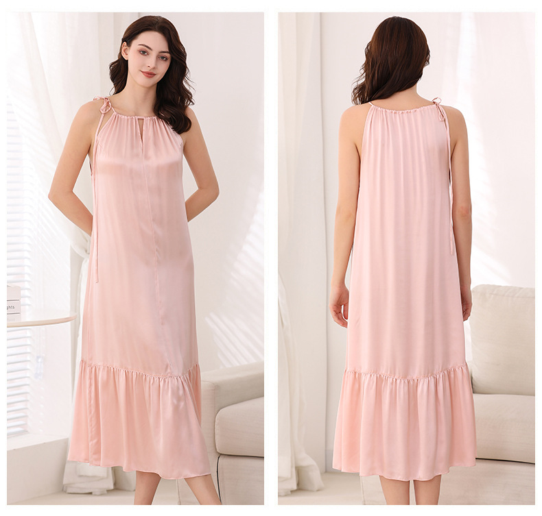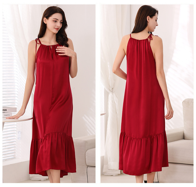 Bộ đồ ngủ này được dệt hoàn toàn từ sợi tơ tằm tự nhiên, mang đến cảm giác mềm mại và thoáng mát cho người mặc. Thiết kế dáng dài với hai dây mảnh, tạo nên vẻ đẹp dịu dàng và nữ tính. Sản phẩm phù hợp để mặc khi nghỉ ngơi tại nhà hoặc làm váy ngủ trong những đêm hè. Chỉ cần giặt nhẹ bằng nước lạnh và phơi trong bóng râm để giữ chất vải lâu bền. | Tên sản phẩm: Áo Hai Dây Nữ Chất Liệu Lụa Tơ Tằm Hai Dây Hở Vai Hàng Mùa Hè Dùng Trong Lễ Cưới Ngày Cưới - Thời Trang Nữ | Mã sản phẩm: B0155 - Giá: 2.820.000đ | Mã nhà sản xuất: TODN-G06Hình ảnh sản phẩm