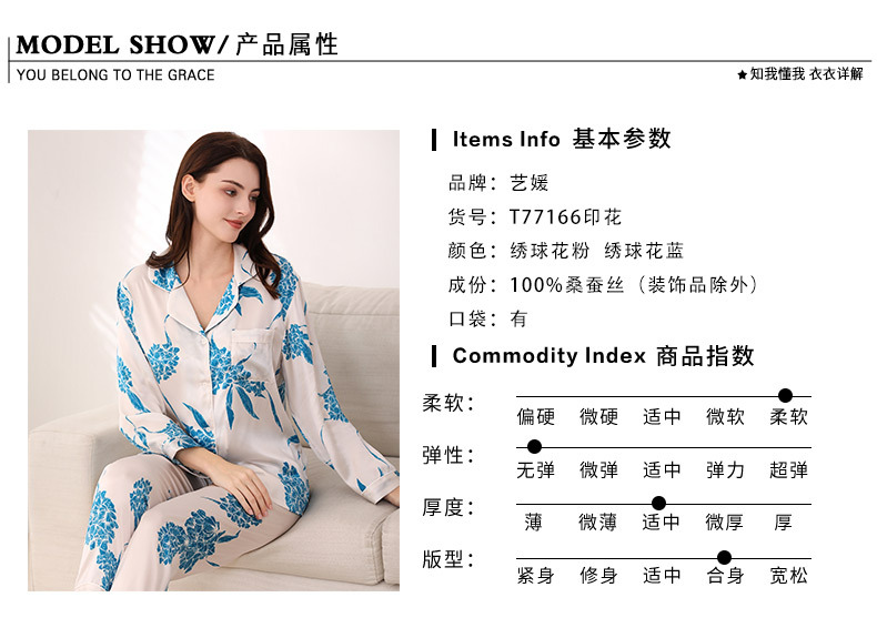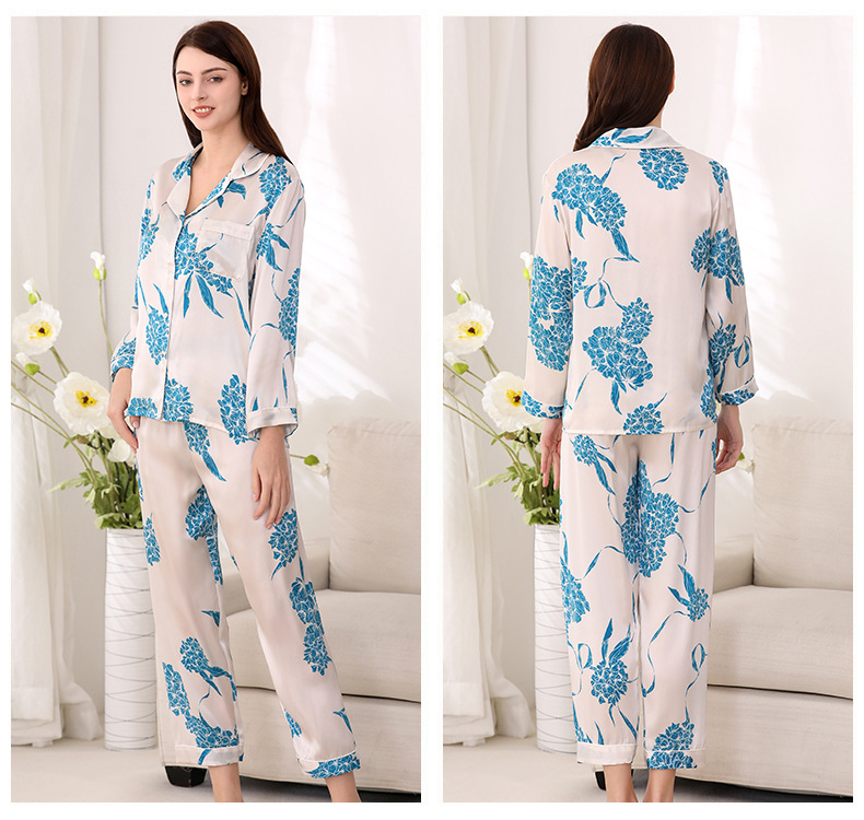 Bộ đồ mặc ở nhà này được dệt hoàn toàn từ sợi tơ tằm tự nhiên, mang đến cảm giác mềm mại, thoáng mát và dễ chịu cho người mặc. Kiểu dáng áo dài tay và quần dài phù hợp cho những ngày se lạnh của mùa xuân, mùa thu hoặc dùng làm đồ ngủ vào mùa hè. Trên vải in các họa tiết trang nhã, tạo điểm nhấn nhẹ nhàng. Sản phẩm dễ dàng giặt bằng tay với nước thường và phơi ở nơi râm mát để giữ chất vải được bền đẹp. | Tên sản phẩm: Đồ Ngủ Nữ Chất Liệu Lụa Tơ Tằm Dài Tay Họa Tiết Hoa Hàng Mùa Hè Trung Niên Đồ Ngủ Hoặc Mặc Nhà - Thời Trang Nữ | Mã sản phẩm: B0167 - Giá: 3.190.000đ | Mã nhà sản xuất: TODN-G06Hình ảnh sản phẩm