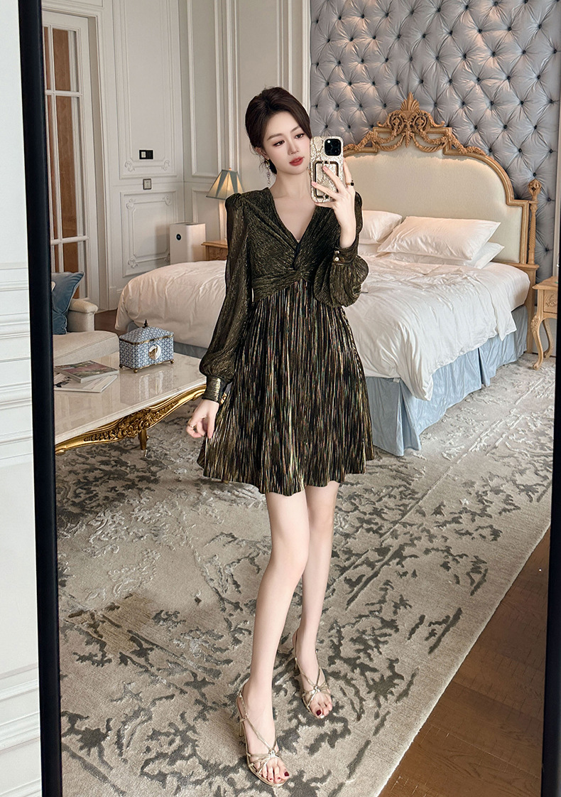 Đầm thiết kế kiểu Pháp cổ điển với phần cổ khoét chữ V tinh tế, giúp tôn dáng người mặc. Điểm nhấn độc đáo ở nút thắt phía trước và phần eo ôm tạo form dáng thanh thoát. Kiểu dáng chữ A từ thắt eo xuống chân vừa kín đáo lại giúp tạo cảm giác dáng người cao hơn. Mẫu đầm này phù hợp cho nhiều dịp đi làm, gặp mặt hay dạo phố. Dễ dàng phối cùng giày cao gót hay giày bệt để có những phong cách khác nhau. | Tên sản phẩm: Váy Đầm Liền Thân Nữ Dáng Chữ A Cổ Chữ V Hàng Mùa Xuân Thu Đông - Thời Trang Nữ | Mã sản phẩm: B0168 - Giá: 1.120.000đ | Mã nhà sản xuất: CHDG-G04Hình ảnh sản phẩm