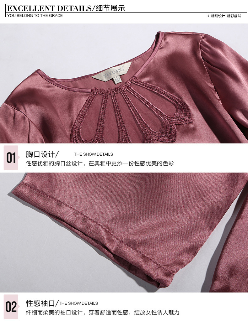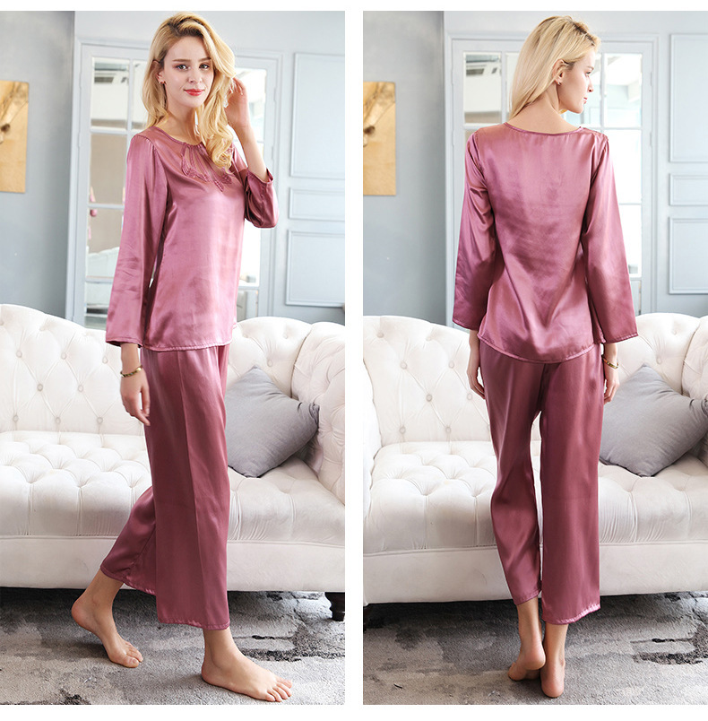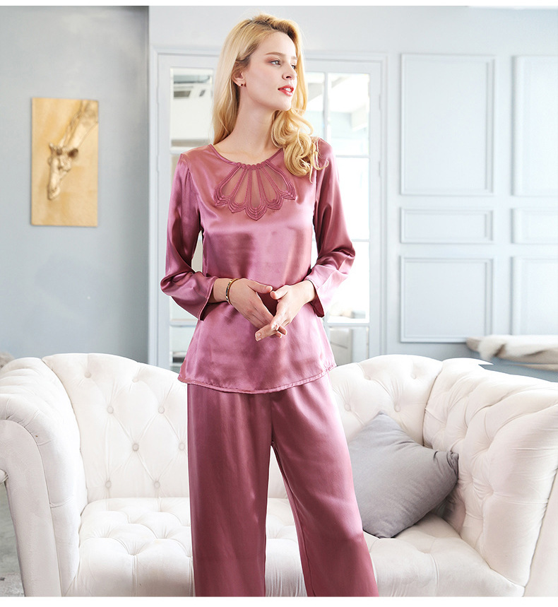 Bộ đồ ngủ hai mảnh này có chất vải mềm mại, được dệt hoàn toàn từ tơ tằm tự nhiên, mang lại cảm giác mát mẻ và thoải mái khi mặc vào mùa hè. Thiết kế tay dài kiểu dáng đơn giản, điểm nhấn là chi tiết ren tinh tế. Sản phẩm phù hợp để mặc nghỉ ngơi tại nhà. Giặt tay với nước thường và phơi ở nơi râm mát để giữ chất vải được bền đẹp. | Tên sản phẩm: Đồ Ngủ Nữ Chất Liệu Lụa Tơ Tằm Dài Tay Cả Bộ 2 Món Hàng Mùa Hè Đồ Ngủ Hoặc Mặc Nhà - Thời Trang Nữ | Mã sản phẩm: B0171 - Giá: 3.280.000đ | Mã nhà sản xuất: TODN-G06Hình ảnh sản phẩm