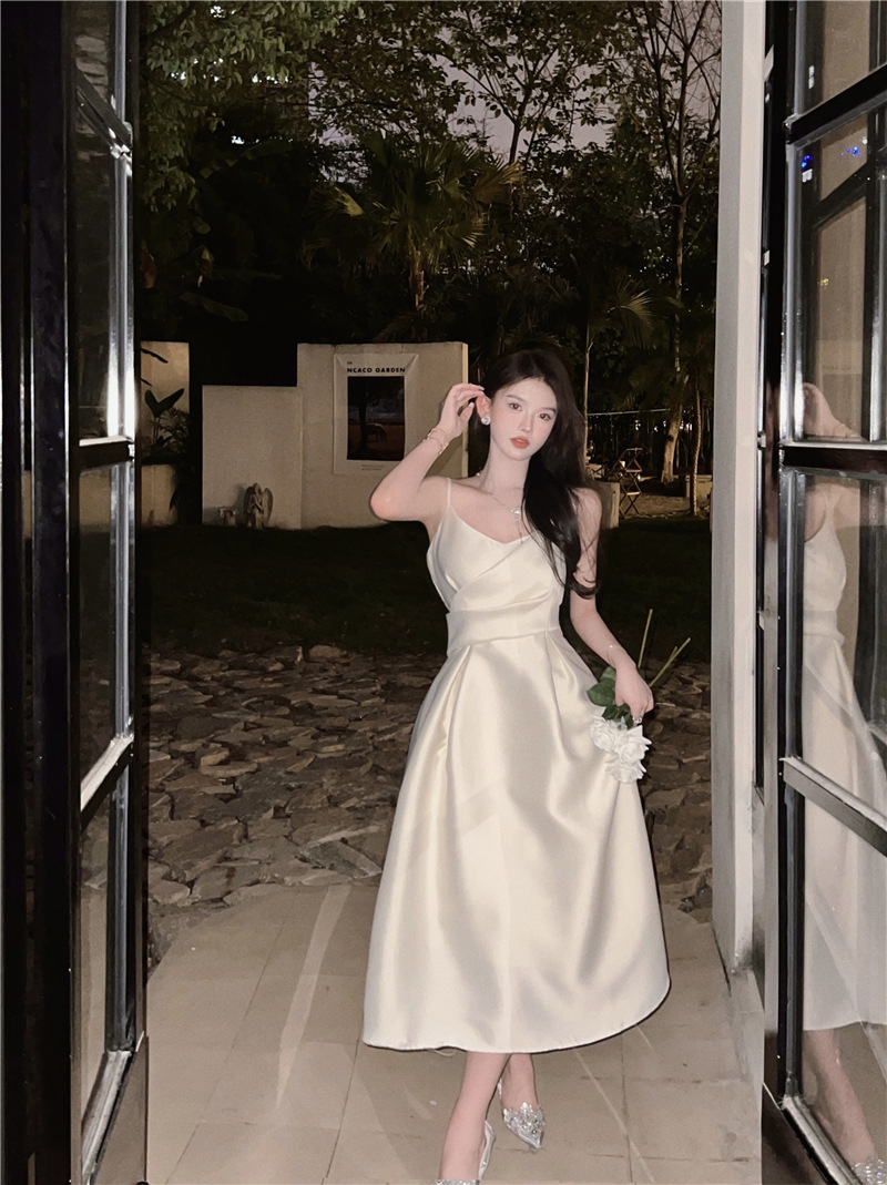 Đầm dáng dài mặc vào mùa hè, thiết kế không tay với hai dây đeo. Điểm nổi bật là phần eo được may ôm tôn dáng, phom dáng người thanh thoát. Chất vải có độ bóng nhẹ tạo nên vẻ đẹp tinh tế. Kiểu dáng này phù hợp cho những buổi dạo phố, gặp gỡ bạn bè hoặc các dịp cần ăn mặc lịch sự. Có thể mặc cùng giày sandal hoặc giày gót thấp để tạo phong cách tự nhiên. | Tên sản phẩm: Áo Hai Dây Nữ Dáng Ôm Hai Dây Hở Vai Hàng Mùa Hè - Thời Trang Nữ | Mã sản phẩm: B0176 - Giá: 770.000đ | Mã nhà sản xuất: ZHOUT-G02Hình ảnh sản phẩm