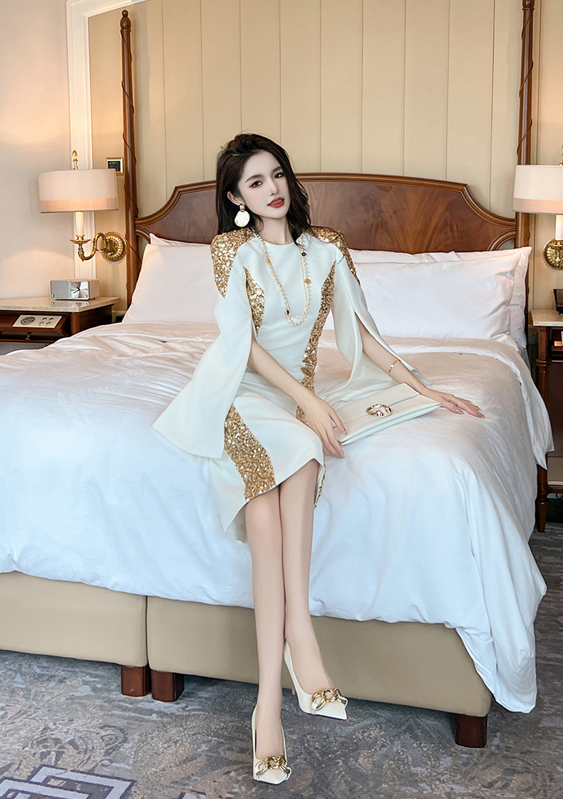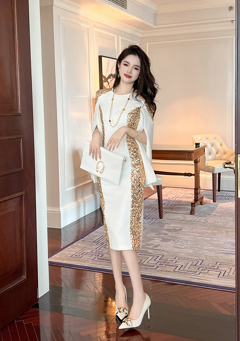 Đầm dự tiệc dành cho nữ, thiết kế kiểu dáng ôm sát tôn dáng. Trên thân đầm được điểm xuyết nhiều chi tiết ánh kim lấp lánh, tạo nên điểm nhấn nổi bật. Sản phẩm phù hợp cho các buổi tiệc tối, sự kiện hoặc mặc đi làm khi cần sự chỉn chu. Có thể kết hợp cùng giày cao gót và phụ kiện đơn giản. Giặt tay hoặc giặt máy với chế độ nhẹ, bảo quản nơi khô ráo. | Tên sản phẩm: Váy Đầm Liền Thân Dự Tiệc Nữ Dáng Ôm Hàng Mùa Xuân Thu Đông - Thời Trang Nữ | Mã sản phẩm: B0183 - Giá: 1.490.000đ | Mã nhà sản xuất: CHDG-G04Hình ảnh sản phẩm
