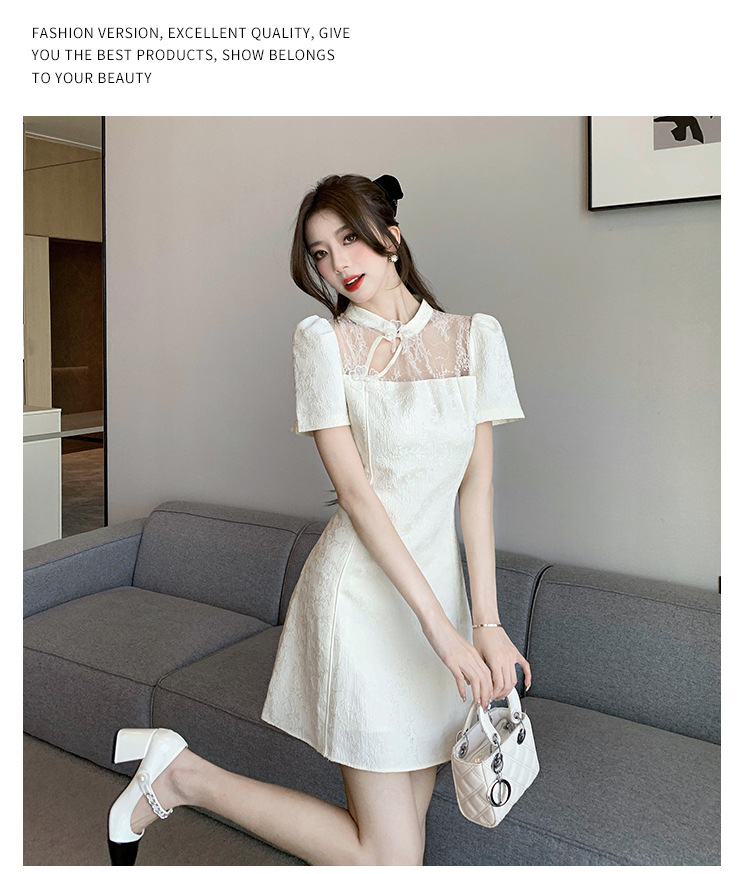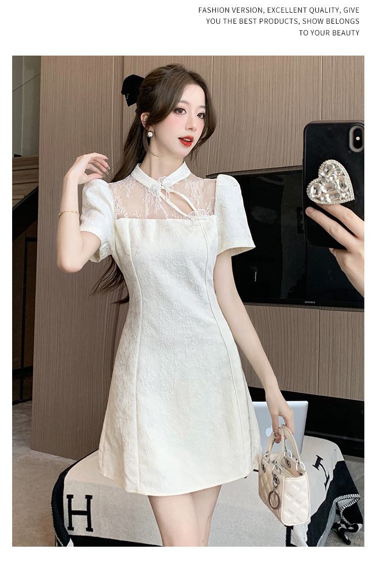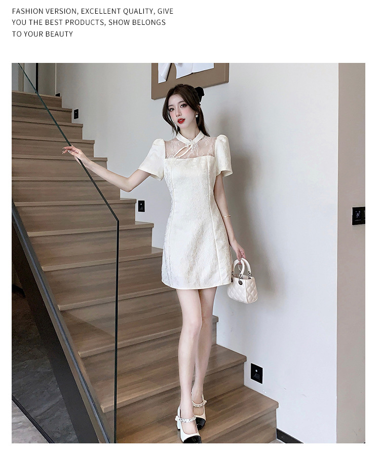 Chiếc đầm ôm dáng mang phong cách thanh lịch, kiểu dáng cổ đứng tôn dáng người mặc. Tay bồng nhẹ nhàng tạo điểm nhấn duyên dáng, phù hợp cho những dịp đi làm hoặc dạo phố. Thiết kế một hàng nút cài phía trước giúp mặc vào dễ dàng. Chất vải mềm mại, thoáng mát, cho bạn cảm giác dễ chịu suốt ngày dài. Có thể kết hợp cùng giày cao gót hoặc giày bệt để tạo nên những phong cách khác nhau. | Tên sản phẩm: Váy Đầm Liền Thân Nữ Tay Phồng Hàng Mùa Hè - Thời Trang Nữ | Mã sản phẩm: B0185 - Giá: 850.000đ | Mã nhà sản xuất: ZHOUT-G03Hình ảnh sản phẩm