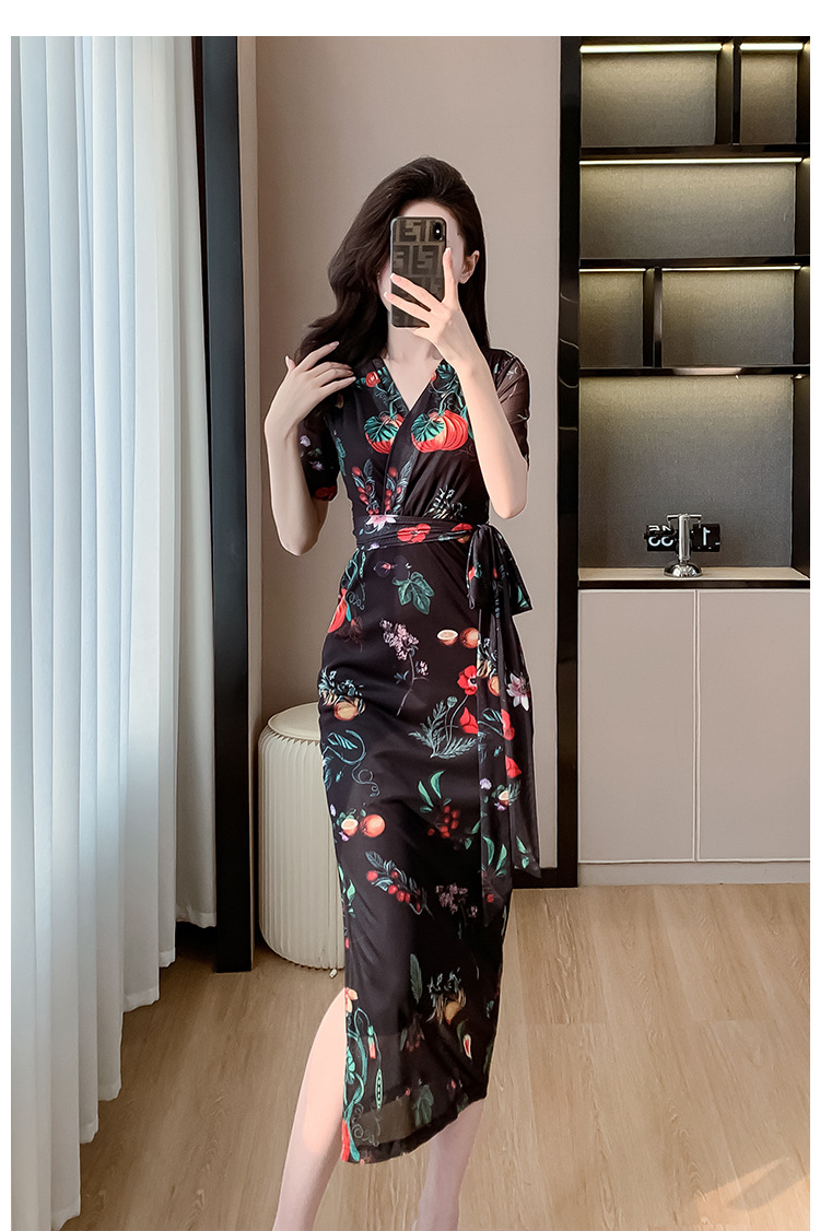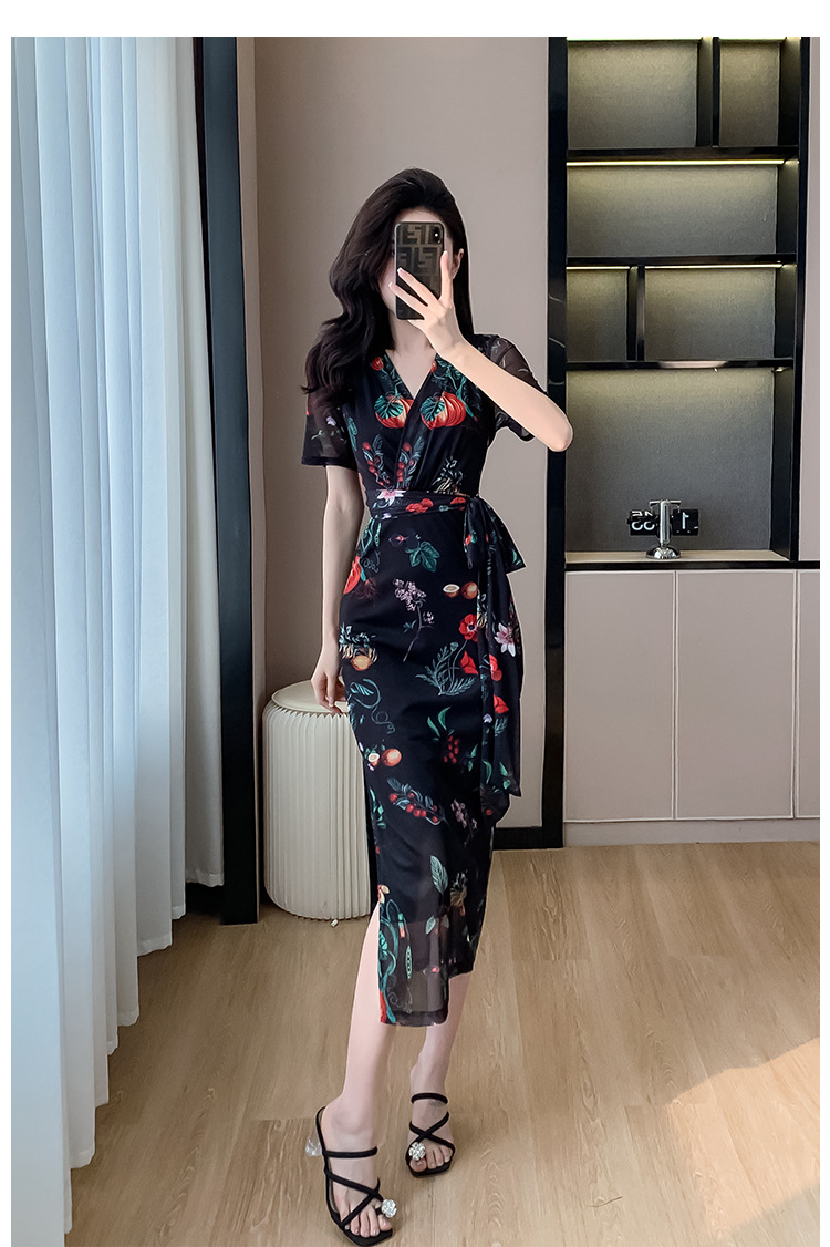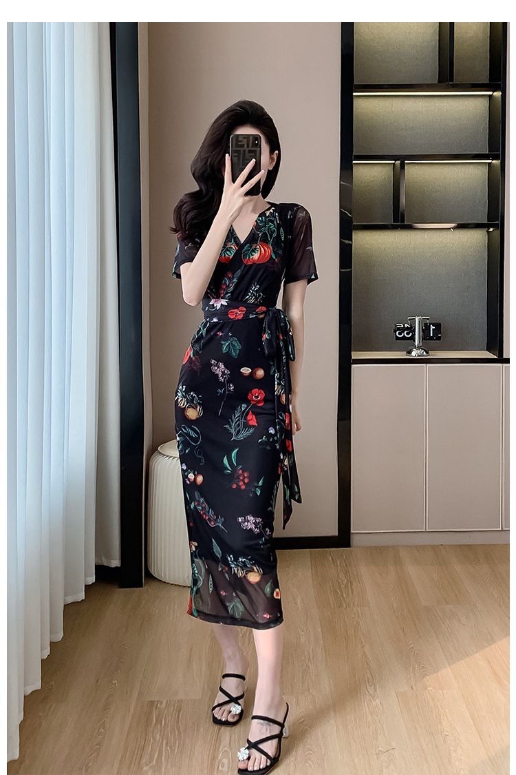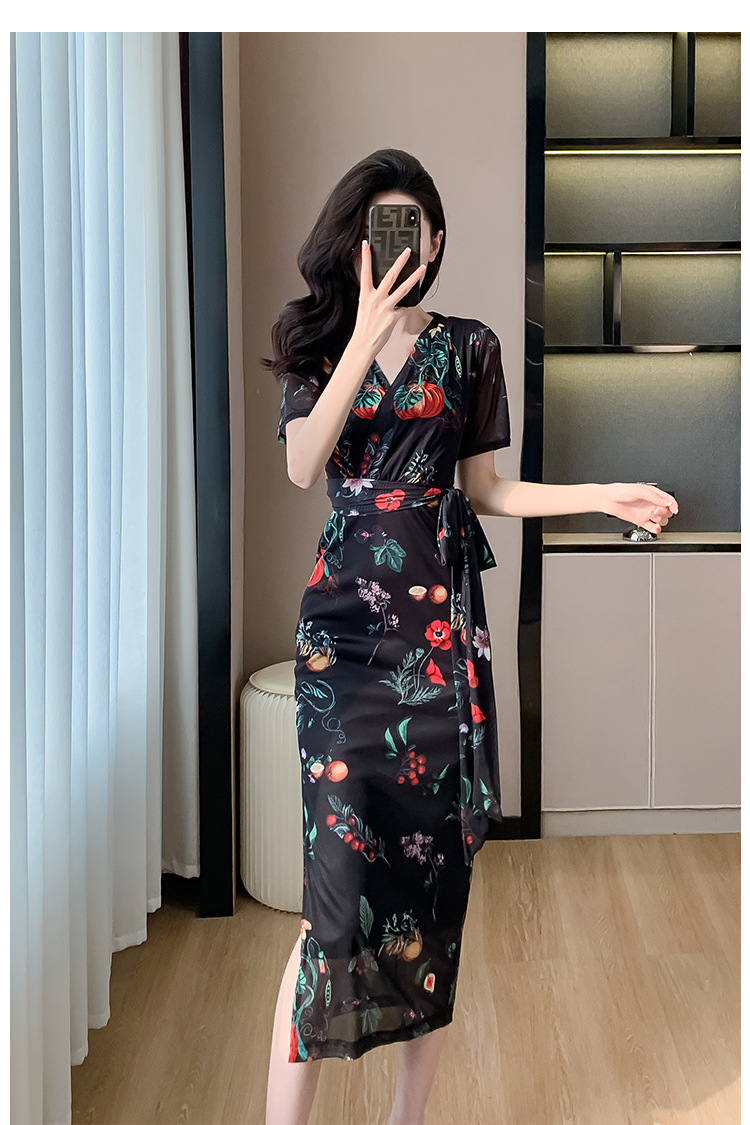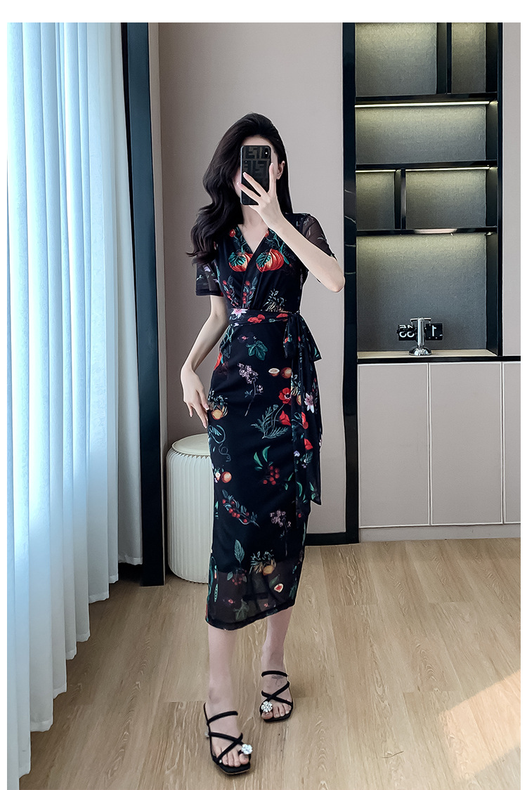 Chiếc đầm này mang nét đẹp kiểu cách với họa tiết in tinh tế. Thiết kế có cổ chữ V nhẹ nhàng, kết hợp dây buộc nơ duyên dáng. Chất vải mỏng nhẹ tạo cảm giác thoải mái, ôm nhẹ cơ thể và phom dáng bút chì giúp tôn đường nét. Sản phẩm phù hợp cho nhiều dịp đi chơi hay gặp mặt. Bạn có thể mặc cùng giày sandal hoặc giày gót thấp để hoàn thiện bộ trang phục. | Tên sản phẩm: Váy Đầm Liền Thân Nữ Dáng Ôm Lưới Mỏng Họa Tiết Hoa Cổ Chữ V Hàng Mùa Hè - Thời Trang Nữ | Mã sản phẩm: B0188 - Giá: 740.000đ | Mã nhà sản xuất: ZHOUT-G02Hình ảnh sản phẩm
